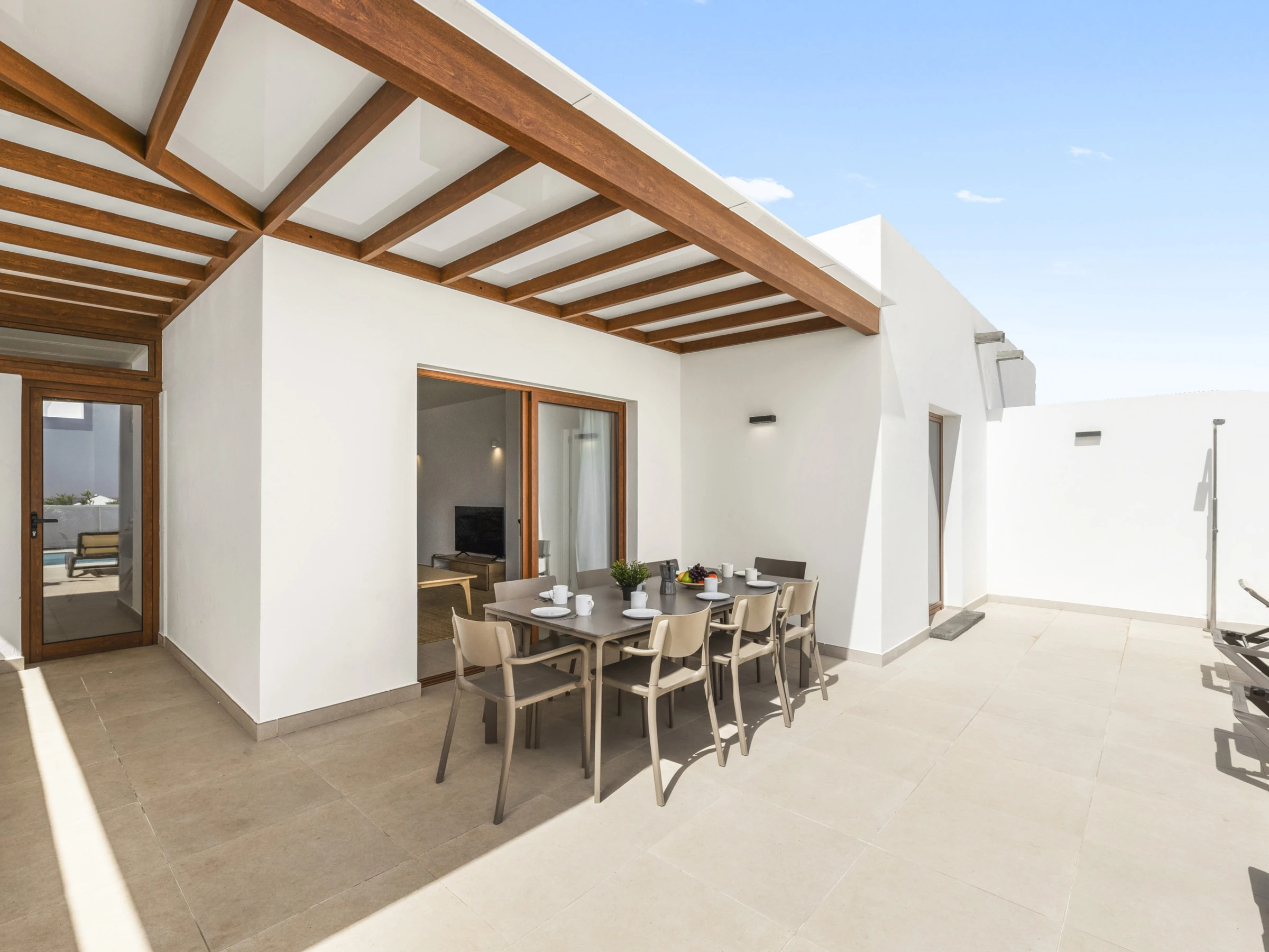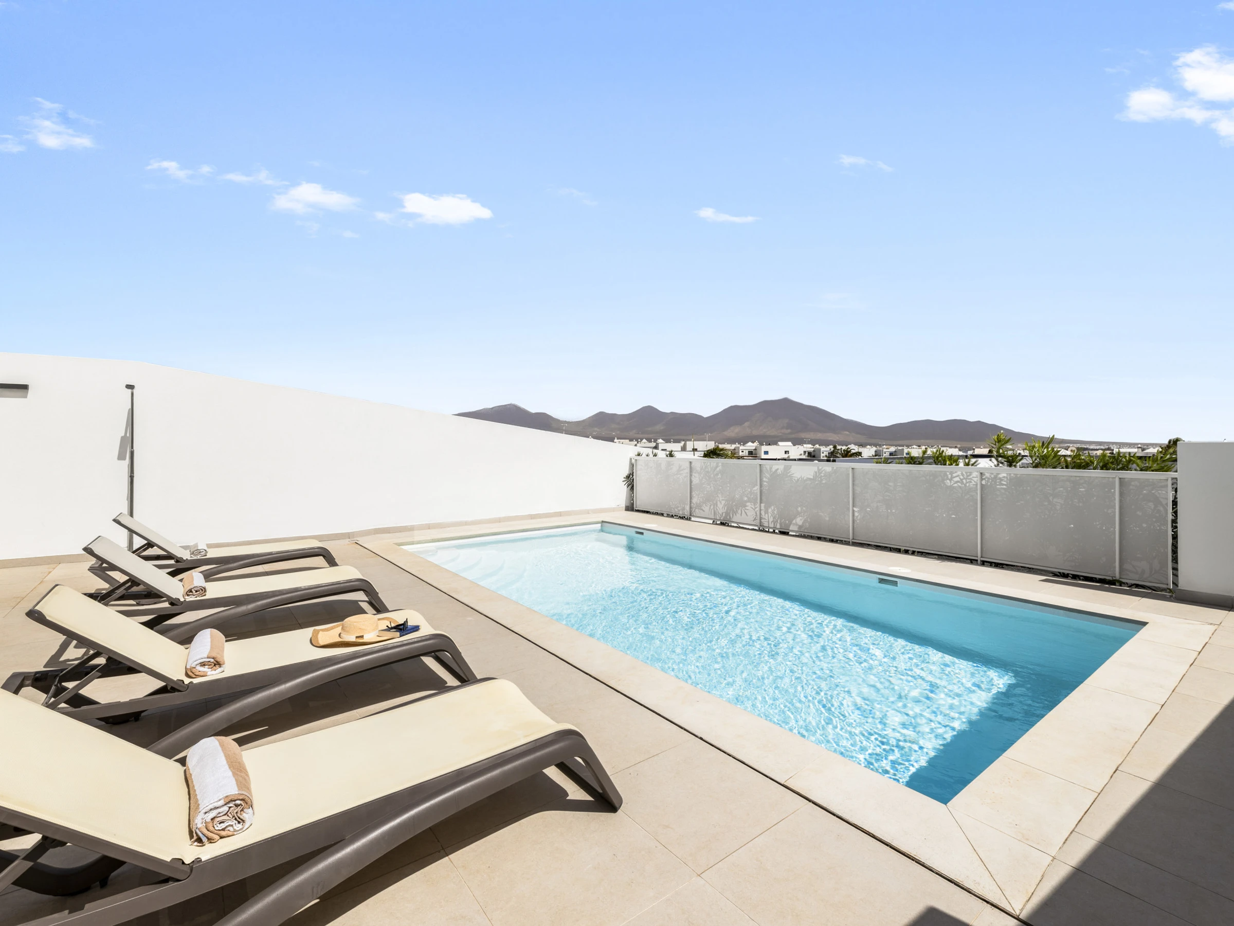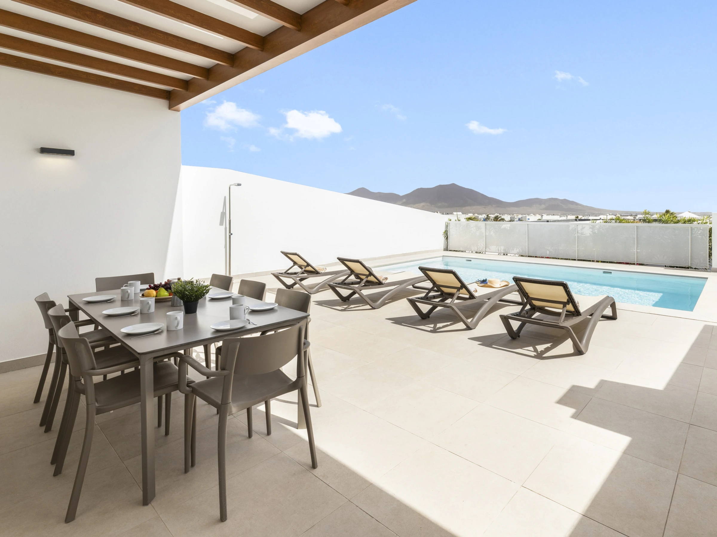 Die Außenbereiche sind ein wahres Treffpunkt, mit einem privaten Garten, der zur Entspannung und zu Gemeinschaftsmomenten einlädt. Die Villa verfügt über Gartenmöbel und einen perfekten Grill, um einzigartige Abende unter dem Himmel von Lanzarote zu genießen. Darüber hinaus verfügt sie über einen im Winter beheizten privaten Pool, der beeindruckende Ausblicke auf den Garten und die Umgebung bietet.