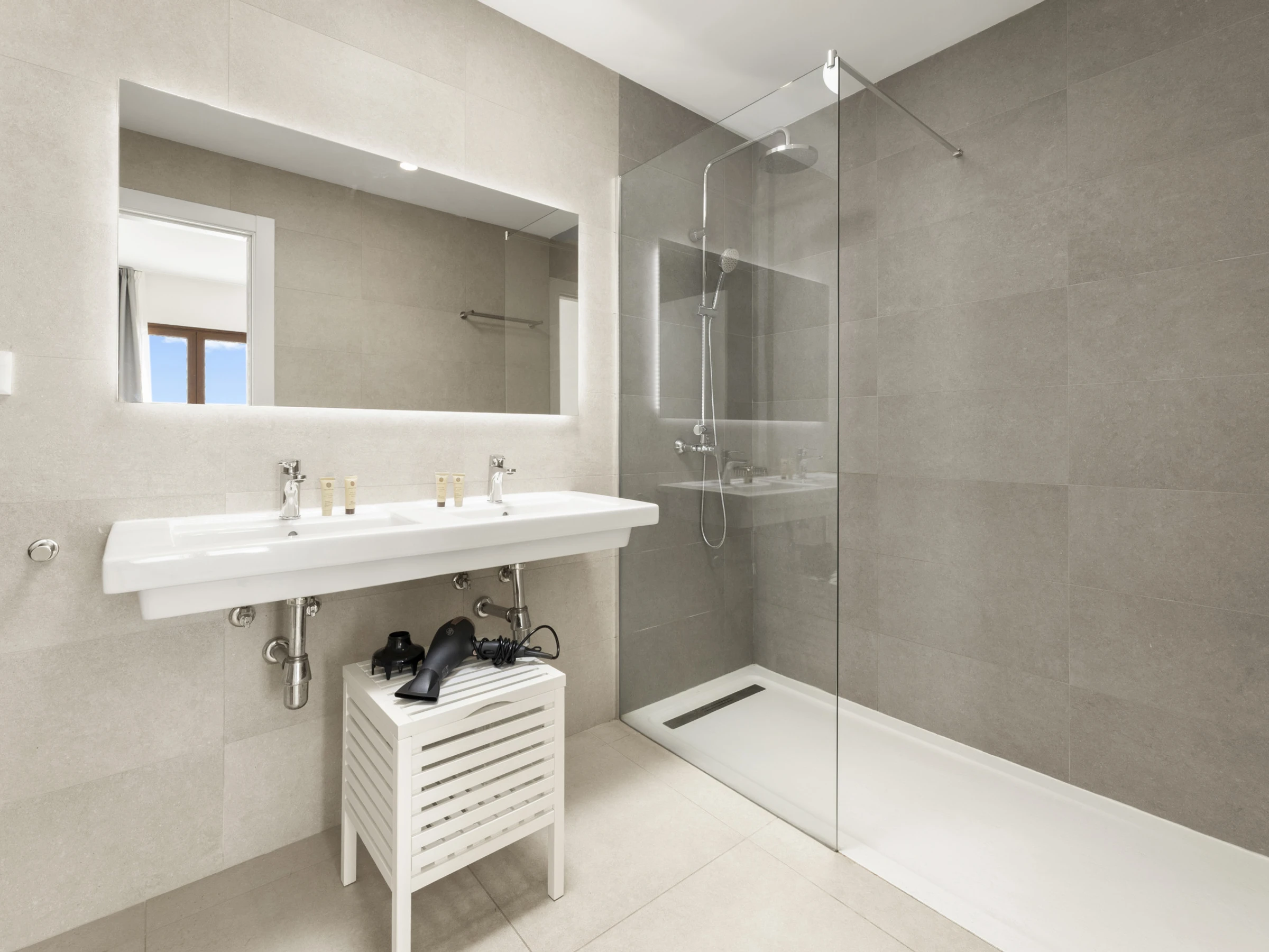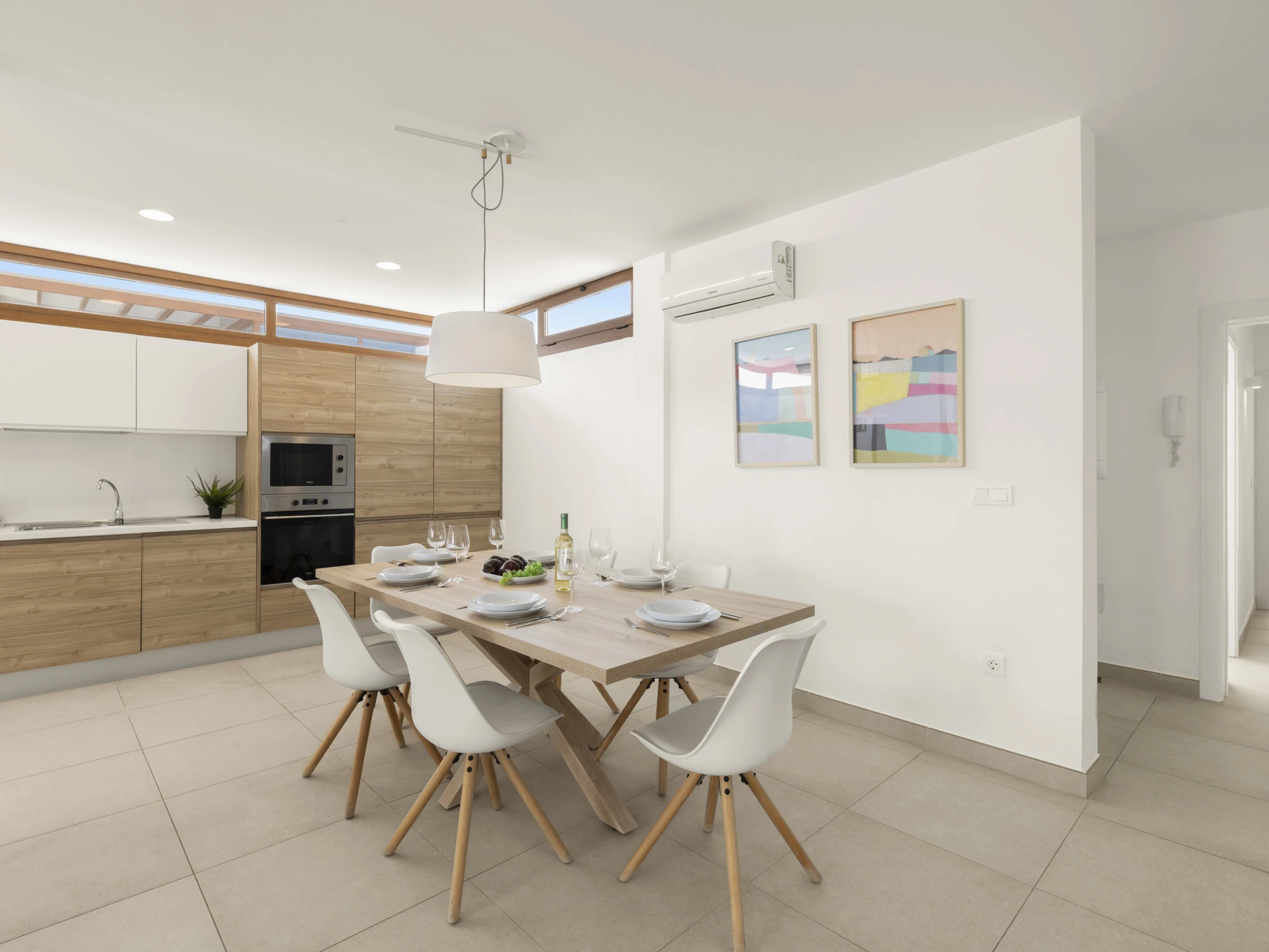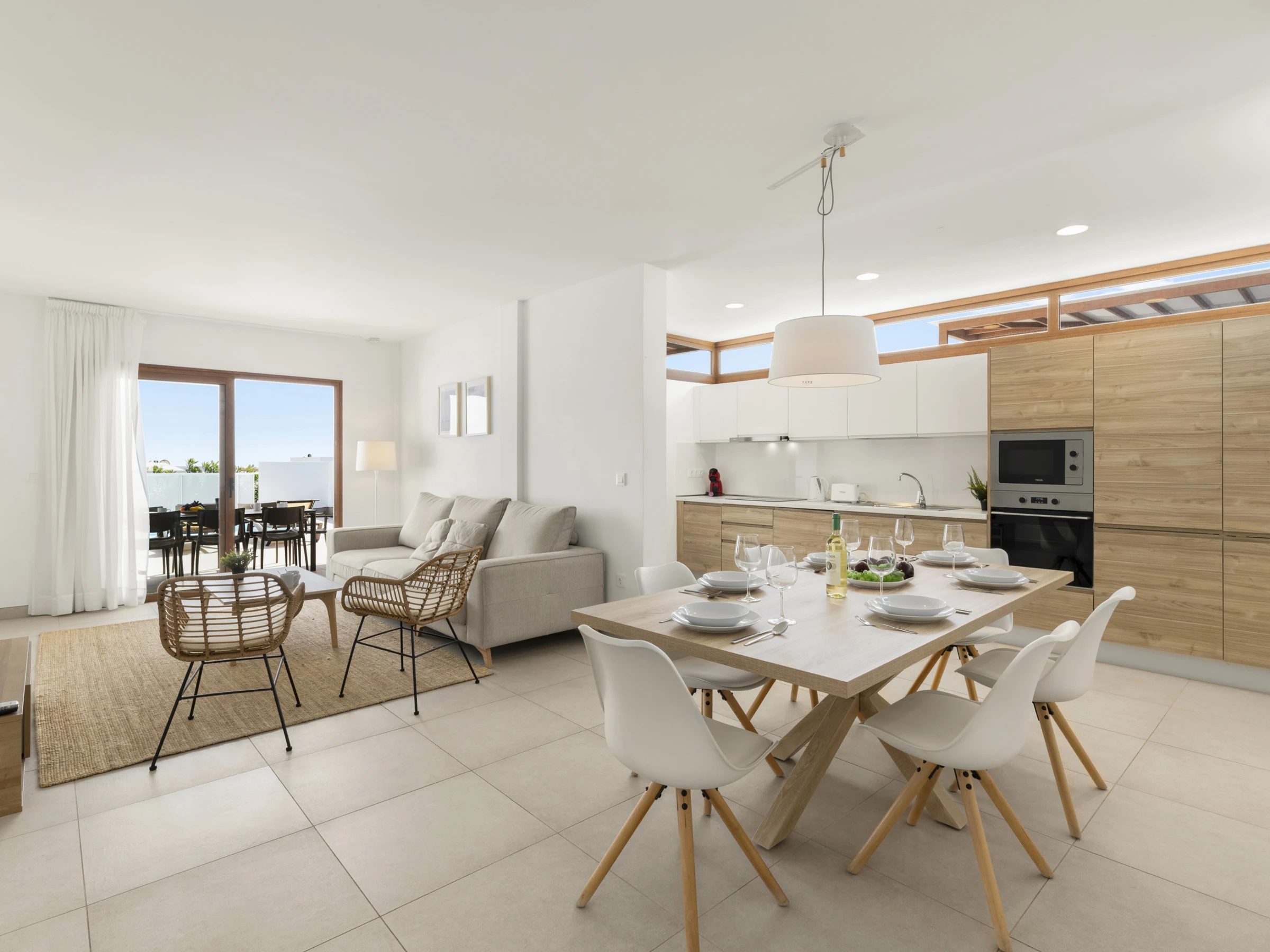 Das Innere der Villa zeichnet sich durch seine Helligkeit und zeitgenössisches Design aus. Sie verfügt über 3 vollständig ausgestattete Badezimmer, zwei mit Dusche und eines mit Badewanne, was das Zusammenleben der Gäste erleichtert. Die Küche ist komplett mit Haushaltsgeräten der neuesten Generation ausgestattet, einschließlich Waschmaschine, Geschirrspüler, Backofen, Mikrowelle, Kaffeemaschine und einer großen Auswahl an Utensilien, die das Zubereiten von Mahlzeiten zu einem angenehmen Erlebnis machen.