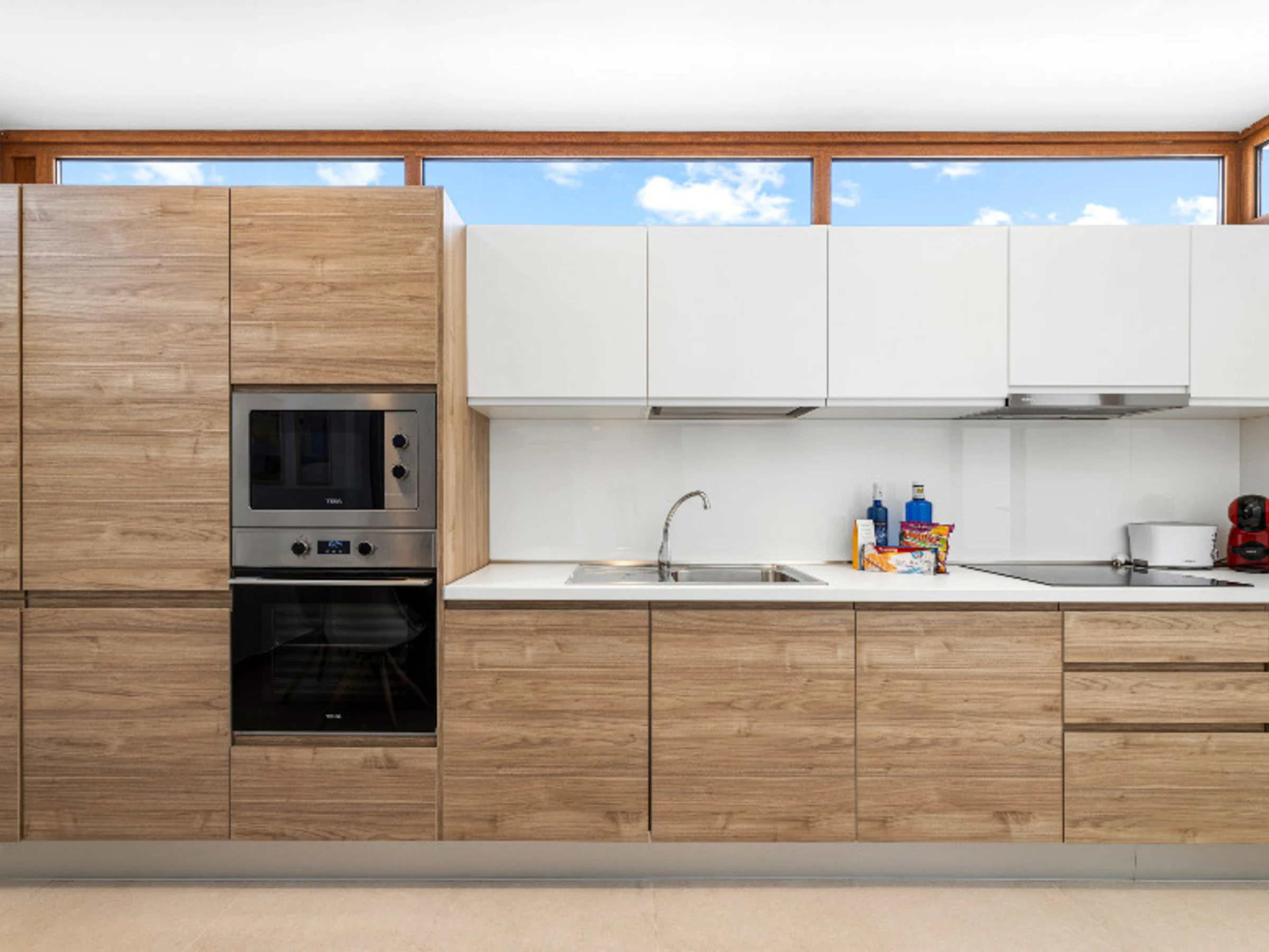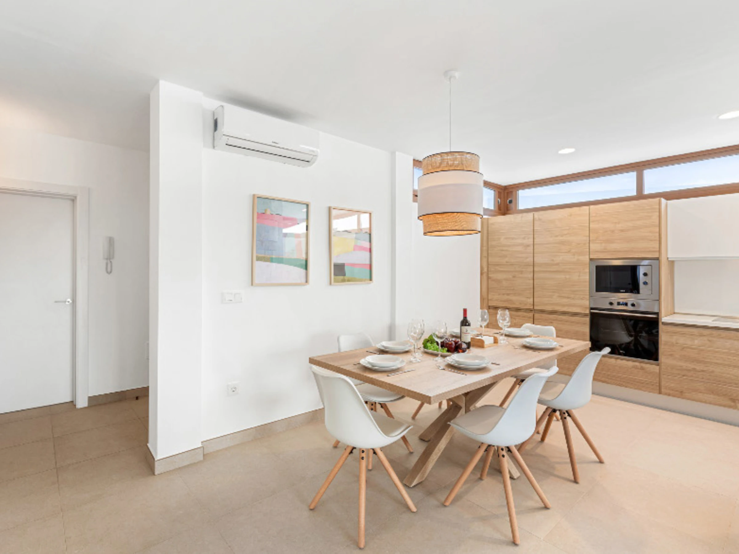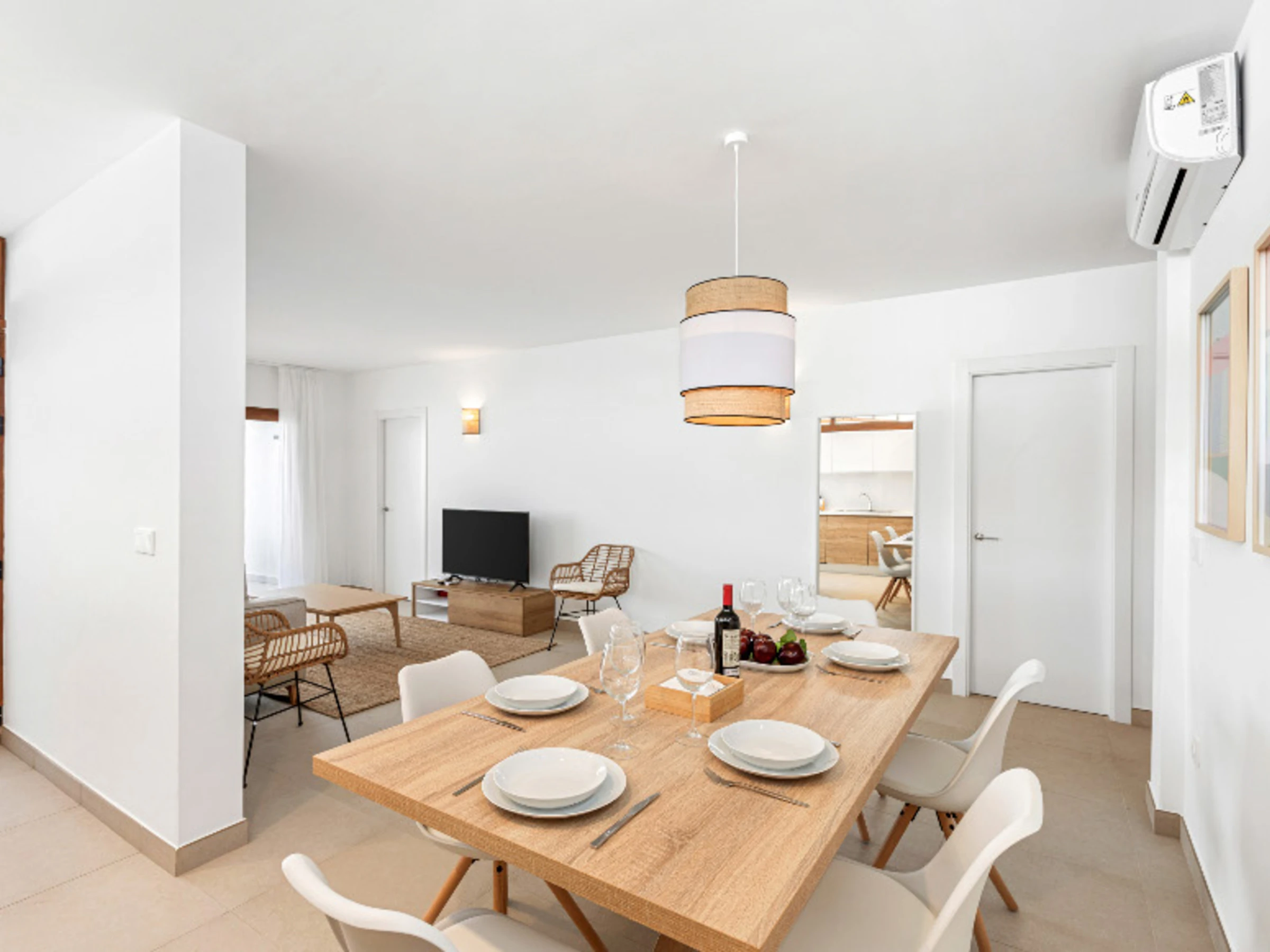 Das Innere der Villa zeichnet sich durch seine Helligkeit und zeitgenössisches Design aus. Sie verfügt über 3 vollständig ausgestattete Badezimmer, zwei mit Dusche und eines mit Badewanne, was das Zusammenleben der Gäste erleichtert. Die Küche ist komplett mit Haushaltsgeräten der neuesten Generation ausgestattet, einschließlich Waschmaschine, Geschirrspüler, Backofen, Mikrowelle, Kaffeemaschine und einer großen Auswahl an Utensilien, die das Zubereiten von Mahlzeiten zu einem angenehmen Erlebnis machen.