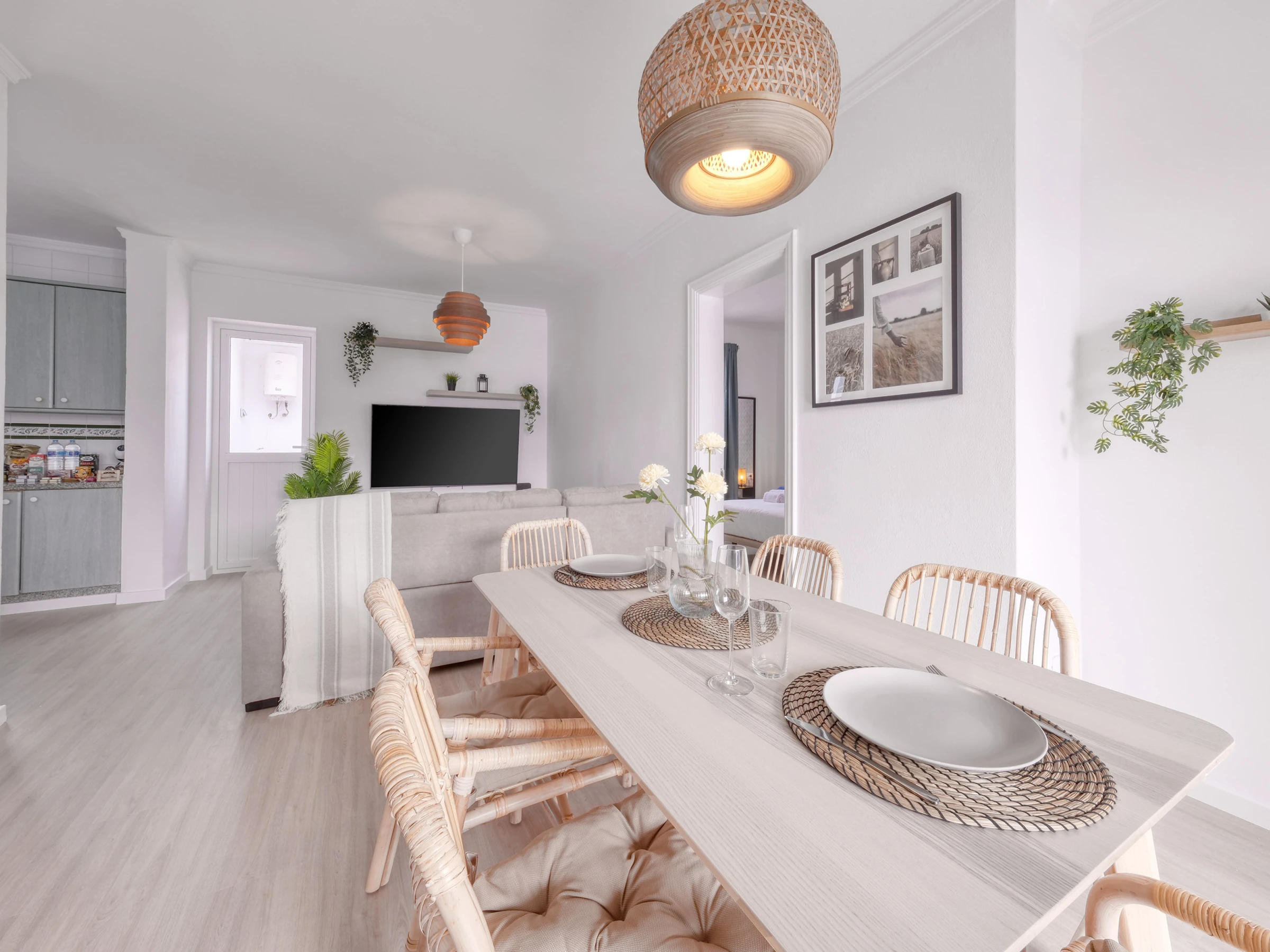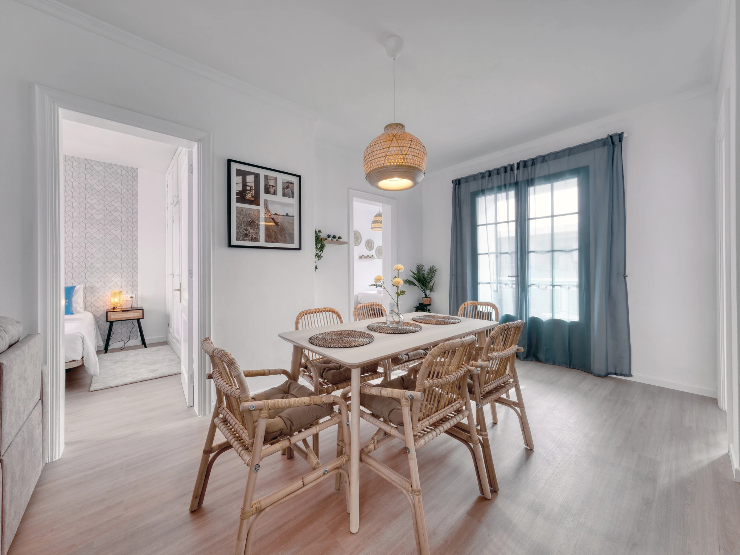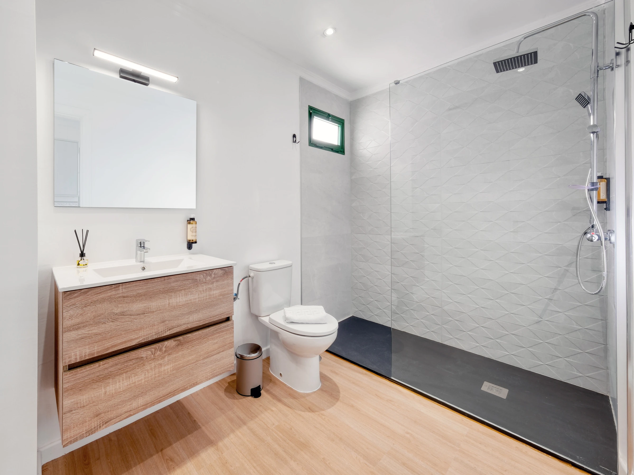 Das Haus verfügt über zwei elegante Schlafzimmer mit Traumdoppelbetten und ein drittes Schlafzimmer mit zwei Einzelbetten, die ideal für Kinder oder Freunde sind. Jeder Raum wurde sorgfältig gestaltet, um Komfort, Stil und Helligkeit zu kombinieren und eine warme und sophistizierte Atmosphäre zu schaffen.