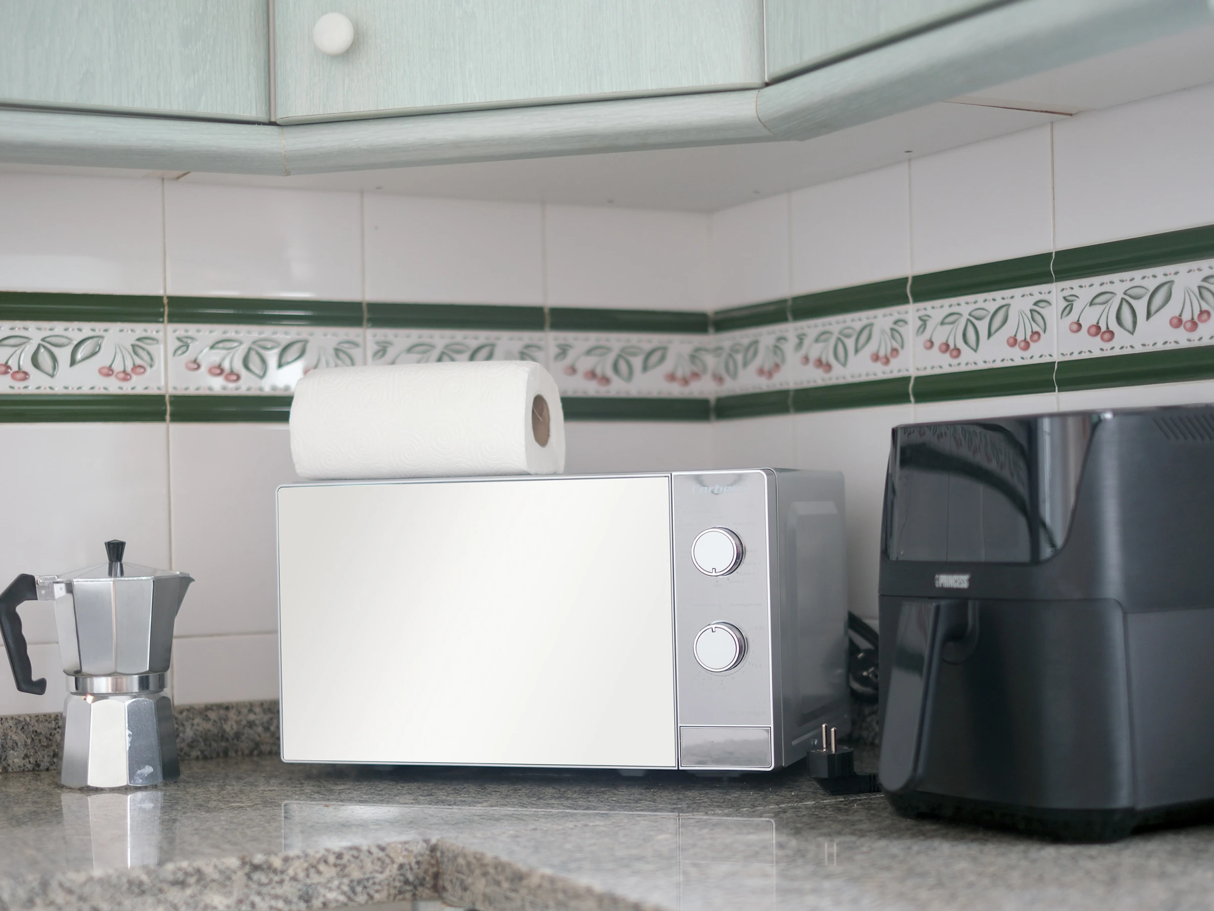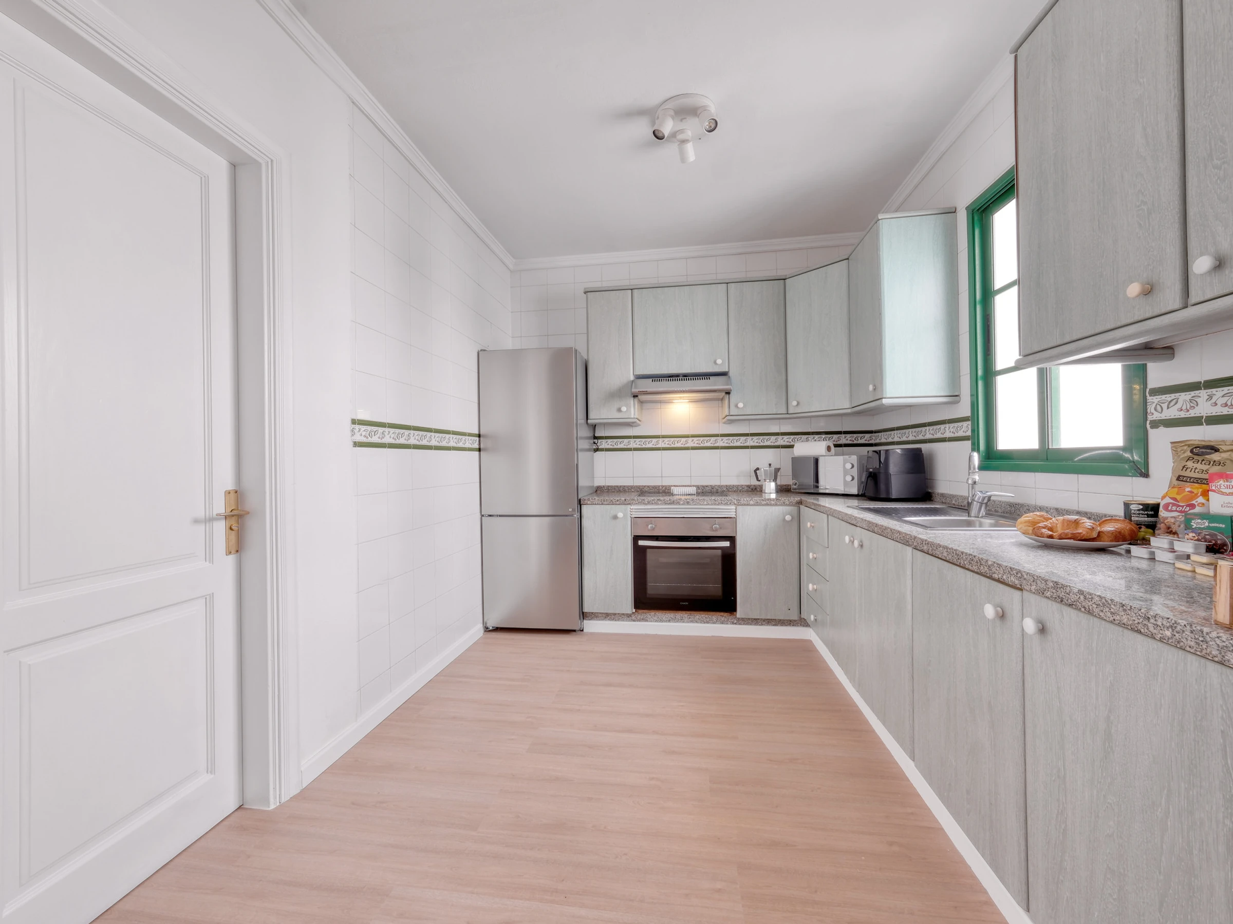 Die voll ausgestattete amerikanische Küche umfasst Induktionsherd, Backofen, Mikrowelle, Kühlschrank, Kaffeemaschine, Toaster, Heißluftfritteuse und alles, was man braucht, um köstliche Mahlzeiten wie zu Hause zuzubereiten.