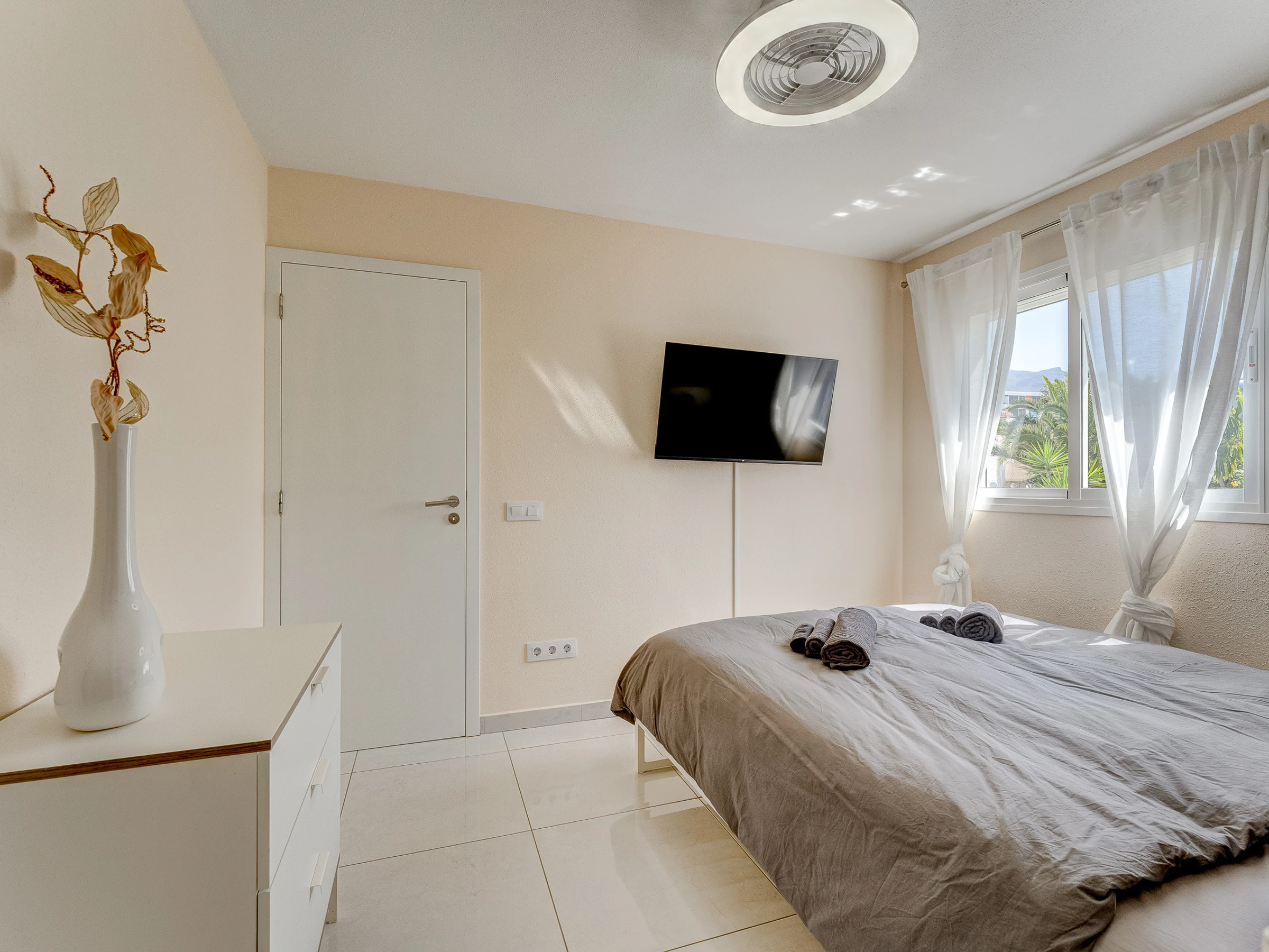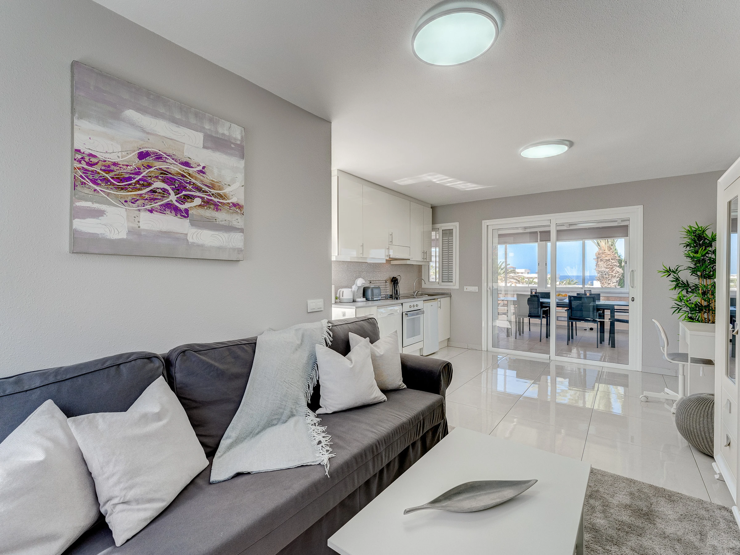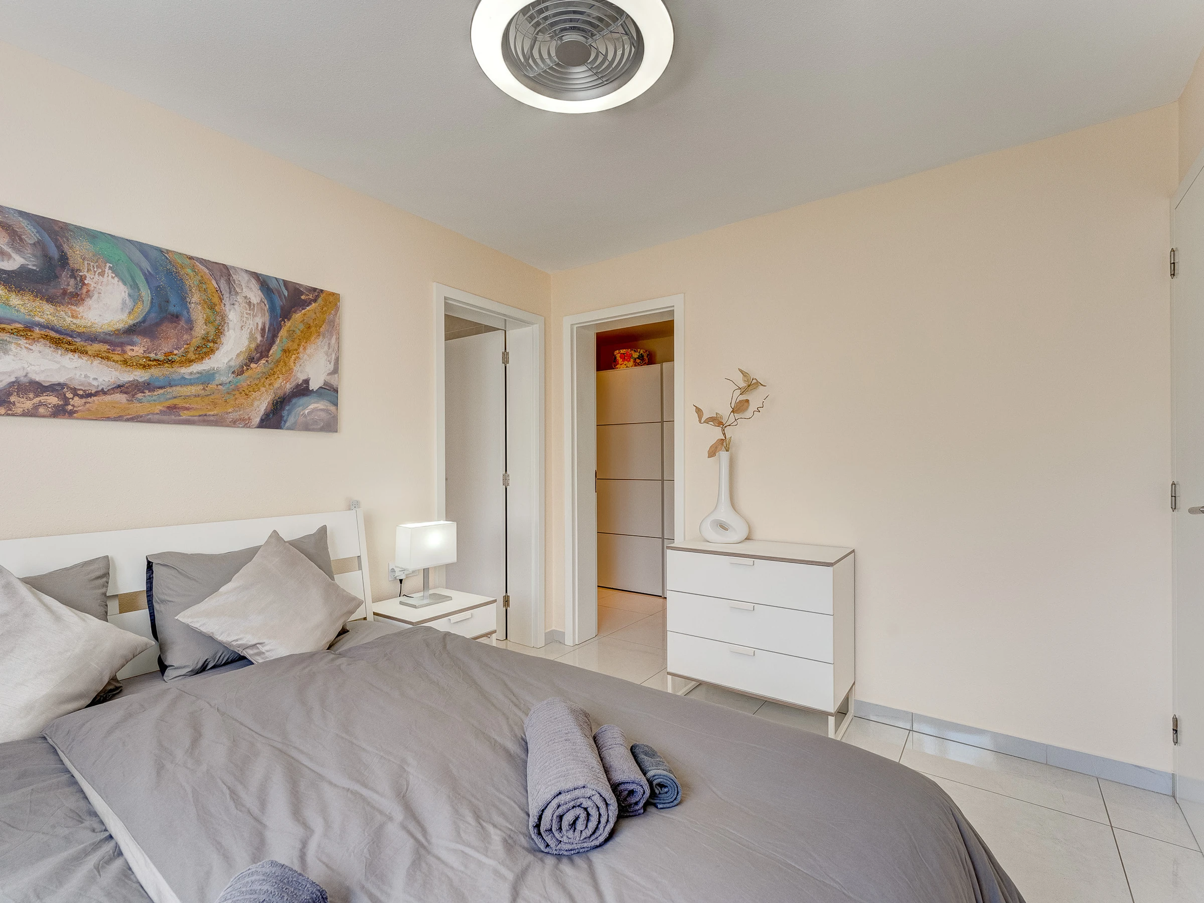 Das Apartment wurde gerade hochwertig renoviert und stilvoll eingerichtet. Das traumhafte Apartment befindet sich an eines der schönsten Sandstrände Teneriffas. Von der grossen Terrasse hat man einen tollen Meerblick. Auf der hinteren Terrasse hat man einen umwerfenden Blick auf den Garten und die Berge. Das Apartment verfügt über 2 Schlafzimmer, 1 Wohnzimmer ( mit Schlafsofa) mit einer amerikanischen voll ausgestatteten Küche, 1 Aussenküche, 1 Ankleidezimmer, 2 Badezimmern und 2 Terrassen (eine ist sogar teilüberdacht), die keine Wünschen übrig lassen. Der grosszügige beheizte Gemeinschaftspool in der sehr gepflegten Anlage ( ist ca. 1-2 Minuten vom Apartment fussläufig entfernt und sorgt für Abkühlung und Spass für die ganze Familie. Eines der schönsten Strände Teneriffas liegt nur ca. 200m entfernt und alles andere ist auch fussläufig in wenigen Minuten erreichbar. Der schönste Wasserpark der Welt, der Siampark ist auch nur ca. 10 Gehminuten entfernt. Auch die grösste Shopping Mall im Süden Tenriffas, die Siam Mall ist keine 15 Minuten per Fuss erreichbar.