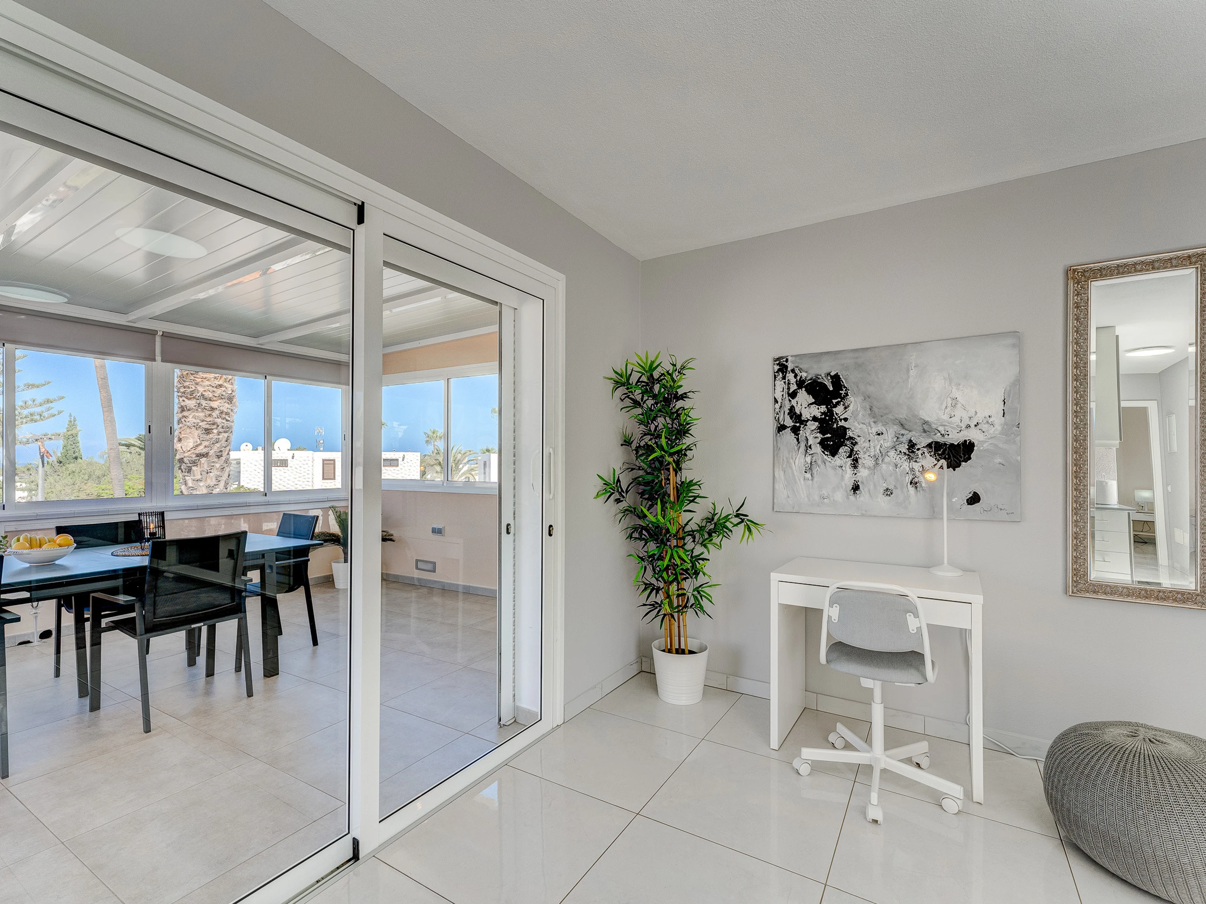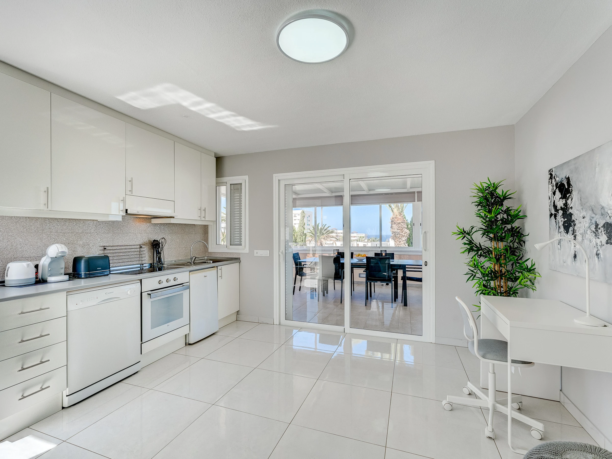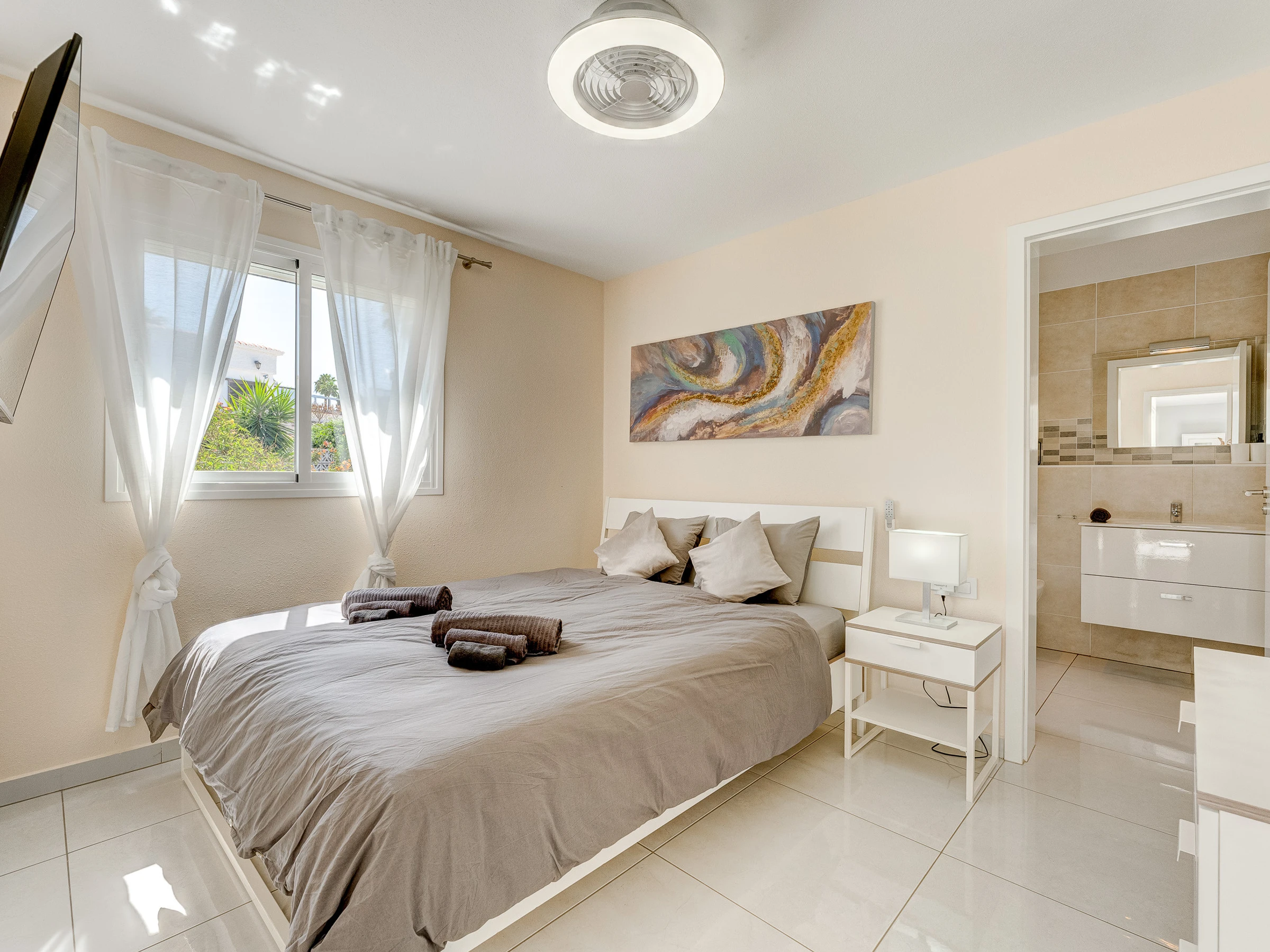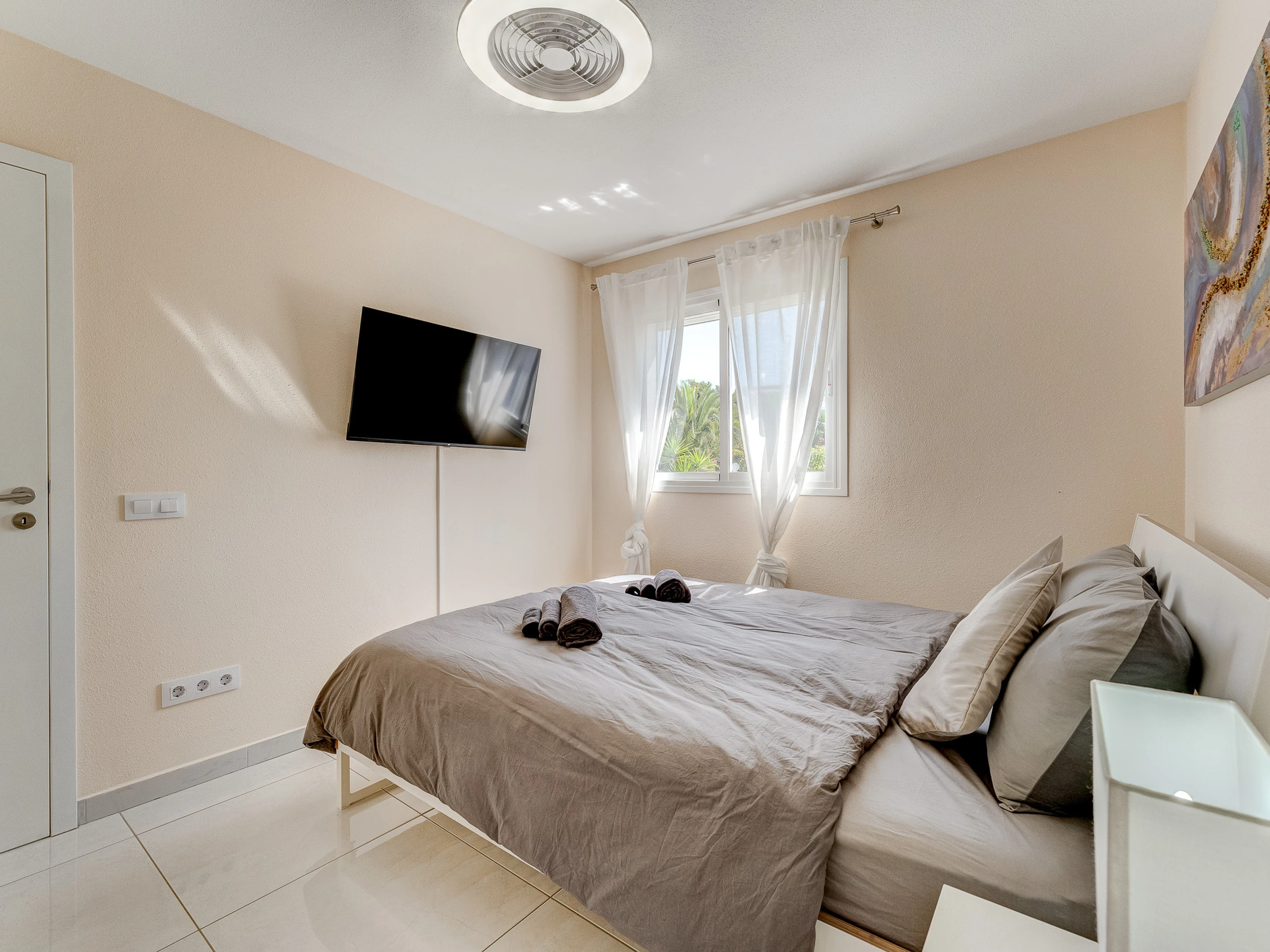 Das Apartment wurde gerade hochwertig renoviert und stilvoll eingerichtet. Das traumhafte Apartment befindet sich an eines der schönsten Sandstrände Teneriffas. Von der grossen Terrasse hat man einen tollen Meerblick. Auf der hinteren Terrasse hat man einen umwerfenden Blick auf den Garten und die Berge. Das Apartment verfügt über 2 Schlafzimmer, 1 Wohnzimmer ( mit Schlafsofa) mit einer amerikanischen voll ausgestatteten Küche, 1 Aussenküche, 1 Ankleidezimmer, 2 Badezimmern und 2 Terrassen (eine ist sogar teilüberdacht), die keine Wünschen übrig lassen. Der grosszügige beheizte Gemeinschaftspool in der sehr gepflegten Anlage ( ist ca. 1-2 Minuten vom Apartment fussläufig entfernt und sorgt für Abkühlung und Spass für die ganze Familie. Eines der schönsten Strände Teneriffas liegt nur ca. 200m entfernt und alles andere ist auch fussläufig in wenigen Minuten erreichbar. Der schönste Wasserpark der Welt, der Siampark ist auch nur ca. 10 Gehminuten entfernt. Auch die grösste Shopping Mall im Süden Tenriffas, die Siam Mall ist keine 15 Minuten per Fuss erreichbar.