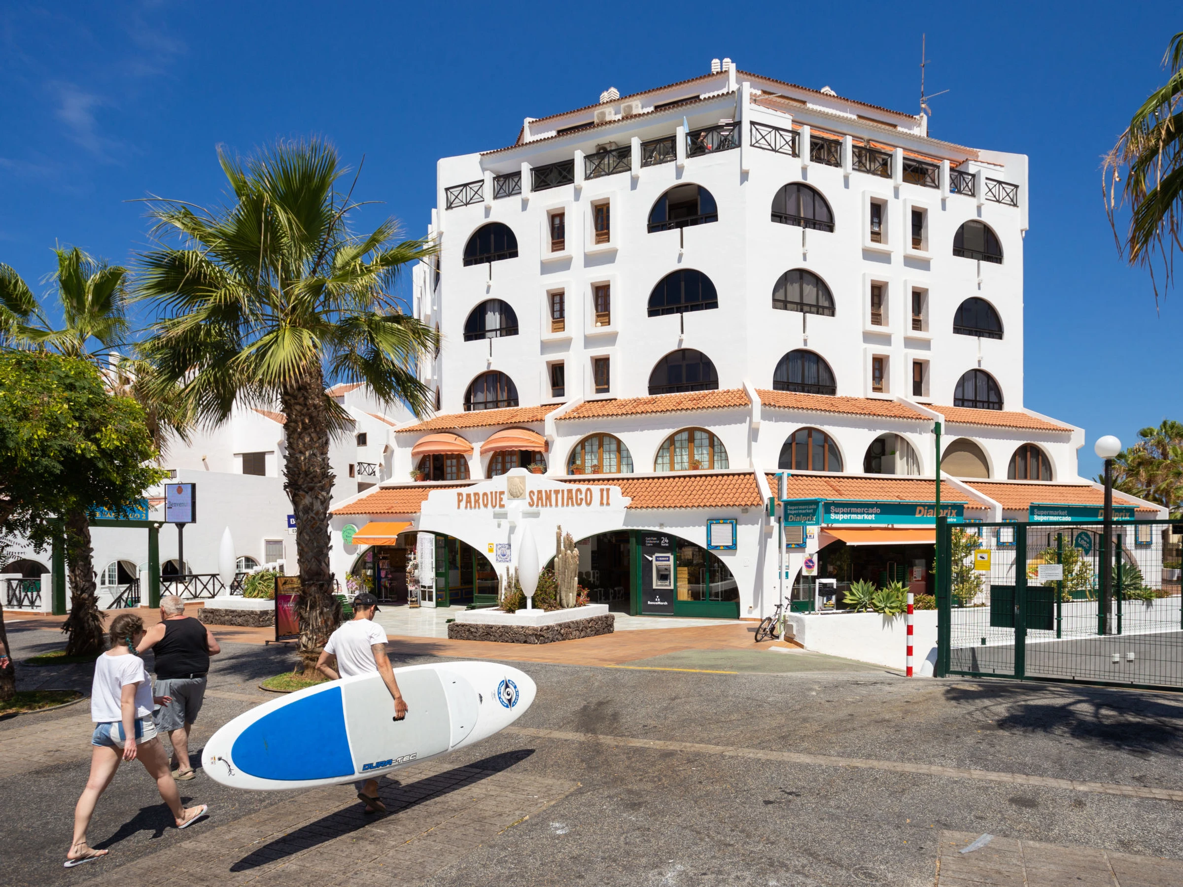 Apart-Hotel "Parque Santiago II". Im Ortszentrum von Playa las Américas, 200 m vom Meer. Zur Mitbenutzung: Schwimmbad eingezäunt (100 - 250 cm tief, saisonale Verfügbarkeit: [hidden] Öffnungszeiten Schwimmbad: 09:30-19:00 und 09:30-17:30). WC im Poolbereich, Dusche/WC im Poolbereich, Kinderbecken. In der Anlage: Restaurant, Bar. Supermarkt 30 m, Restaurant 40 m, Bar 30 m, Café, Fußgängerzone 20 m, Bushaltestelle 550 m, Sandstrand 200 m. Golfplatz (18 Loch) 2.4 km, Surfschule, Segelschule 20 m, Minigolf 550 m, Kinderspielplatz 30 m. Nahe gelegene Sehenswürdigkeiten: Shopping Center Oasis and Safari 800 m, Playa de las Américas 200 m, Siam Mall 2.6 km, Siam Park 2.3 km. Bitte beachten: Babyausstattung auf Anfrage. Der Besitzer akzeptiert keine Jugendgruppen.