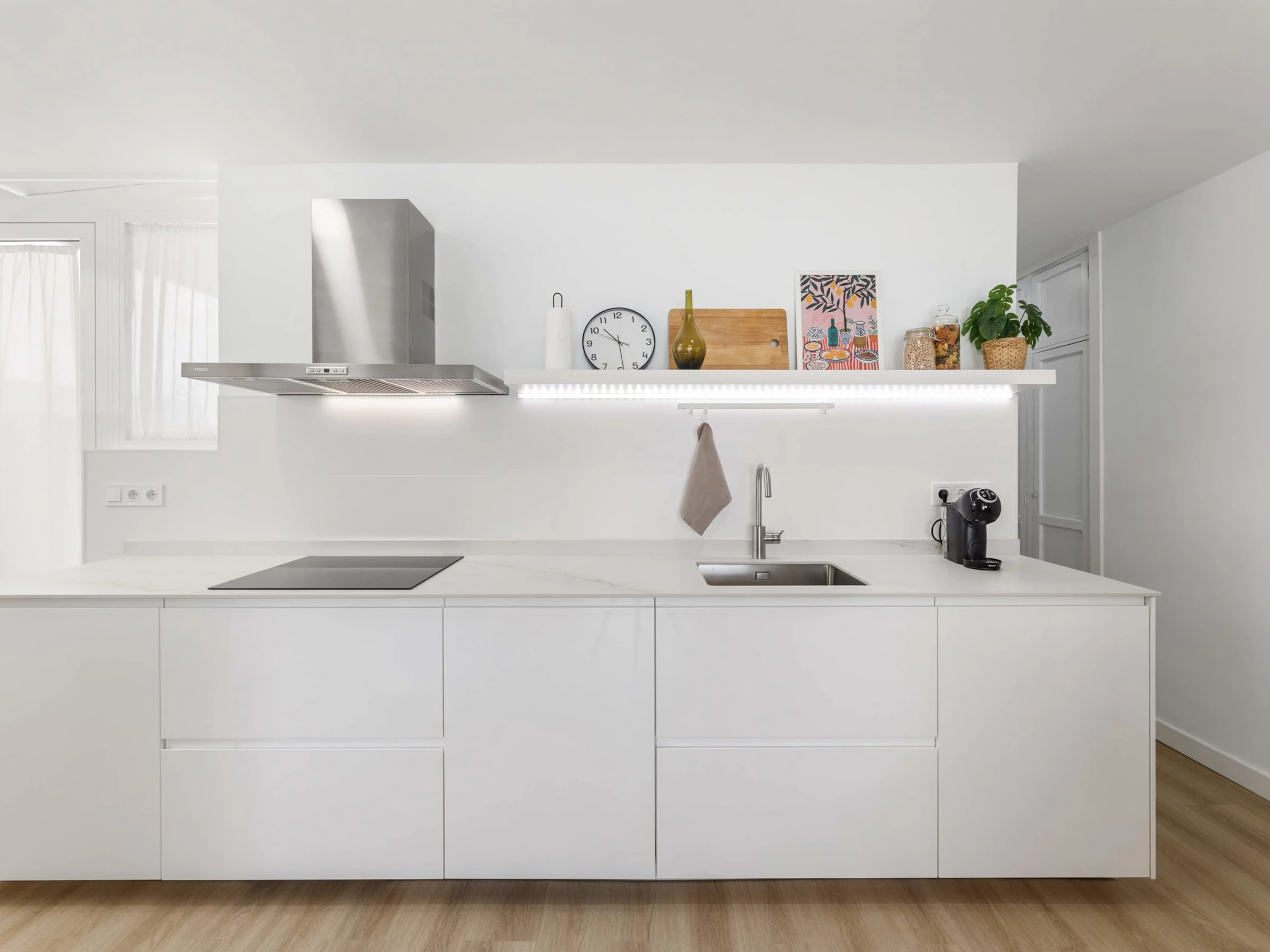 Dieses küche, ist ausgestattet in mikrowelle, backofen, spülmaschine, kochutensilien und kaffeemaschine.