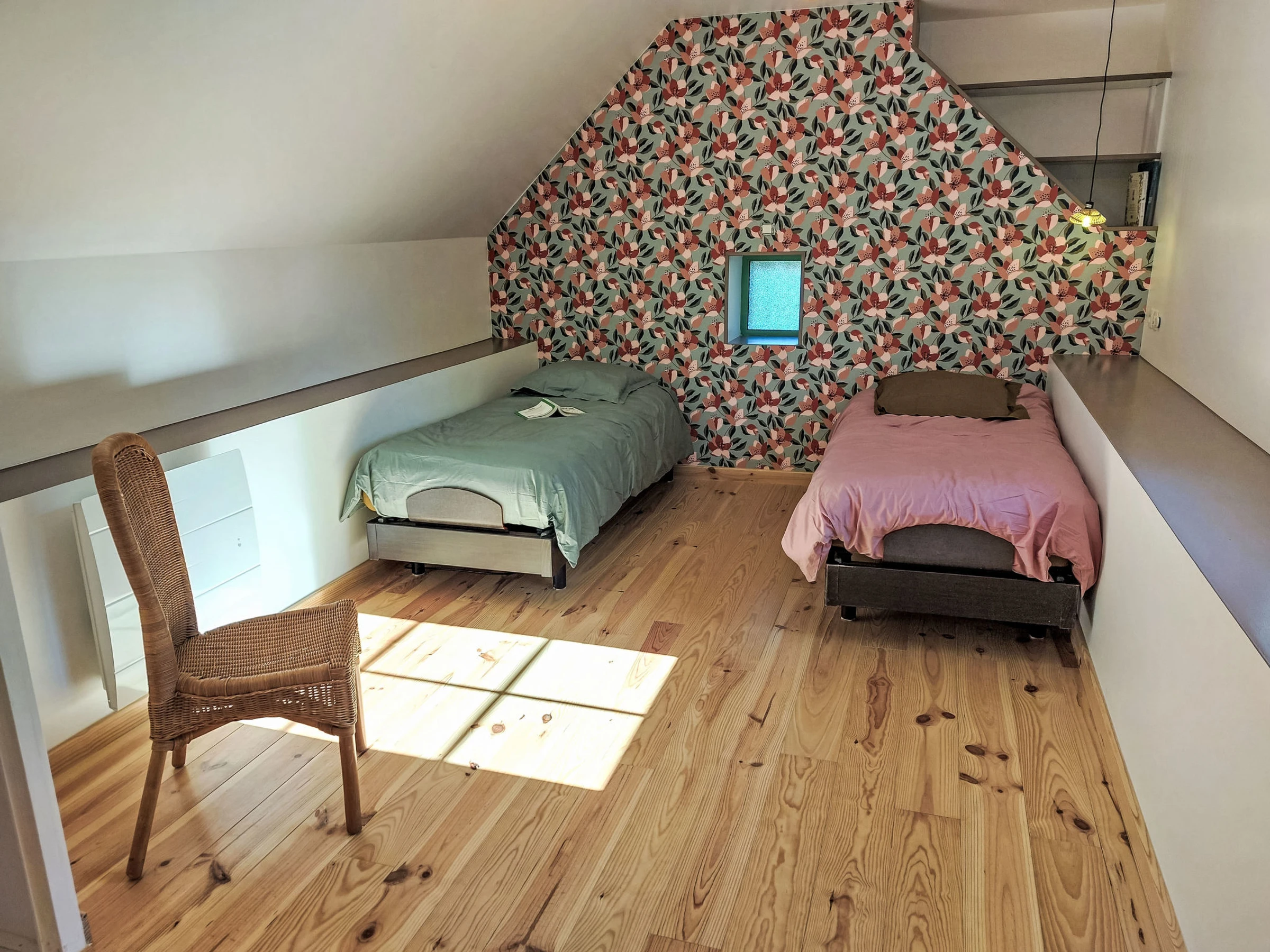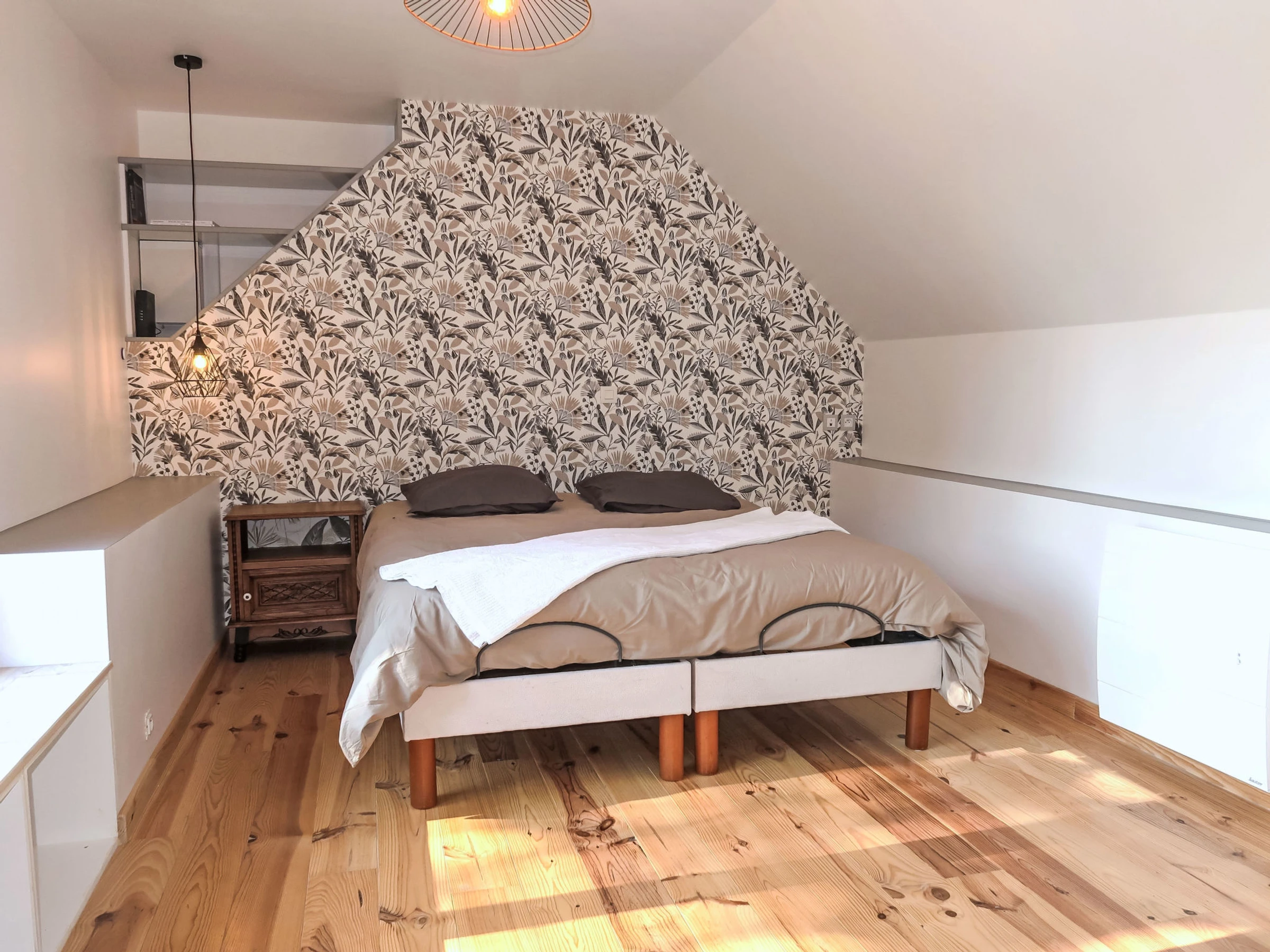 "La Longère", 4-Zimmer-Haus 70 m2 auf 2 Stockwerken. Hell, vollständig renoviert im Jahre 2025, schön und gemütlich eingerichtet: offenes Wohn-/Esszimmer 30 m2 mit TV, Flachbildschirm und Holzofen. Ausgang zum Garten, zur Terrasse. Offene Küche (Backofen, Geschirrspüler, 4 Induktionskochplatten, Toaster, Wasserkocher, Mikrowelle, Tiefkühler, elektrische Kaffeemaschine). Ausgang zum Garten, zur Terrasse. Dusche, sep. WC. Obergeschoss: 1 abgeschrägtes Zimmer 15 m2 mit 1 Doppelbett (90 cm, Länge 190 cm). 1 Zimmer mit 2 Betten (90 cm, Länge 190 cm). Zur Verfügung: Waschmaschine, Babybett bis 2 Jahre, Haartrockner. Internet (WLAN, gratis). Bitte beachten: Nichtraucher-Haus. Maximal 1 kleines Haustier/Hund erlaubt. Rauchmelder. Inserat einer Privatperson nach Artikel 155, IV, CGI.
