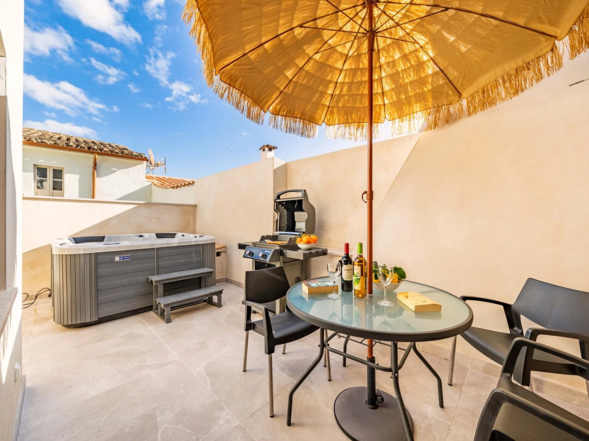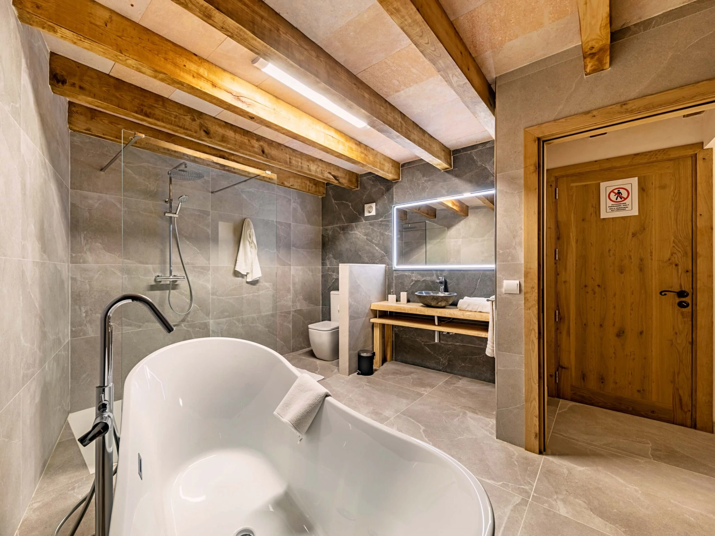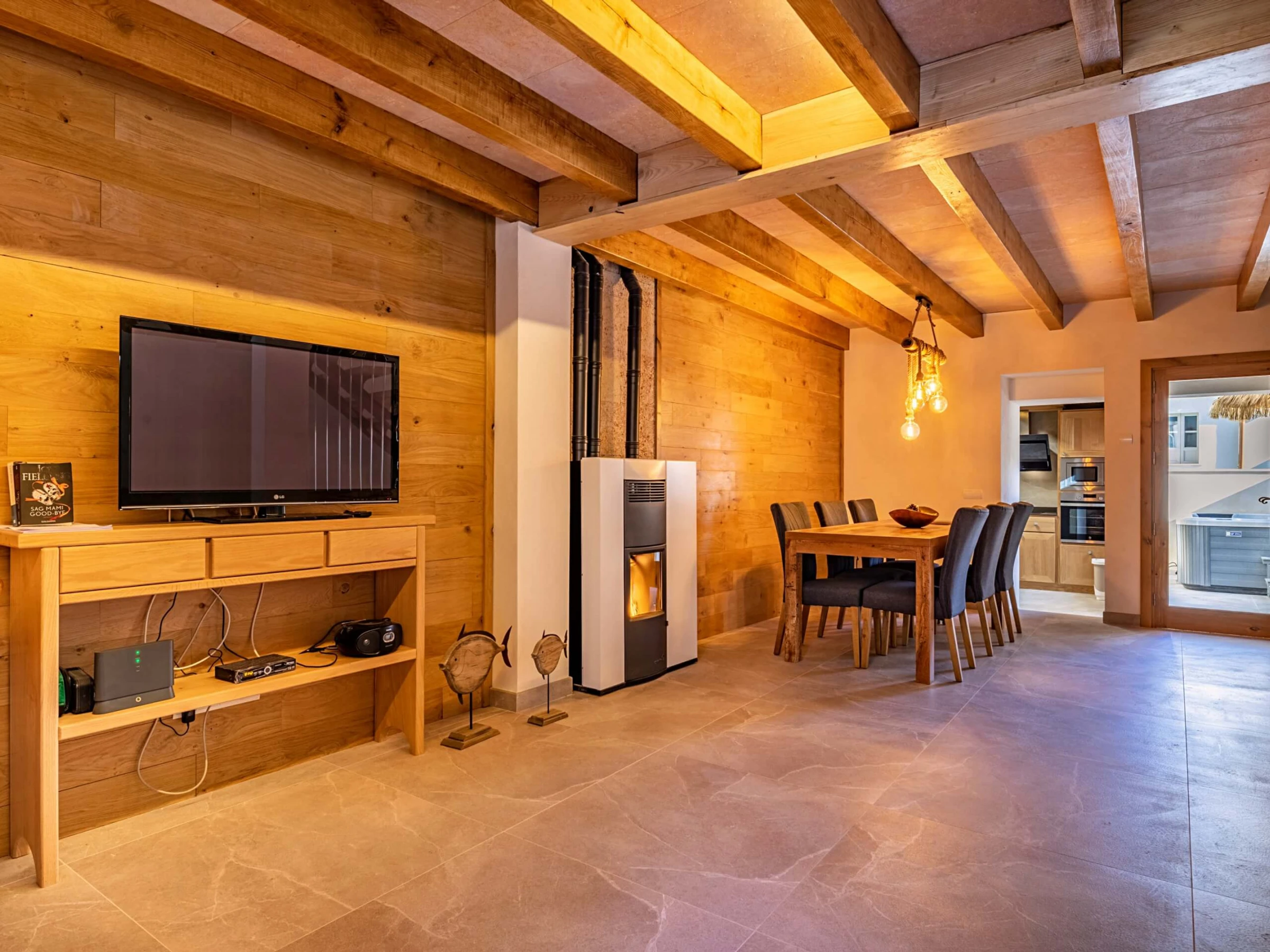 Die Erdgeschosswohnung verfügt über einen geräumigen Wohn-Essbereich mit allen Annehmlichkeiten, Liebe zum Detail und einem exquisiten Design. Auf derselben Ebene befinden sich eine voll ausgestattete Küche sowie ein Patio mit Whirlpool und Grillstelle. Es gibt eine Toilette und eine Waschküche. Beheizter Whirlpool gegen einen Aufpreis von 18 €/Tag, mindestens 3 aufeinanderfolgende Tage. (verfügbar von Oktober bis Mai)