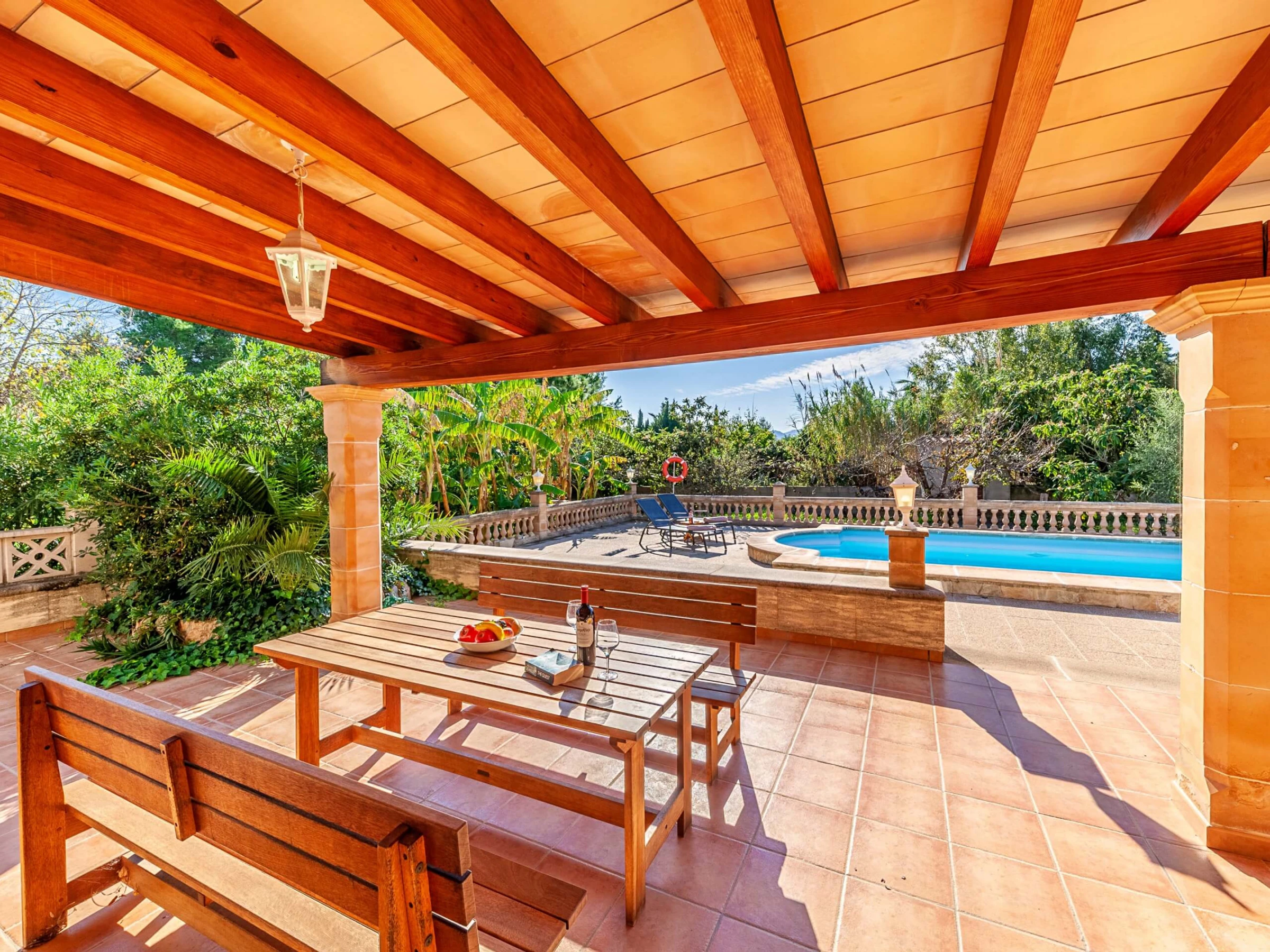 Im Äußeren führt die große überdachte Terrasse zu einer offenen Terrasse mit einer schönen Grillzone und einem Außenbadezimmer mit Dusche. Der große private Swimmingpool, umgeben von reifen Gärten und Obstbäumen, ist perfekt, um die wahre mallorquinische Atmosphäre und Natur zu genießen!