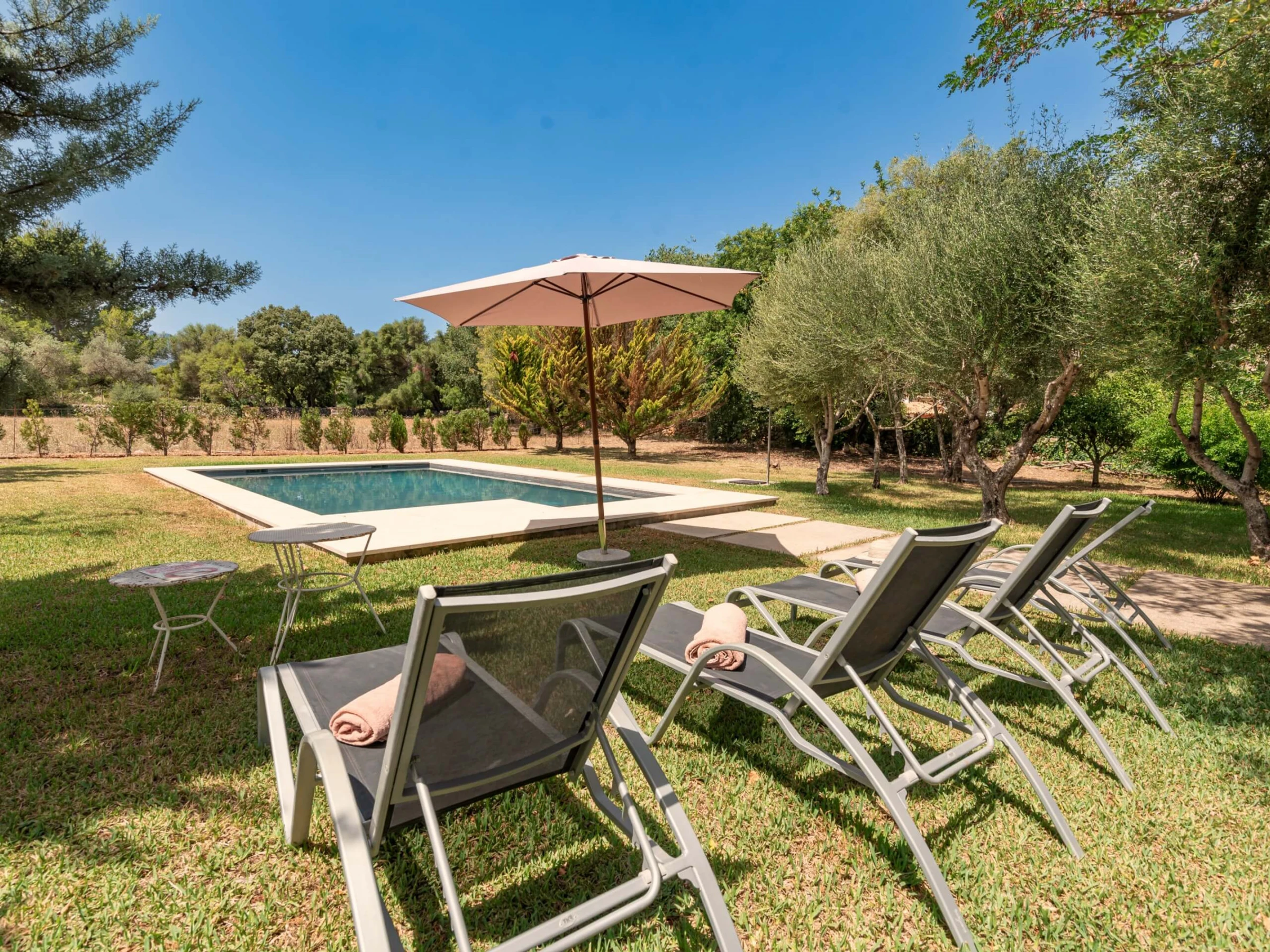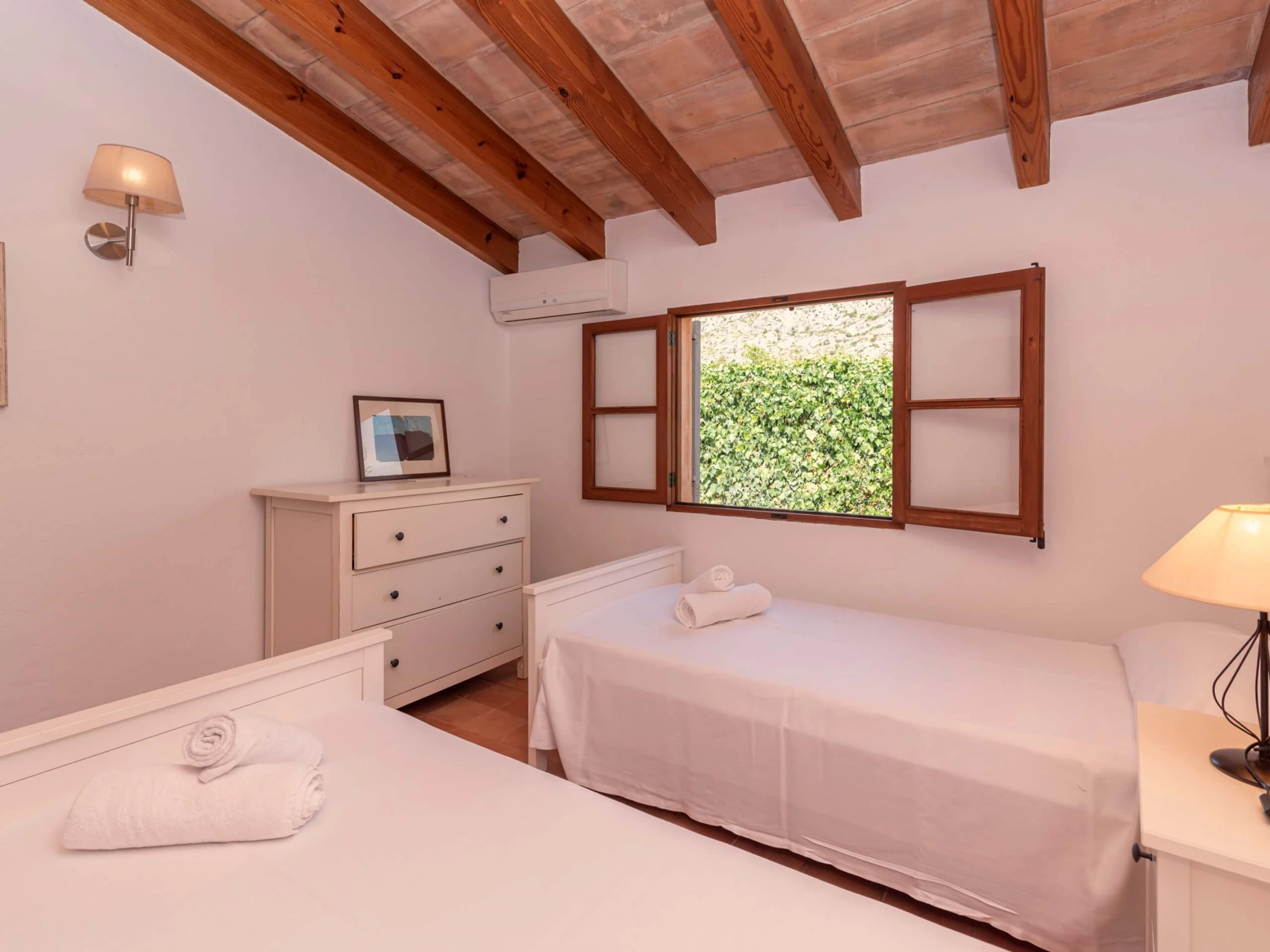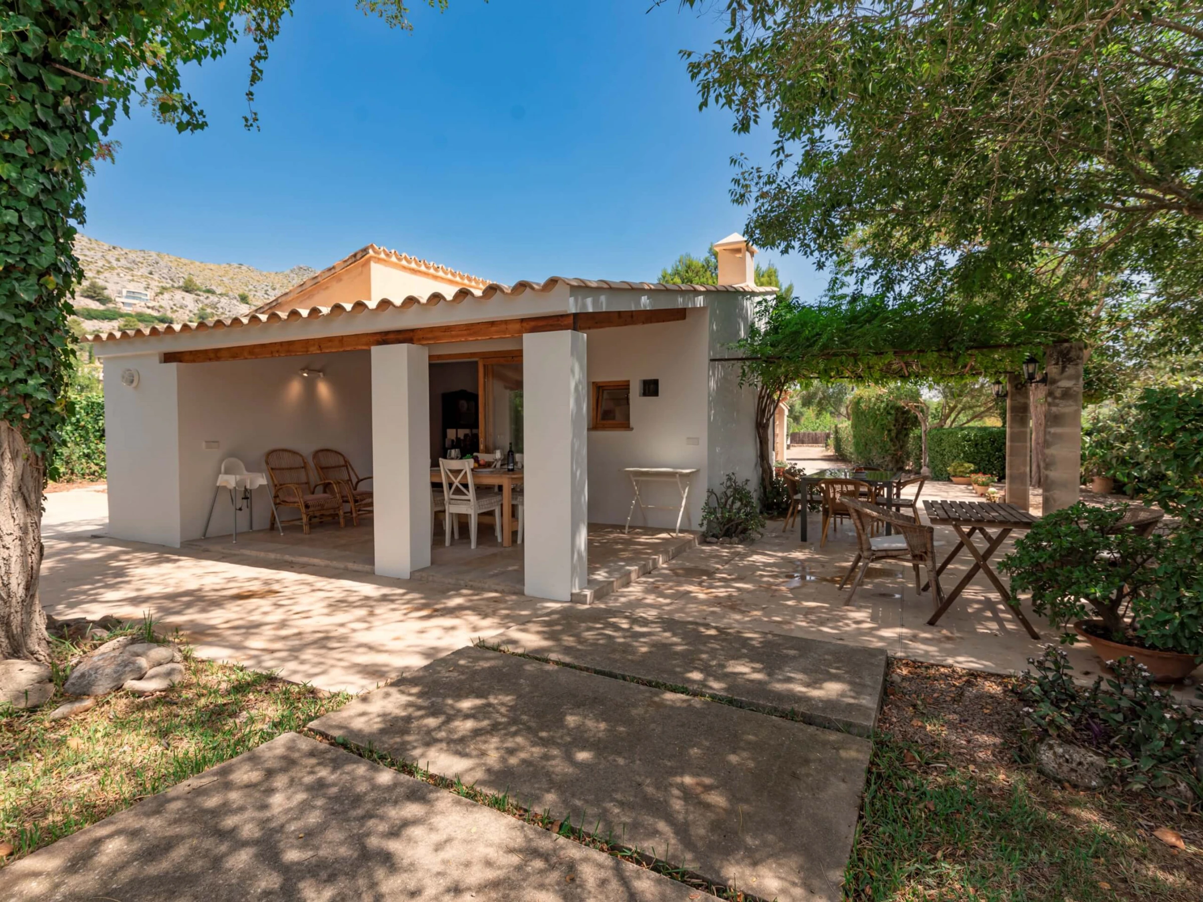 Villa Venzala Petit ist eine süße Immobilie mit 2 Schlafzimmern und privatem Pool, perfekt gelegen in der Zone La Font, zwischen Pollensa und Puerto Pollensa. Die Zone La Font ist auf der ganzen Insel bekannt, einen der exklusivsten Stadtteile zu haben, perfekt zwischen Stadt und Meer gelegen und bietet eine einzigartige Atmosphäre: elegant und in der Nähe von Annehmlichkeiten. In dieser schönen Umgebung, Villa Venzala Petit zwischen den grünen Hügeln: umgeben von weitläufigen Privatgärten, ausgestattet mit einem privaten Pool und klimatisierten Innenräumen, ist das perfekte Ferienhaus für ein Paar oder eine kleine Familie, die Privatsphäre zusammen mit einem echten mallorquinischen Gefühl sucht. Die sandigen Strände von Cala San Vicente und Puerto Pollensa sind nur wenige Autominuten entfernt, ebenso wie das historische Zentrum von Pollensa, perfekt für ein Abendessen.