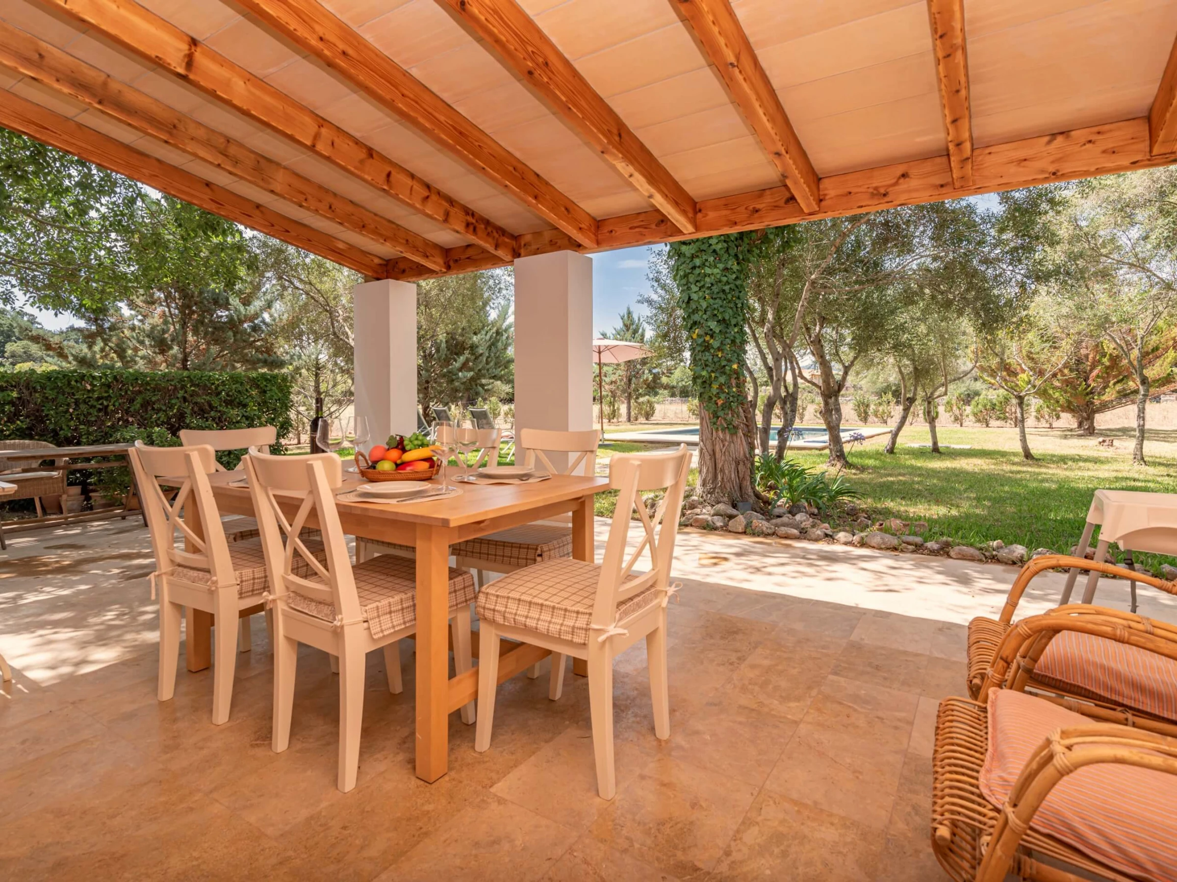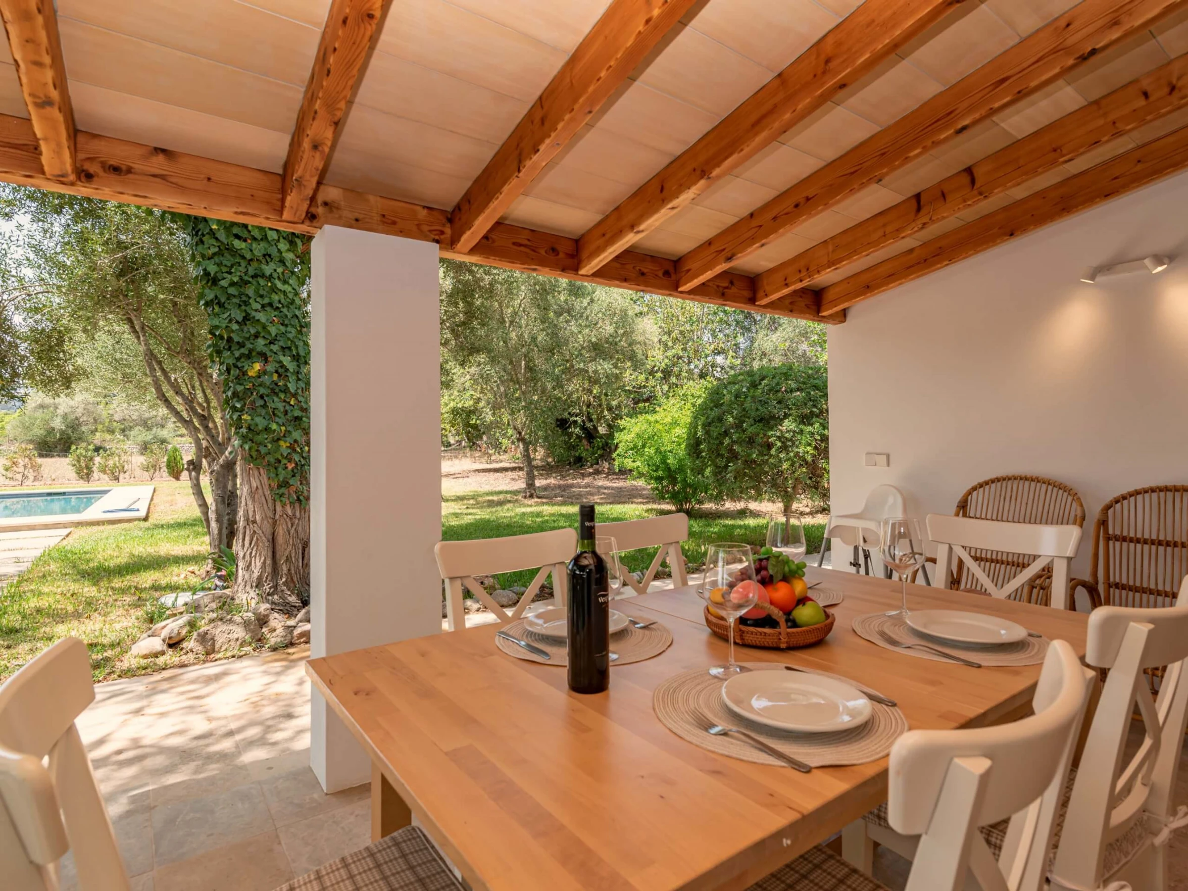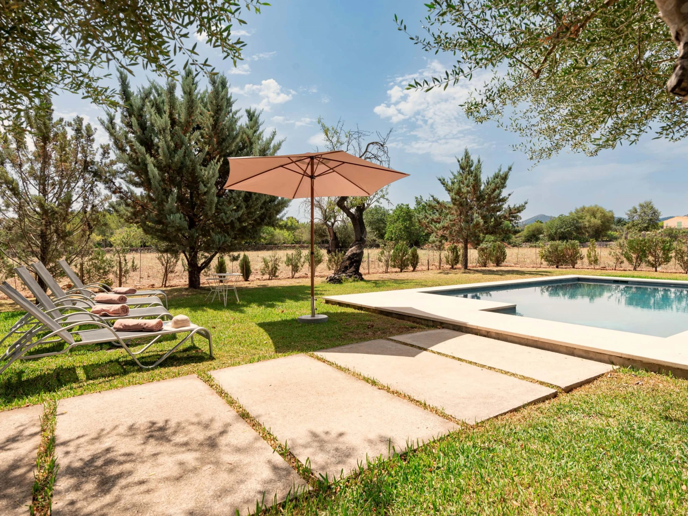 Villa Venzala Petit ist eine süße Immobilie mit 2 Schlafzimmern und privatem Pool, perfekt gelegen in der Zone La Font, zwischen Pollensa und Puerto Pollensa. Die Zone La Font ist auf der ganzen Insel bekannt, einen der exklusivsten Stadtteile zu haben, perfekt zwischen Stadt und Meer gelegen und bietet eine einzigartige Atmosphäre: elegant und in der Nähe von Annehmlichkeiten. In dieser schönen Umgebung, Villa Venzala Petit zwischen den grünen Hügeln: umgeben von weitläufigen Privatgärten, ausgestattet mit einem privaten Pool und klimatisierten Innenräumen, ist das perfekte Ferienhaus für ein Paar oder eine kleine Familie, die Privatsphäre zusammen mit einem echten mallorquinischen Gefühl sucht. Die sandigen Strände von Cala San Vicente und Puerto Pollensa sind nur wenige Autominuten entfernt, ebenso wie das historische Zentrum von Pollensa, perfekt für ein Abendessen.