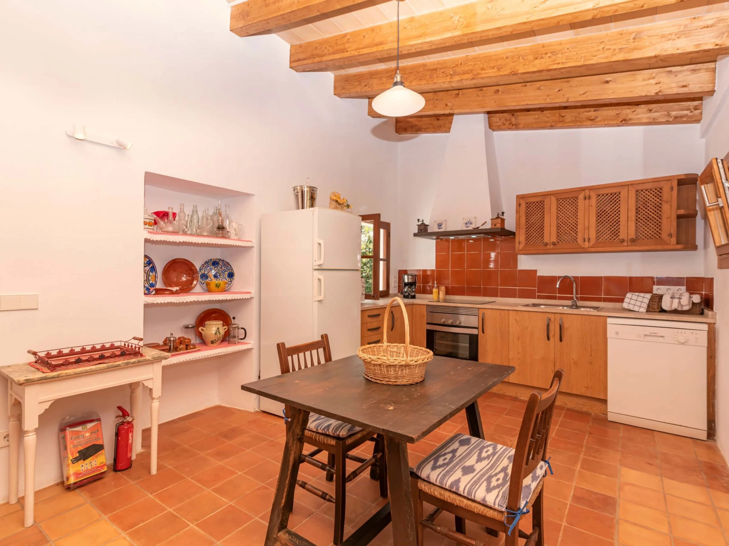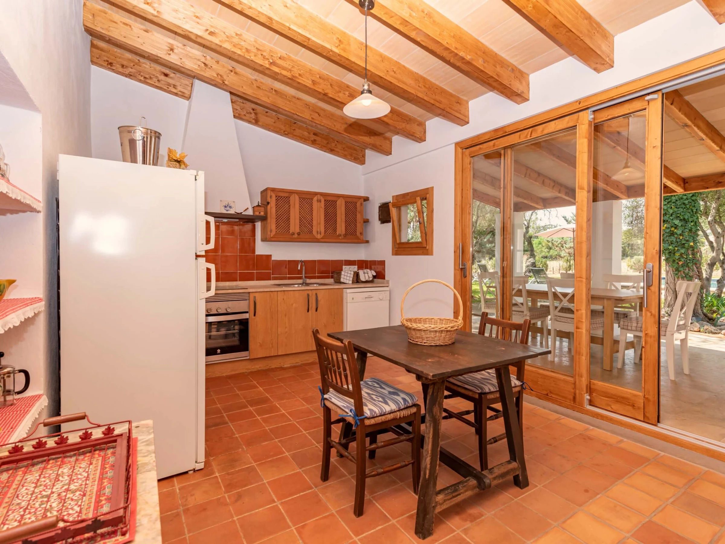 Im Inneren befindet sich die Villa auf einer einzigen Ebene und verfügt über große überdachte Terrassen und Pergolen, die perfekt zum Draußenessen sind. Die Innenräume wurden sorgfältig mit einer Mischung aus alten und neuen Stücken möbliert, um alle Annehmlichkeiten eines modernen Urlaubs mit einer persönlichen Note zu bieten. Es gibt ein großes Wohnzimmer mit angrenzendem Esszimmer, eine vollständig ausgestattete separate Küche, 1 Doppelzimmer und 1 gemütliches Zimmer mit 2 Einzelbetten und 2 Duschen.