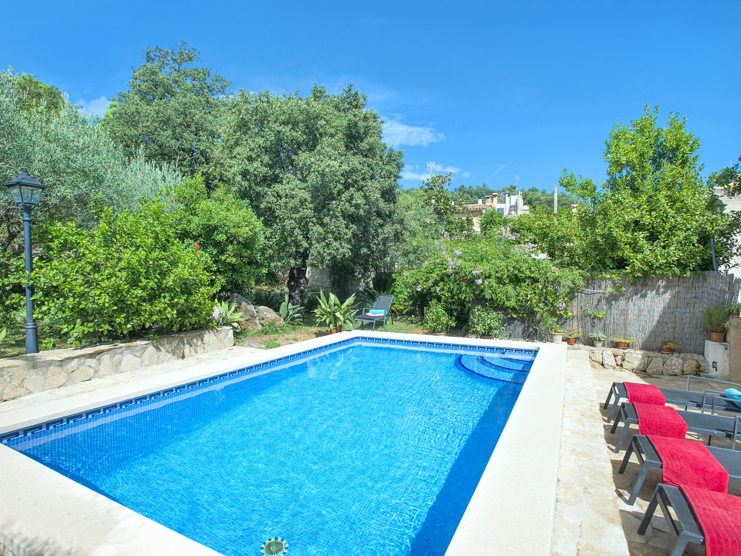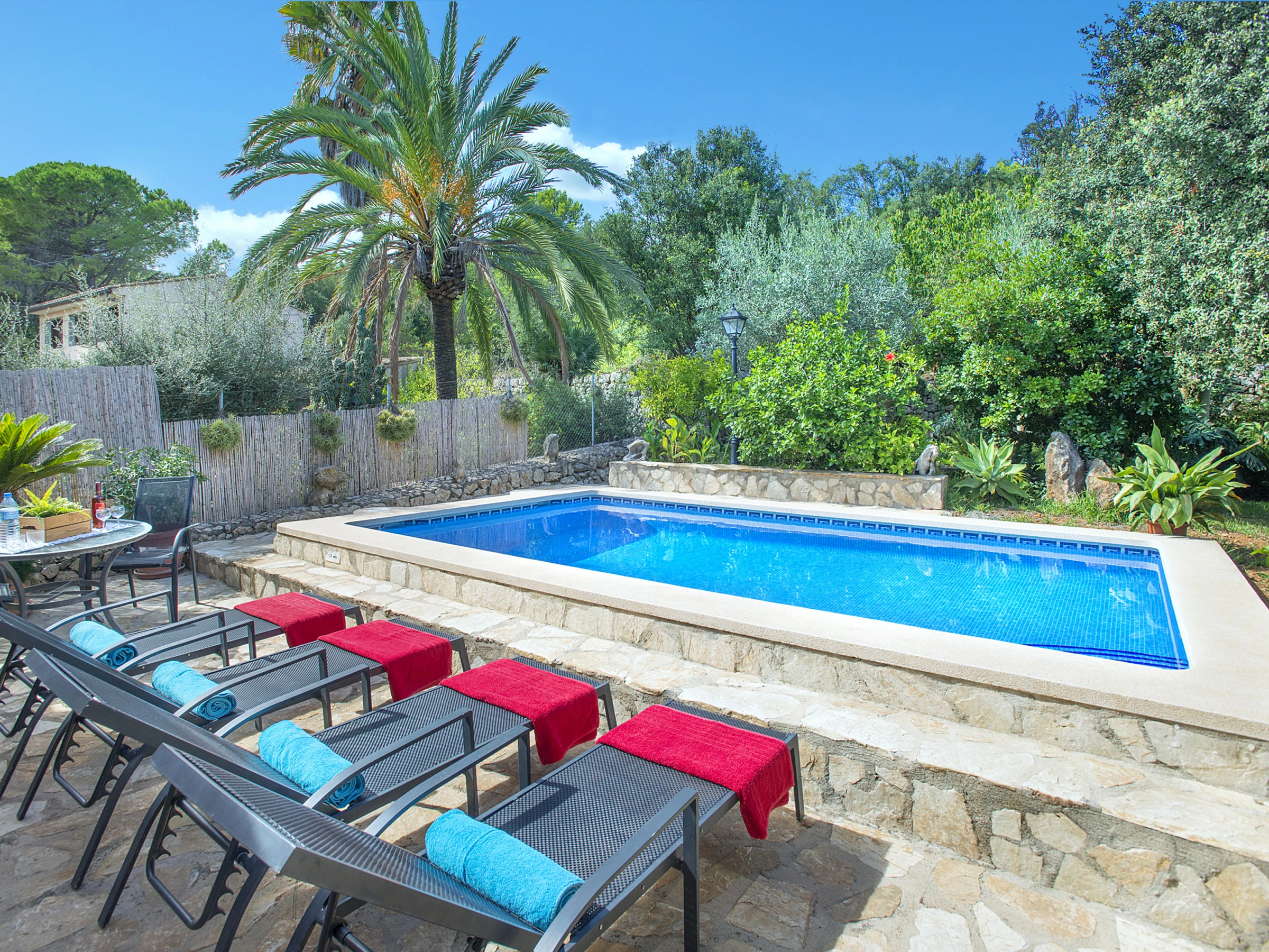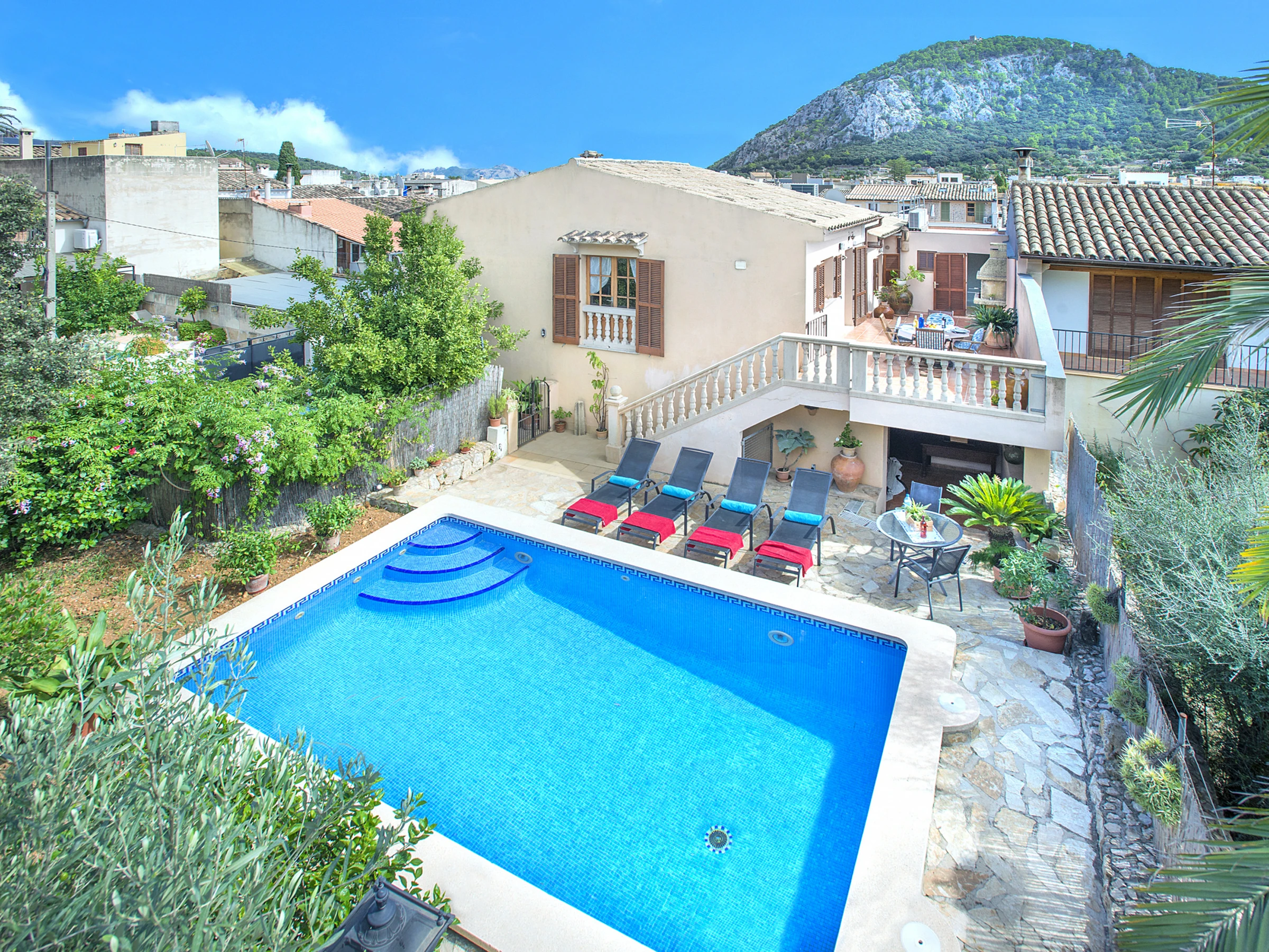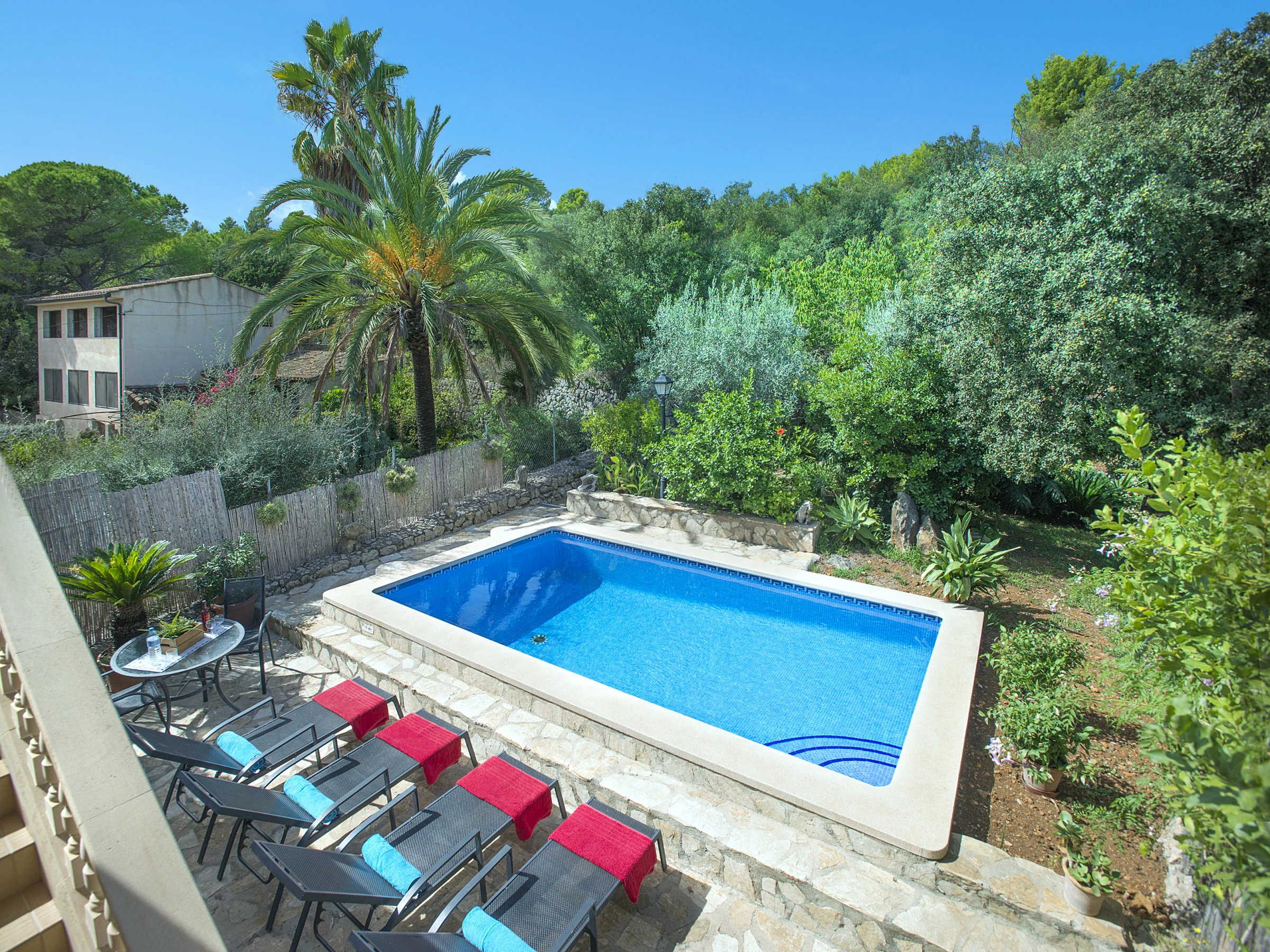 Das Äußere des Hauses bewahrt den typisch mallorquinischen Stil und verfügt über einen schönen Garten mit privatem Pool – ideal für Gäste, die Ruhe und Natur suchen, ohne auf die Nähe zum Dorfzentrum zu verzichten.
