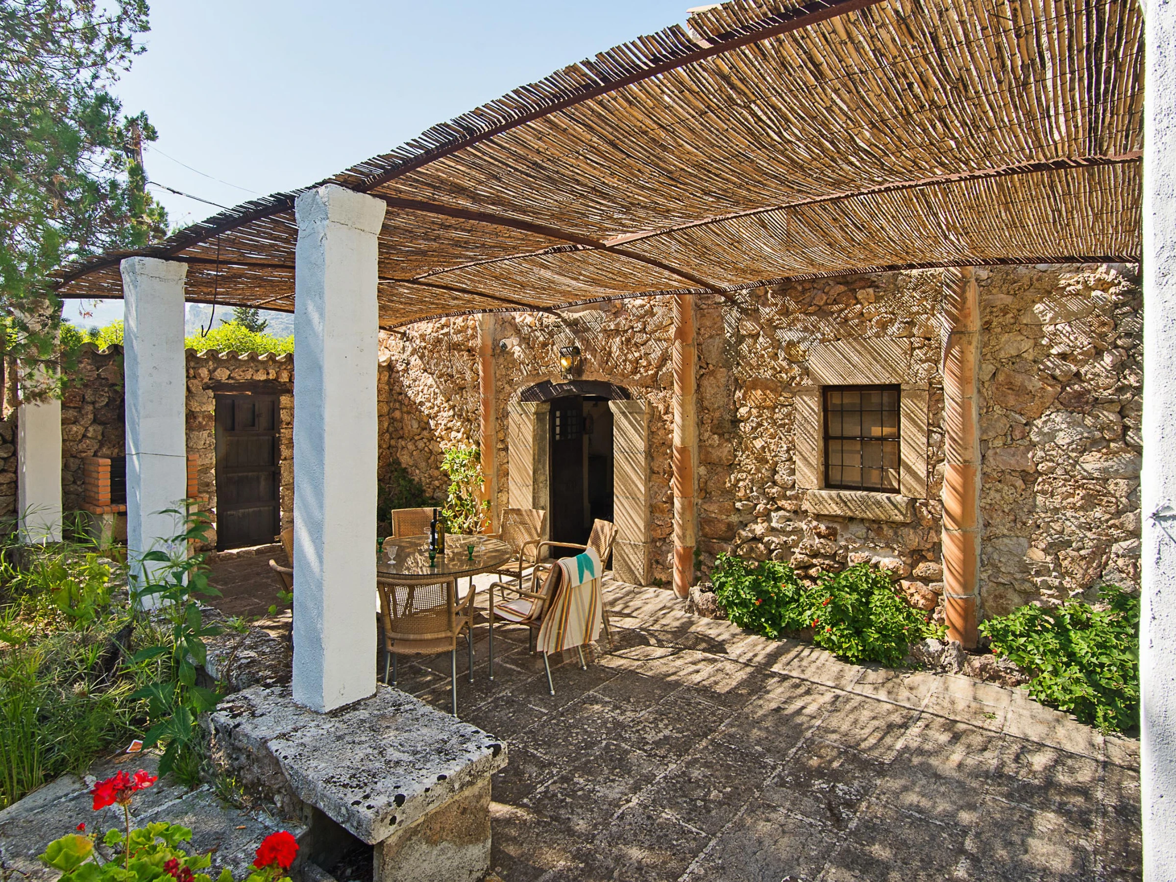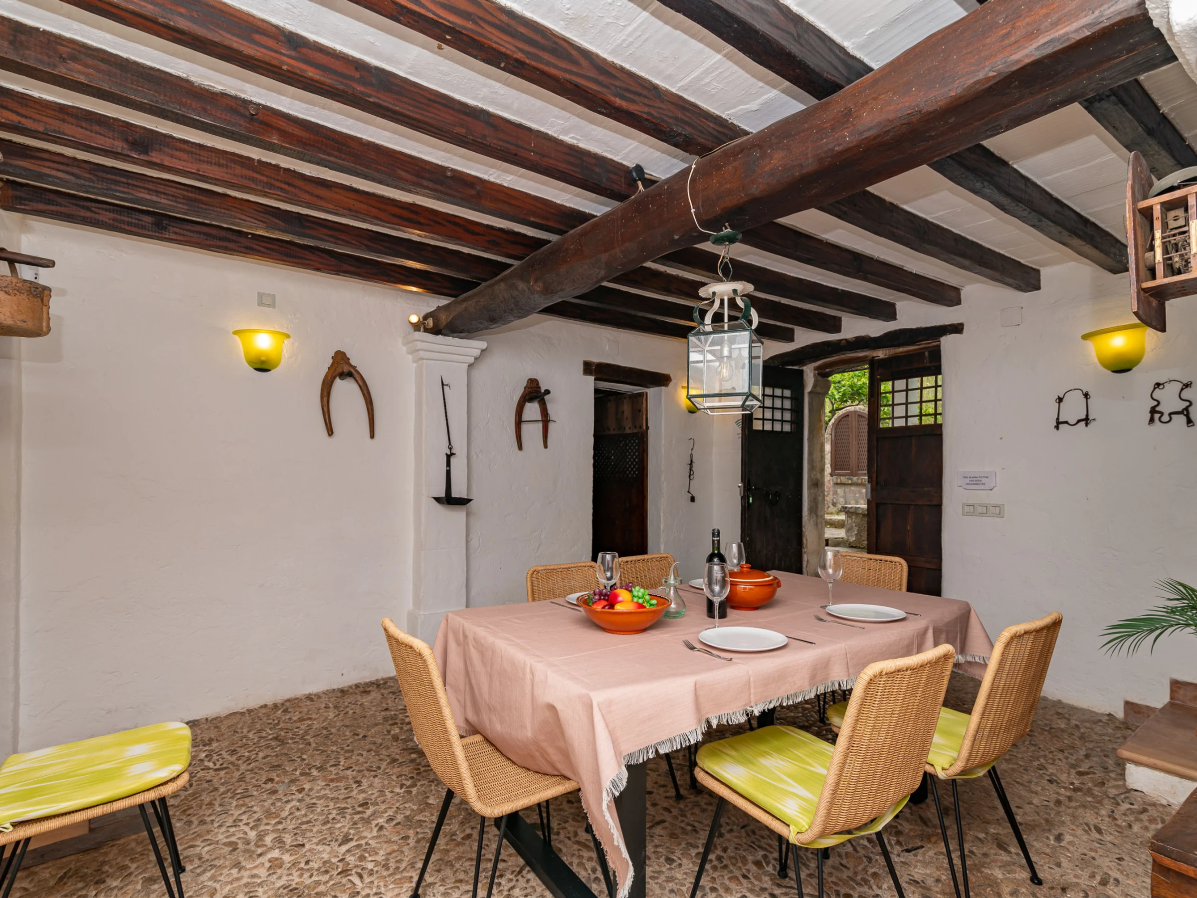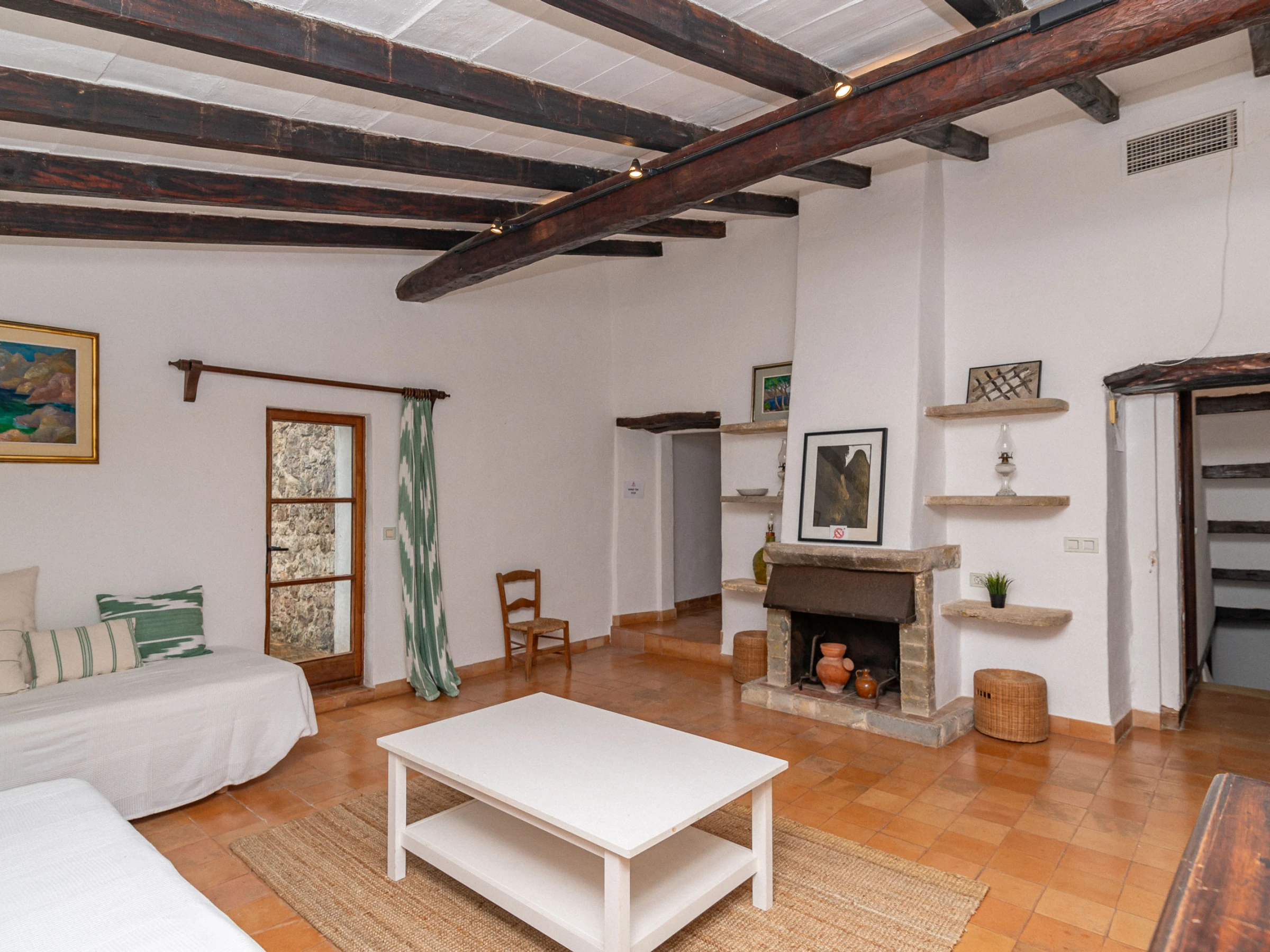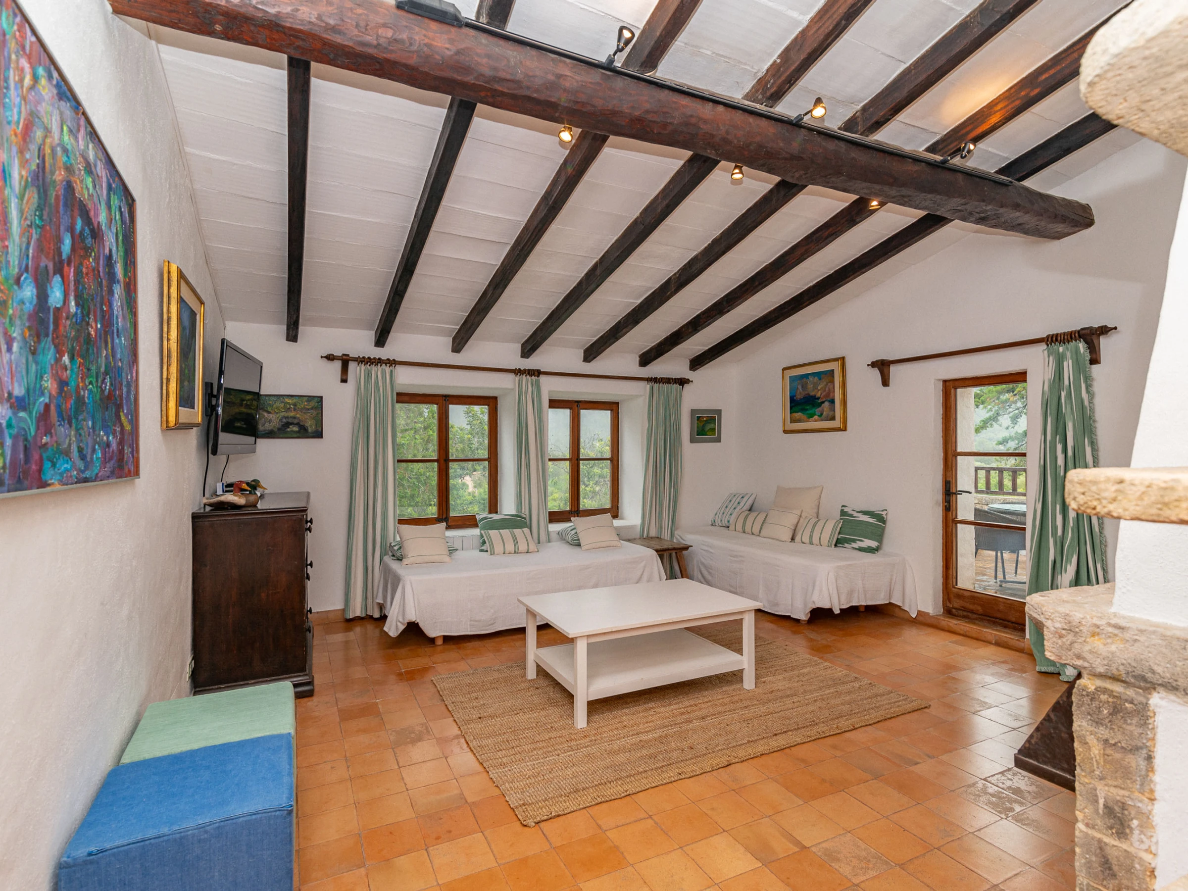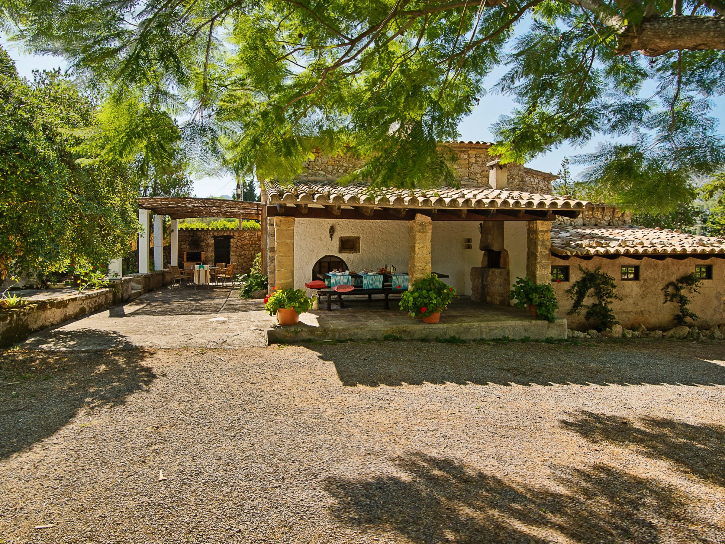 Im Freien gibt es eine überdachte Terrasse und eine charmante Poolzone, von der aus man wunderschöne Ausblicke auf die Umgebung genießen kann. Eine Rasenfläche und ein typischer Steininnenhof umgeben den Pool. Es ist ein wirklich idyllischer Ort, um sich zu entspannen oder das sanfte mallorquinische Klima in völliger Ruhe und Privatsphäre zu genießen.