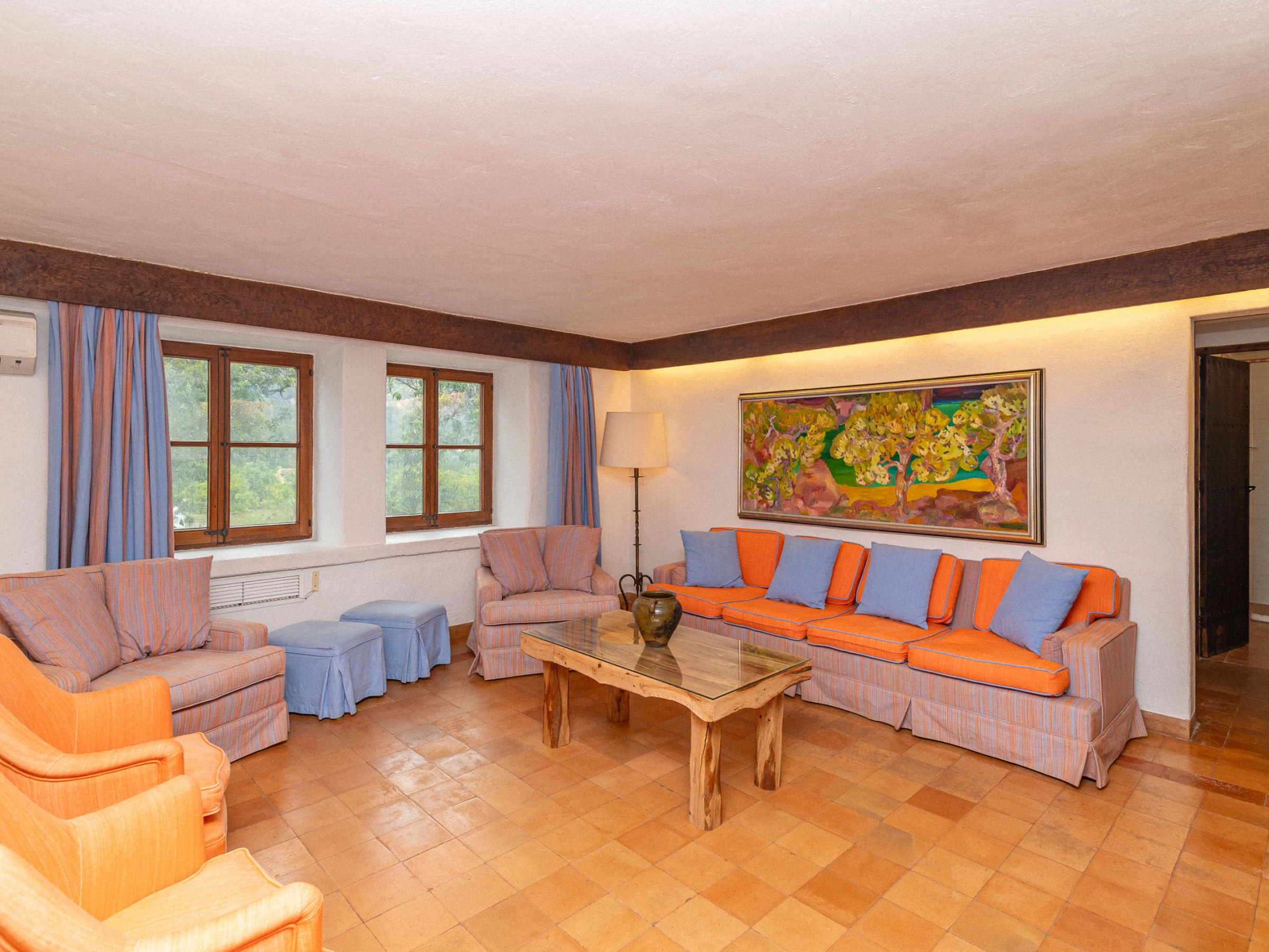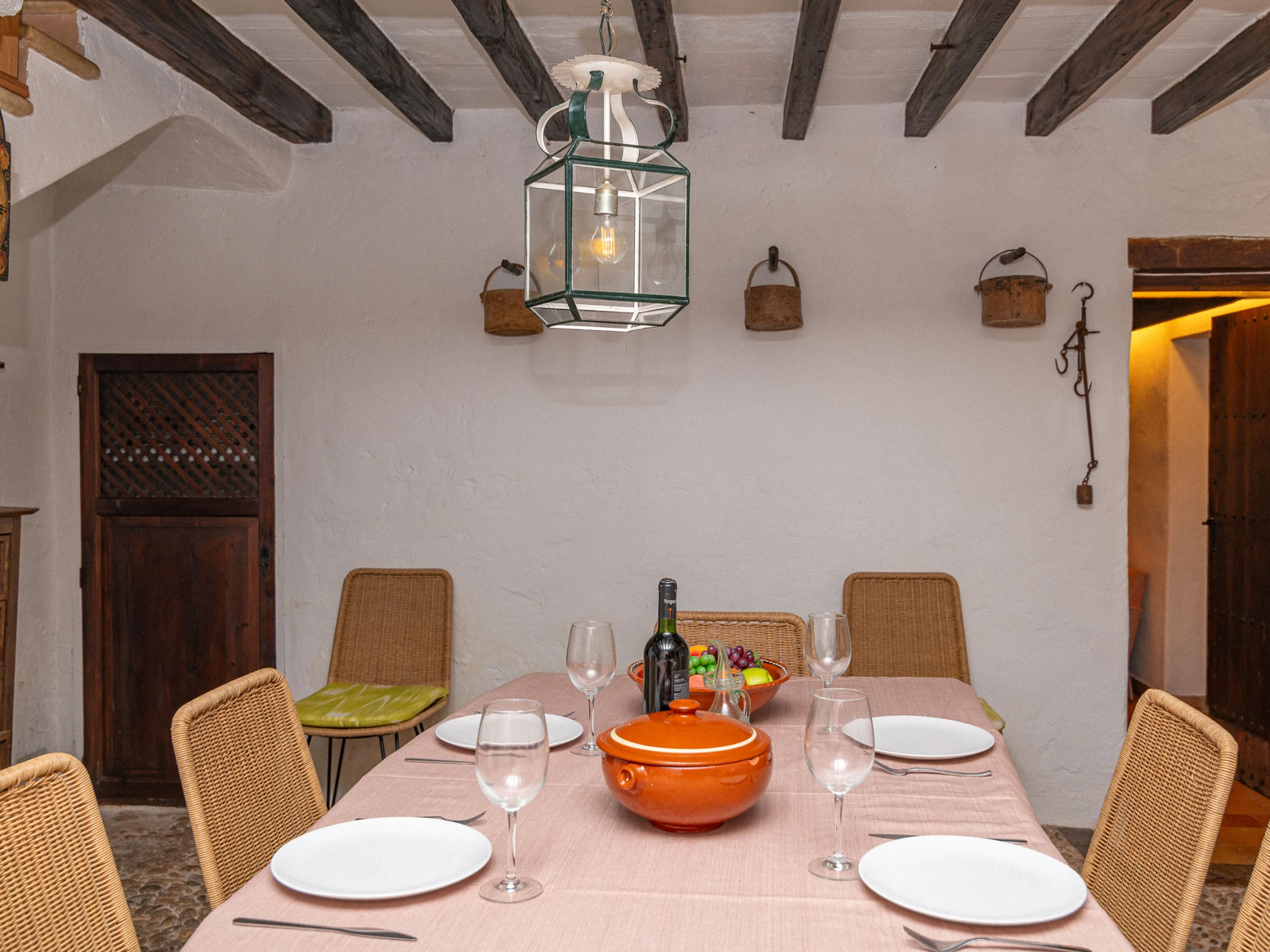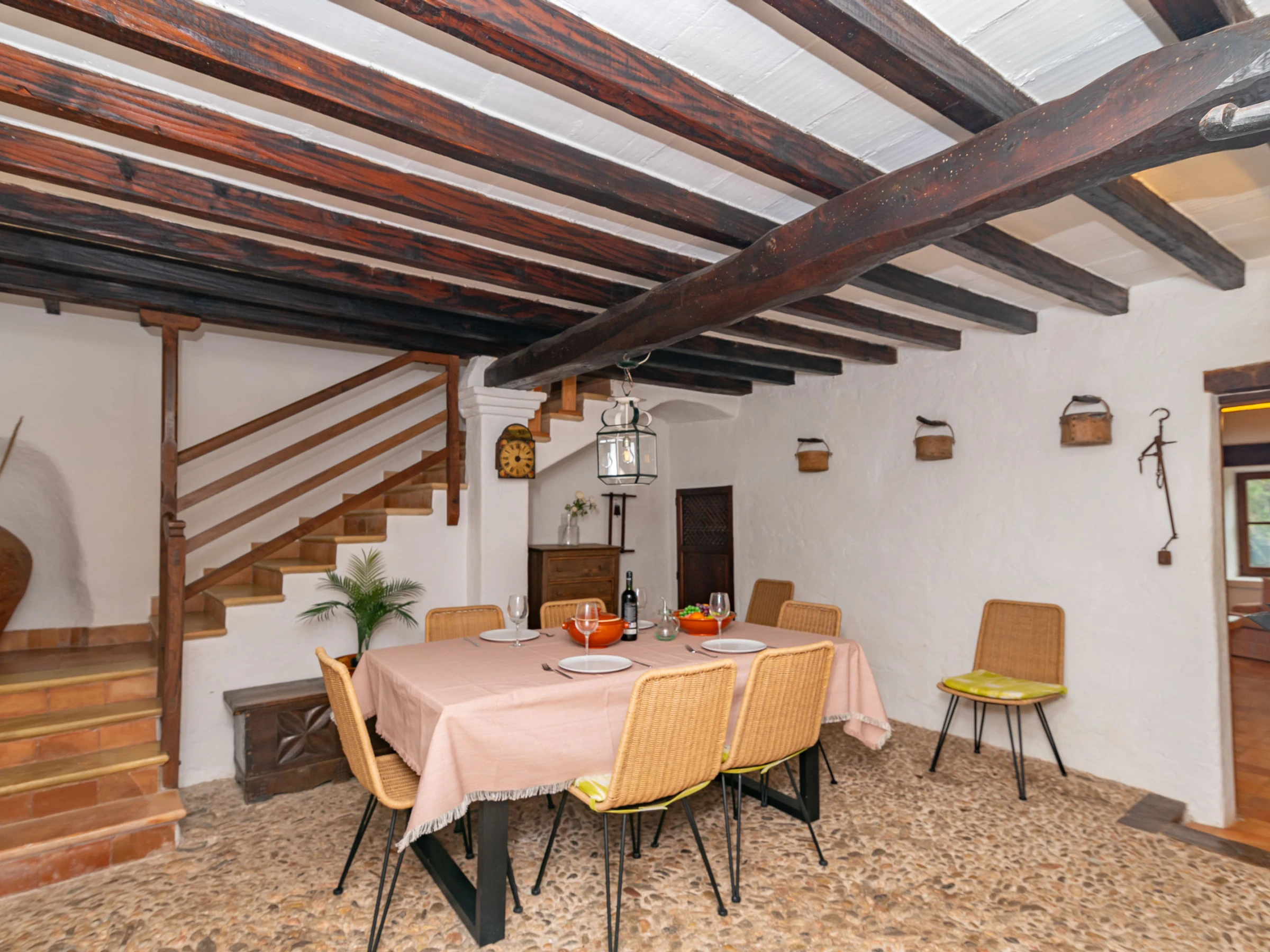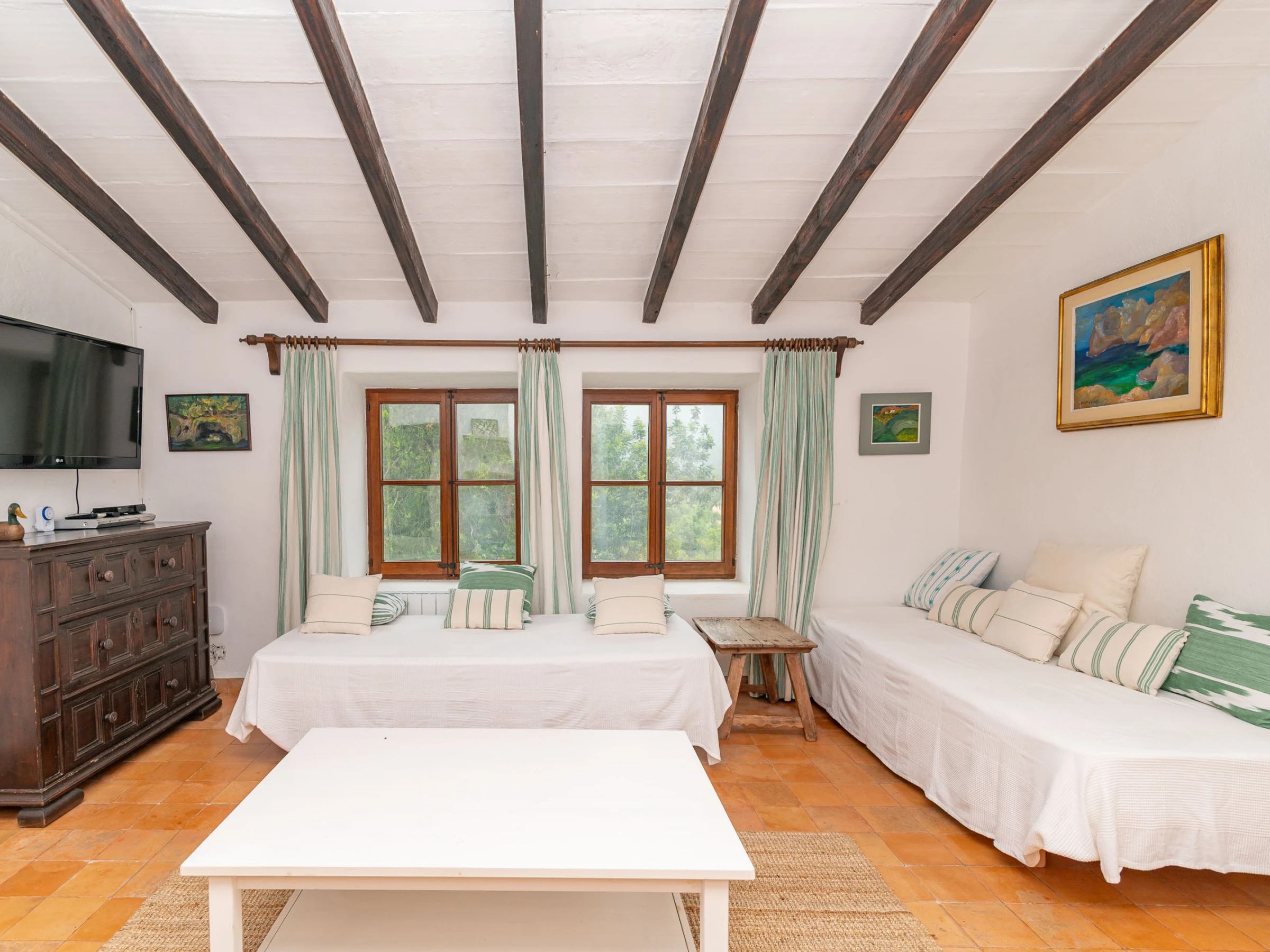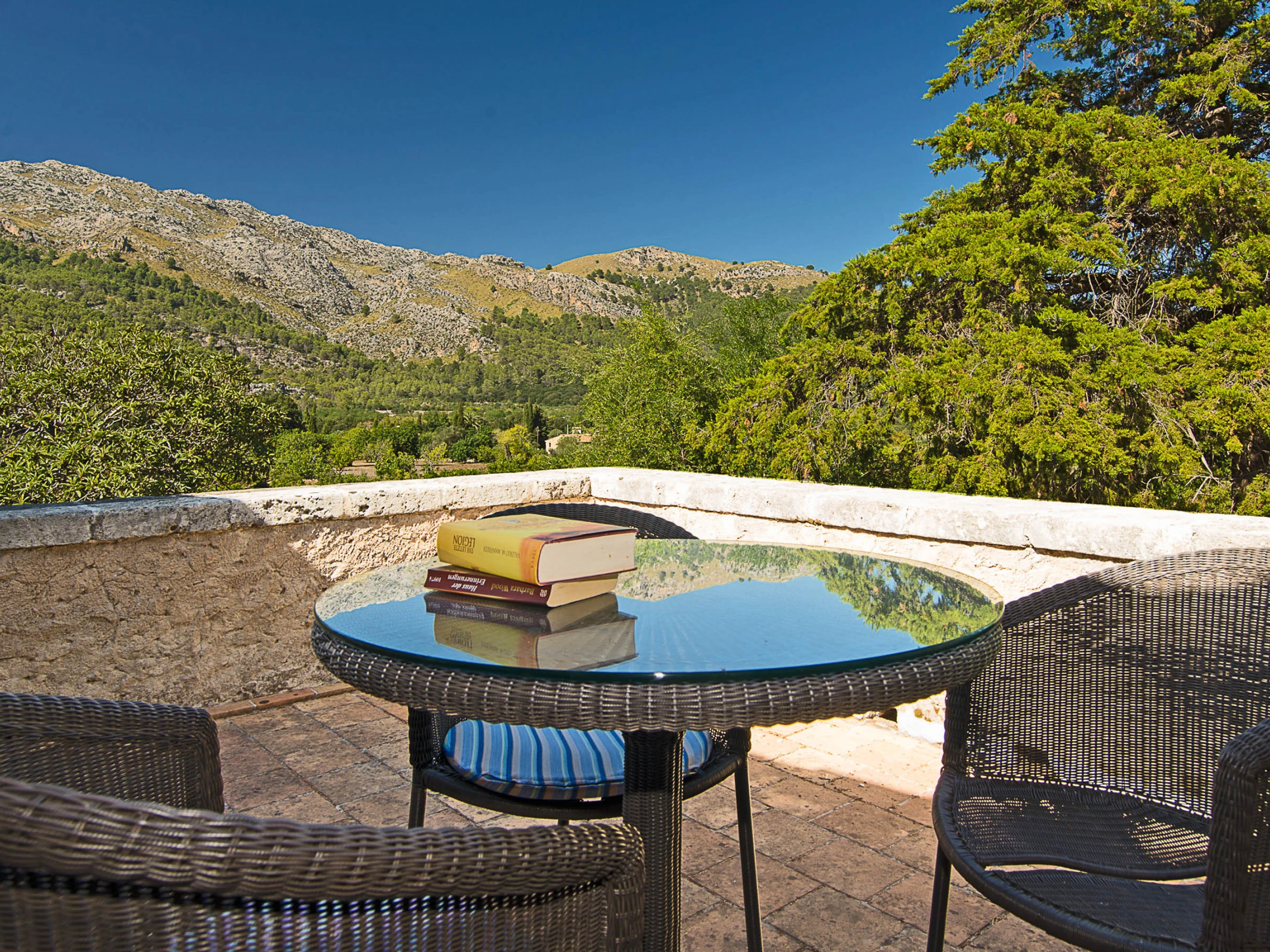 Im Freien gibt es eine überdachte Terrasse und eine charmante Poolzone, von der aus man wunderschöne Ausblicke auf die Umgebung genießen kann. Eine Rasenfläche und ein typischer Steininnenhof umgeben den Pool. Es ist ein wirklich idyllischer Ort, um sich zu entspannen oder das sanfte mallorquinische Klima in völliger Ruhe und Privatsphäre zu genießen.