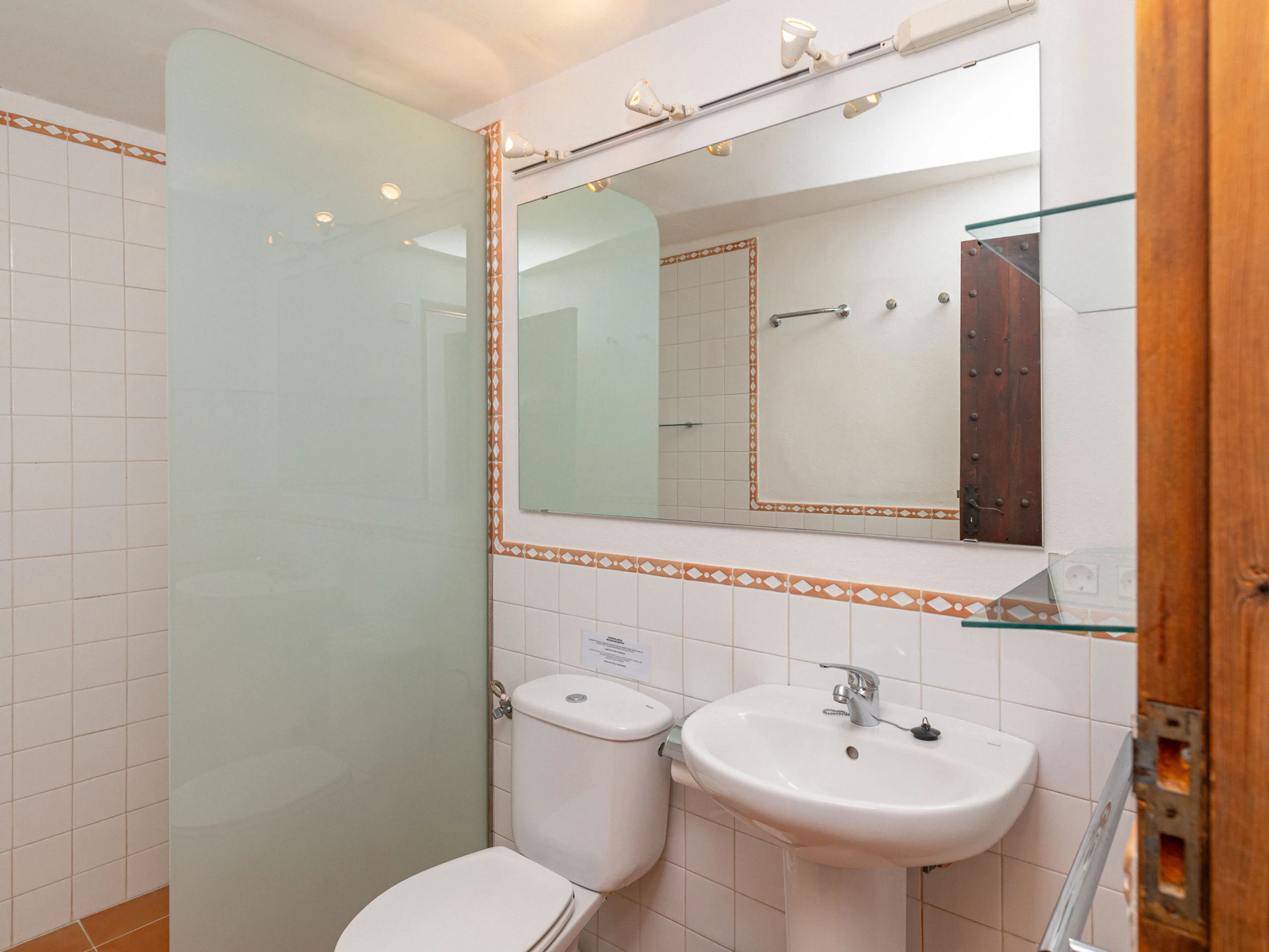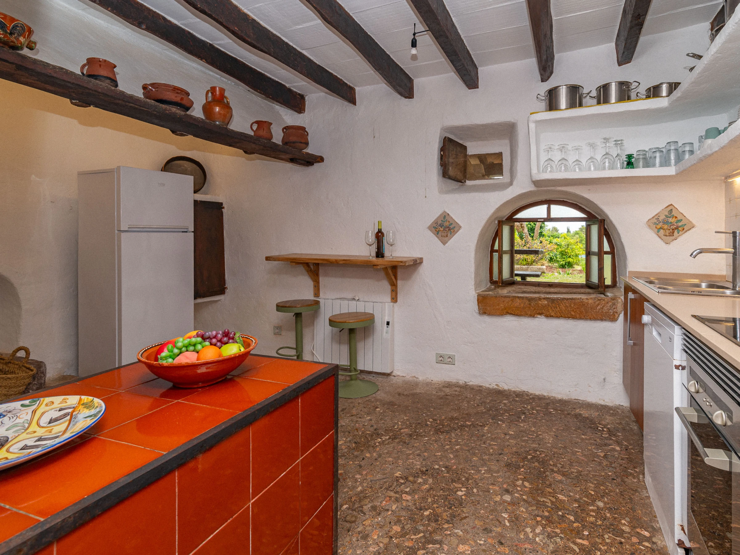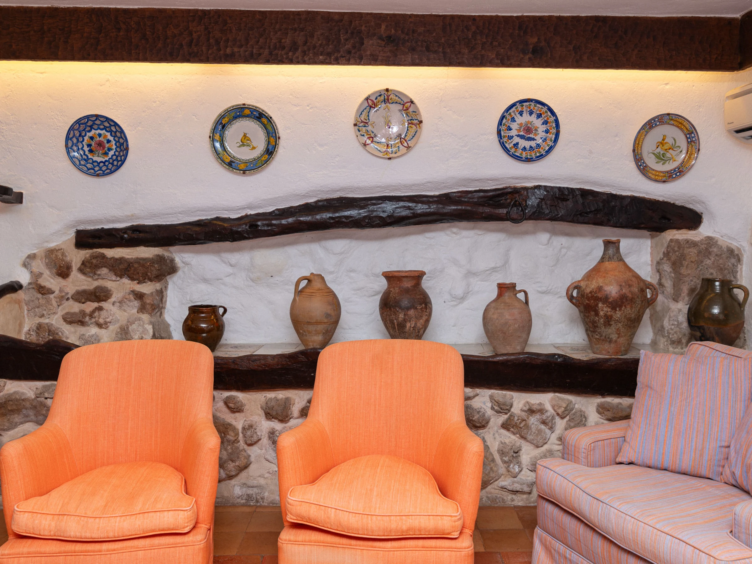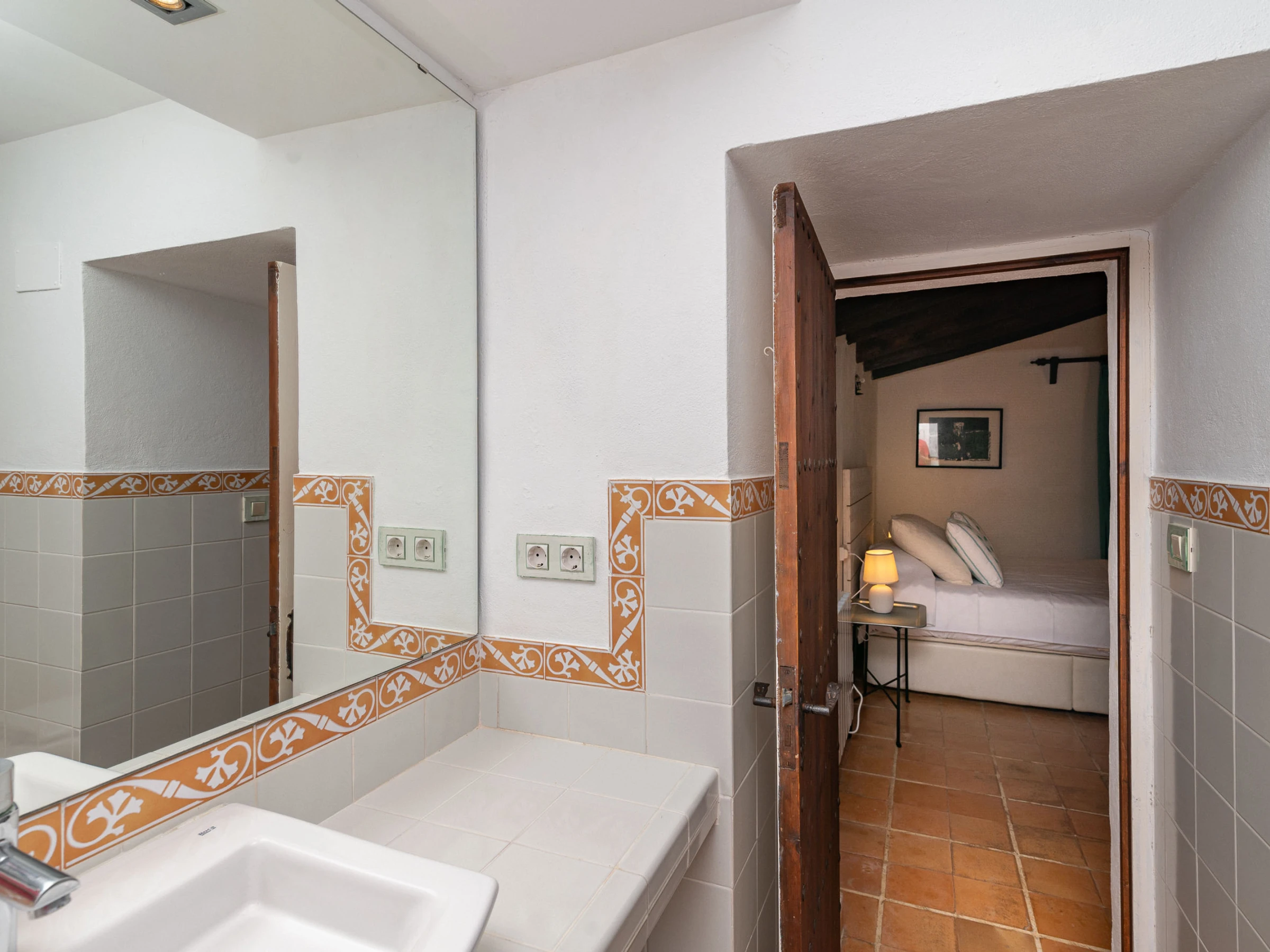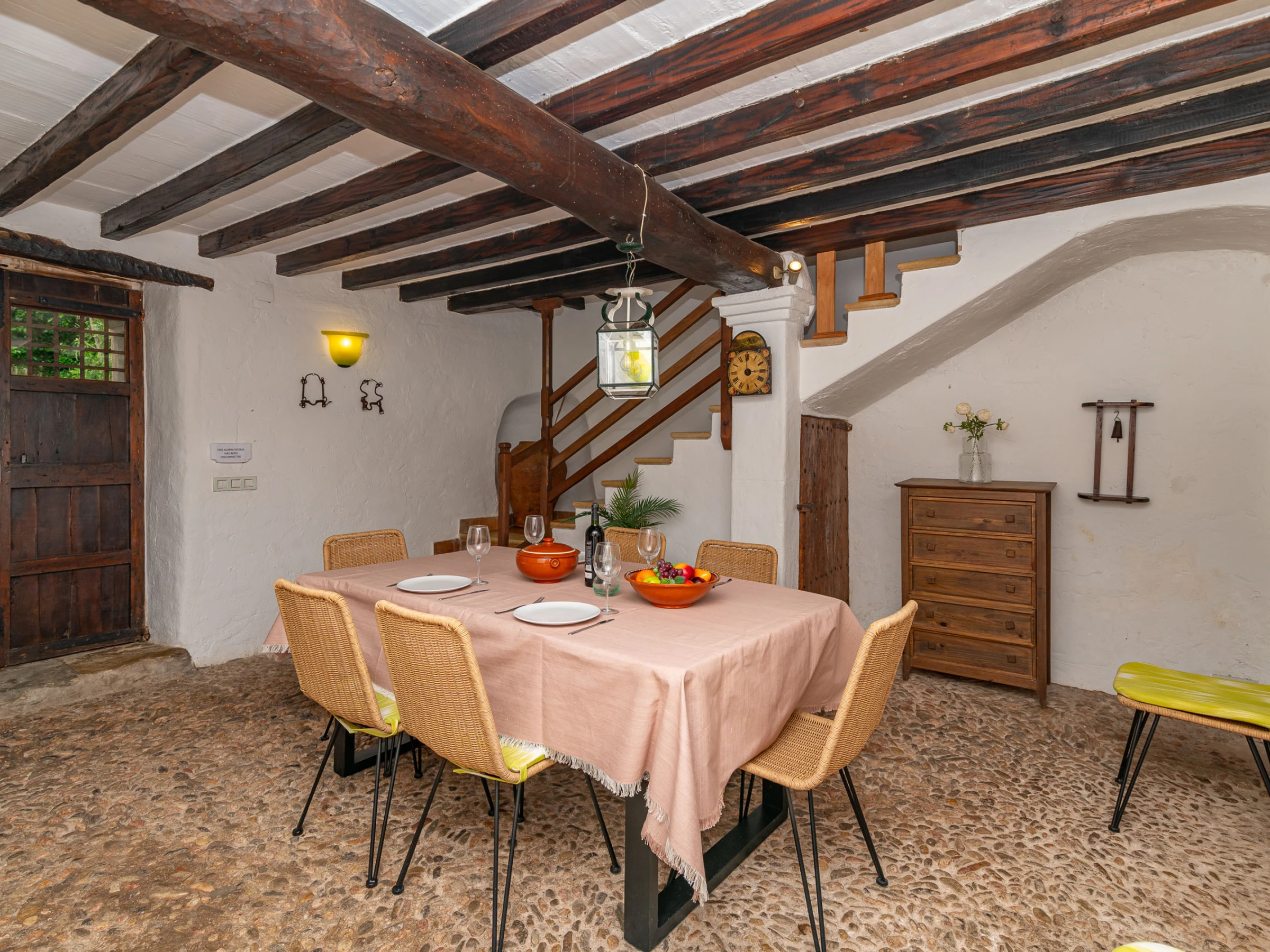 Im Freien gibt es eine überdachte Terrasse und eine charmante Poolzone, von der aus man wunderschöne Ausblicke auf die Umgebung genießen kann. Eine Rasenfläche und ein typischer Steininnenhof umgeben den Pool. Es ist ein wirklich idyllischer Ort, um sich zu entspannen oder das sanfte mallorquinische Klima in völliger Ruhe und Privatsphäre zu genießen.