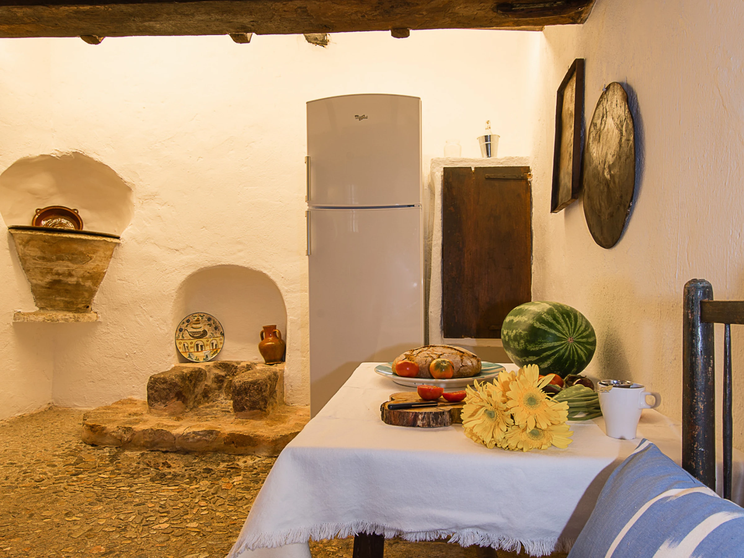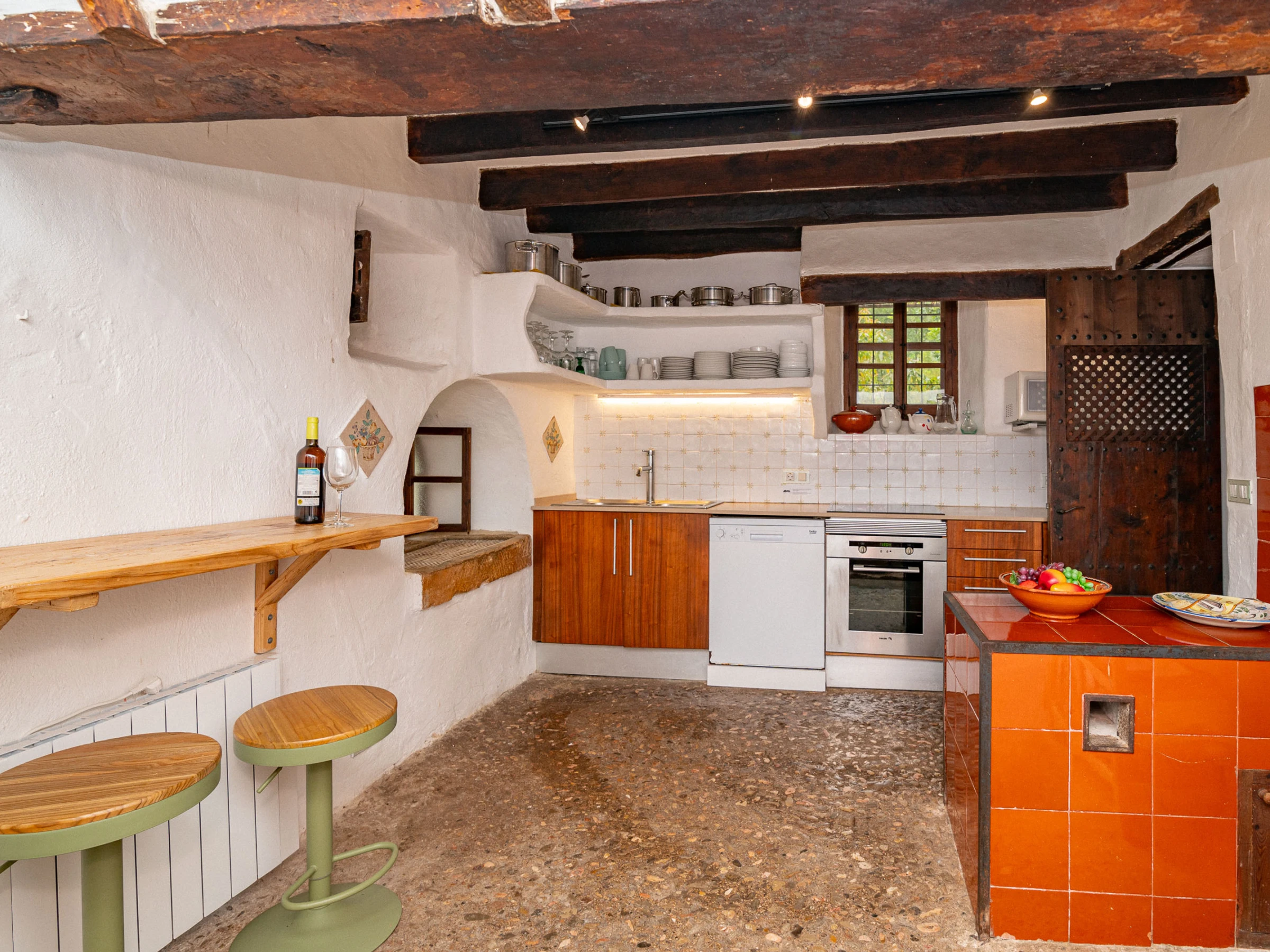 Ein kurzer Weg führt zum Eingang des Anwesens, der mit wunderschönen alten Holztüren erstrahlt. Das Wohnzimmer verfügt über ein gemütliches Sofa und Sessel, eine wunderbare Küche, die vollständig ausgestattet ist mit Geschirrspüler, Mikrowelle, Kühlschrank und Küchenutensilien, alles was man braucht.