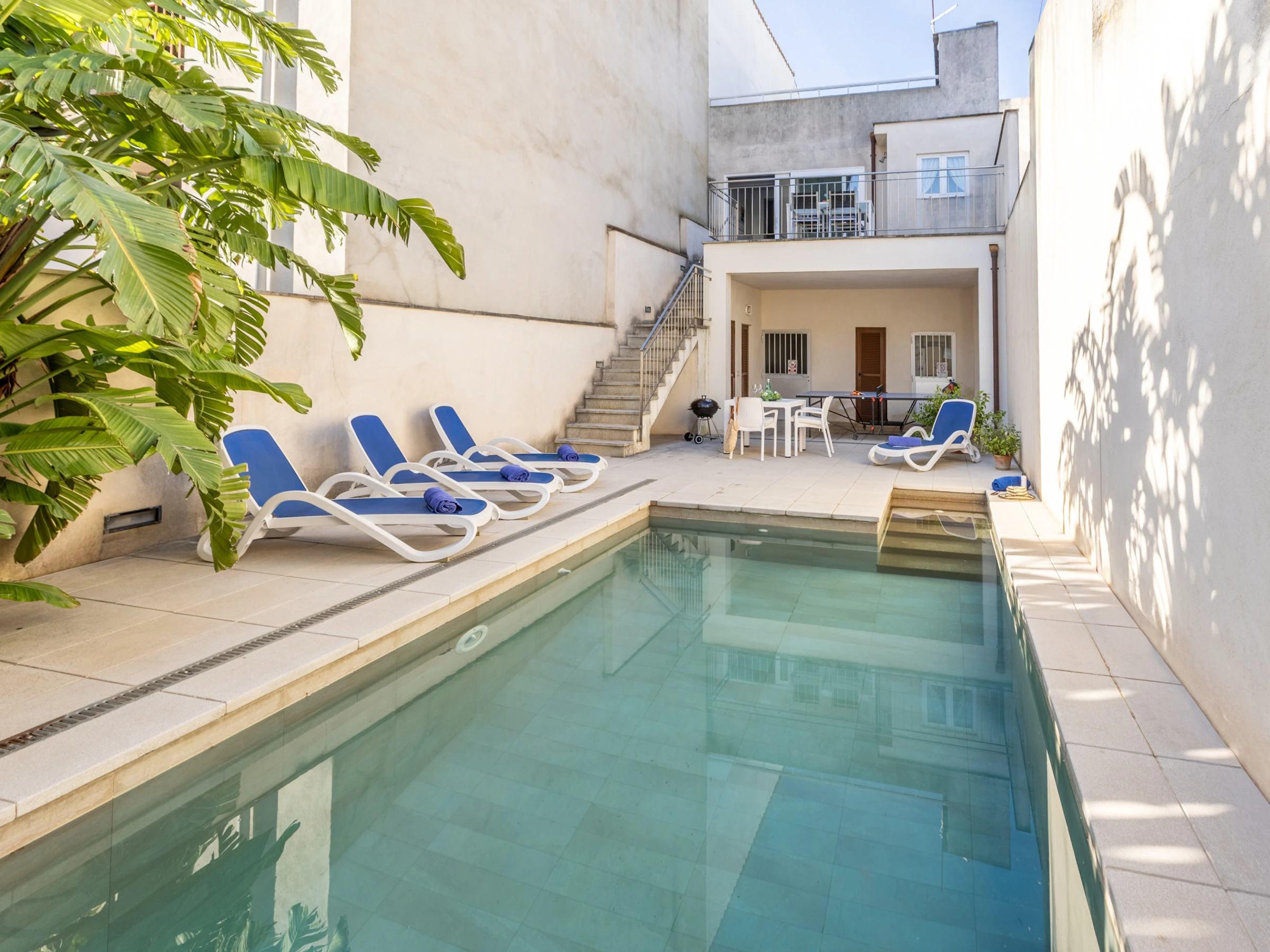 Ein Highlight der Immobilie ist ihr privater 3x5 Meter großer Swimmingpool, perfekt zum Abkühlen an heißen Sommertagen. Der Außenbereich bietet eine 20 Quadratmeter große Terrasse mit Gartenmöbeln und Grill.
