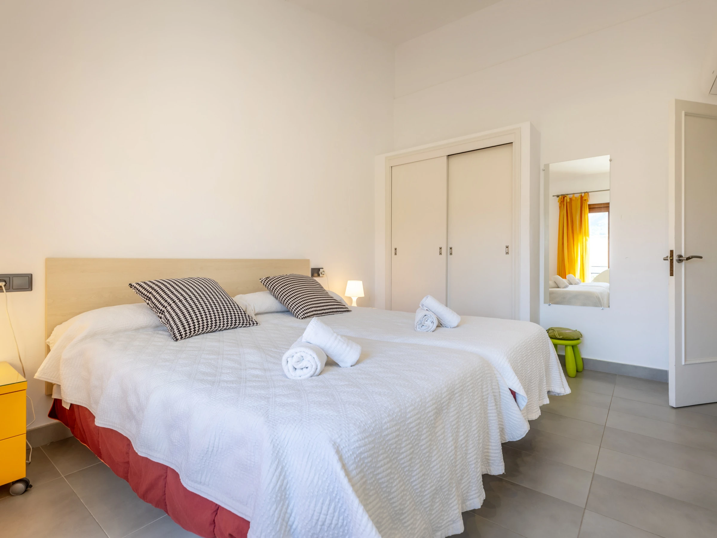 Das Haus verfügt über zwei Schlafzimmer, die bis zu 4 Personen bequem beherbergen können. Es gibt ein Doppelbett und zwei Einzelbetten, ideal für kleine Familien oder kleine Gruppen. Das Innere ist mit Klimaanlage und Heizpumpe ausgestattet, um maximalen Komfort zu jeder Jahreszeit zu gewährleisten.