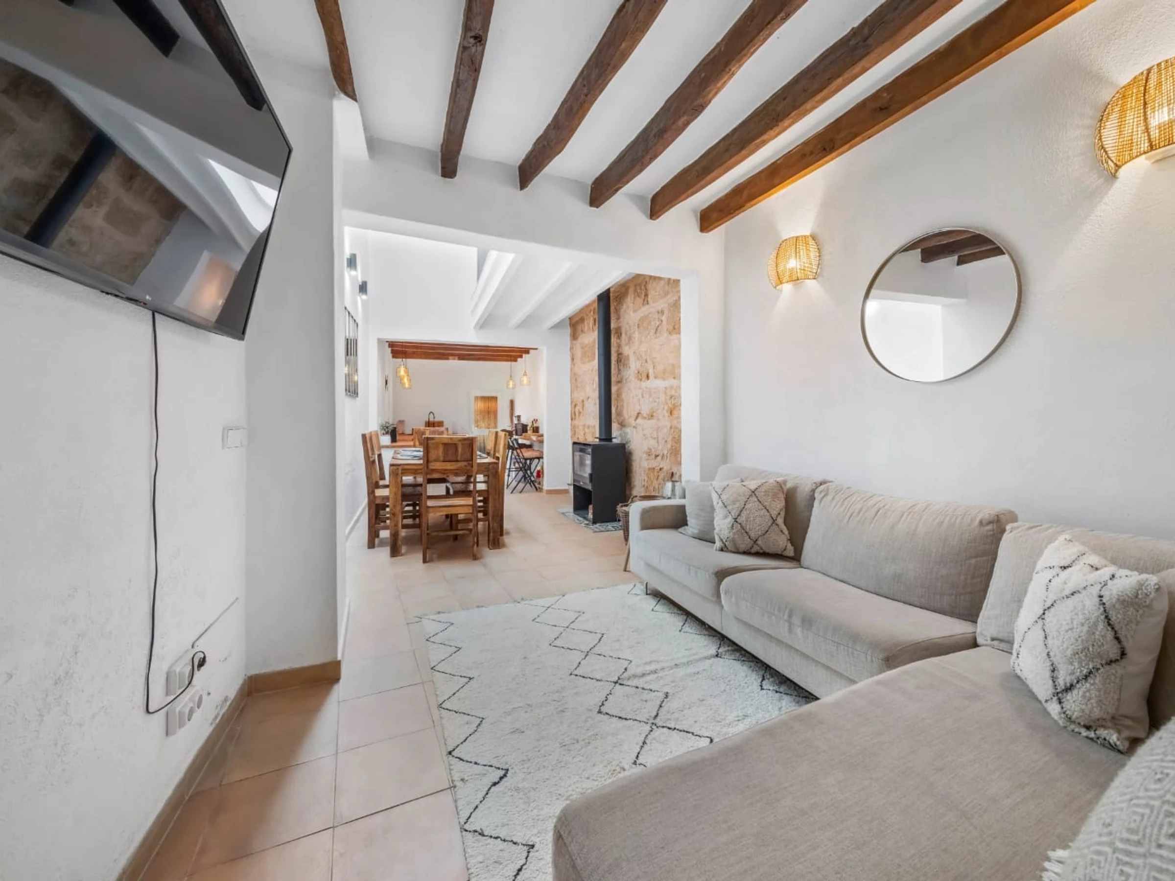 Gelegen im Herzen von Pollença, verbindet dieses Ferienhaus perfekt die Authentizität der mallorquinischen Architektur mit einem sorgfältig renovierten, rustikal-modernen Design. Mit traditionellen Steinmauern, Holzbalkendecken und elegantem Interieur ist diese Immobilie ideal für alle, die einen Aufenthalt mit Charakter und Komfort auf Mallorca suchen.