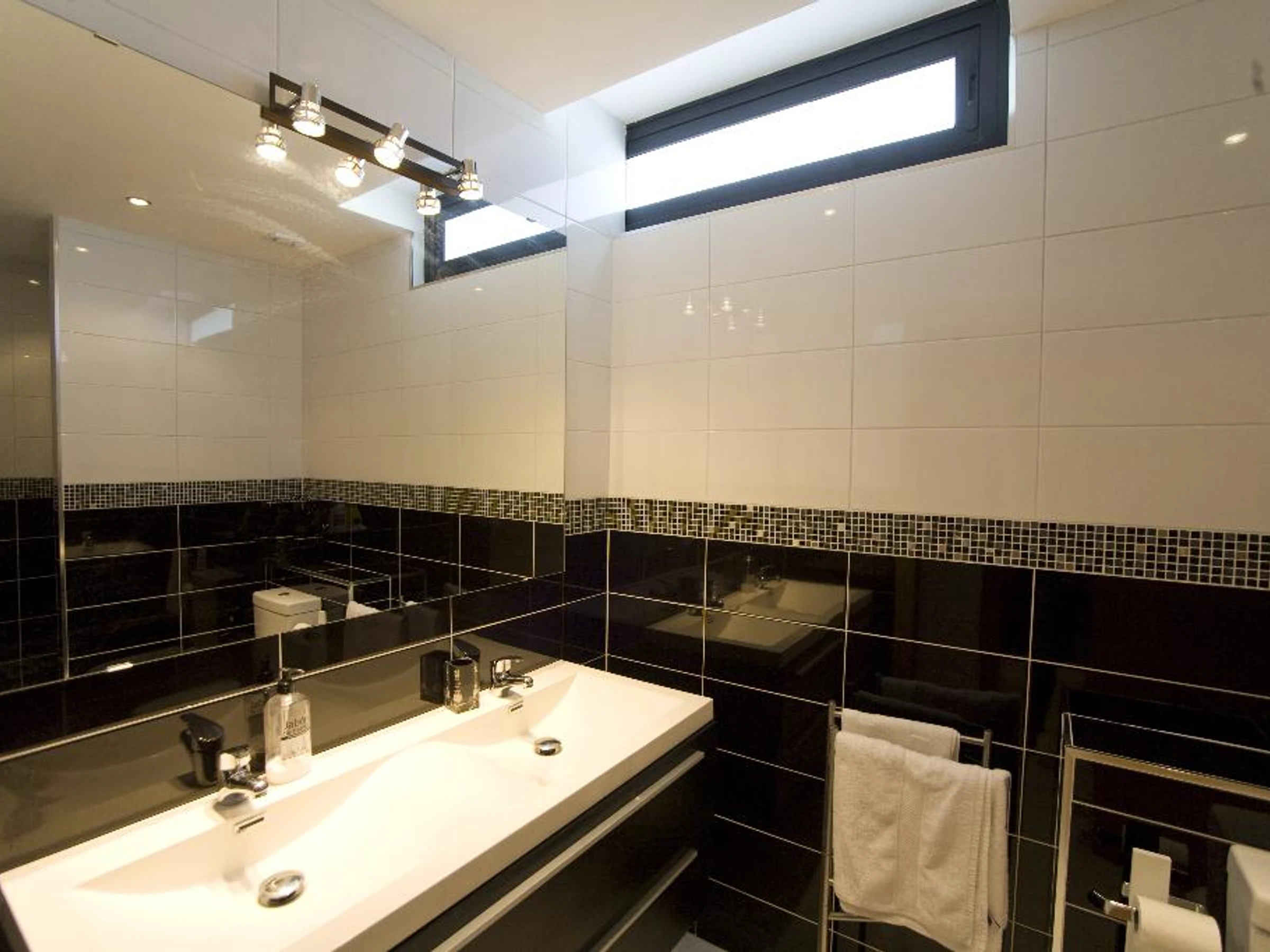 * ensuite Badezimmer mit Doppelwaschbecken, Dusche und Wasserklosett