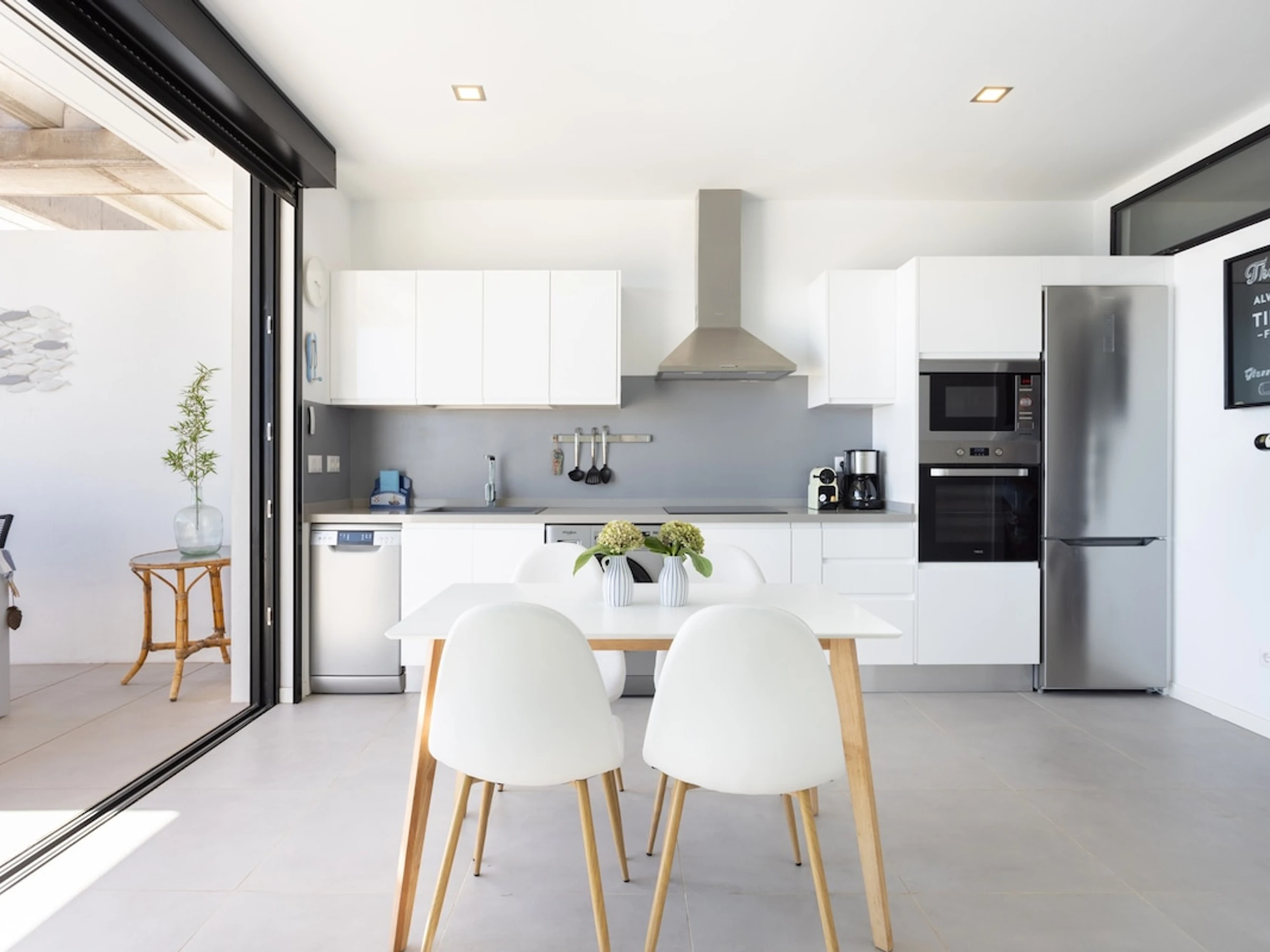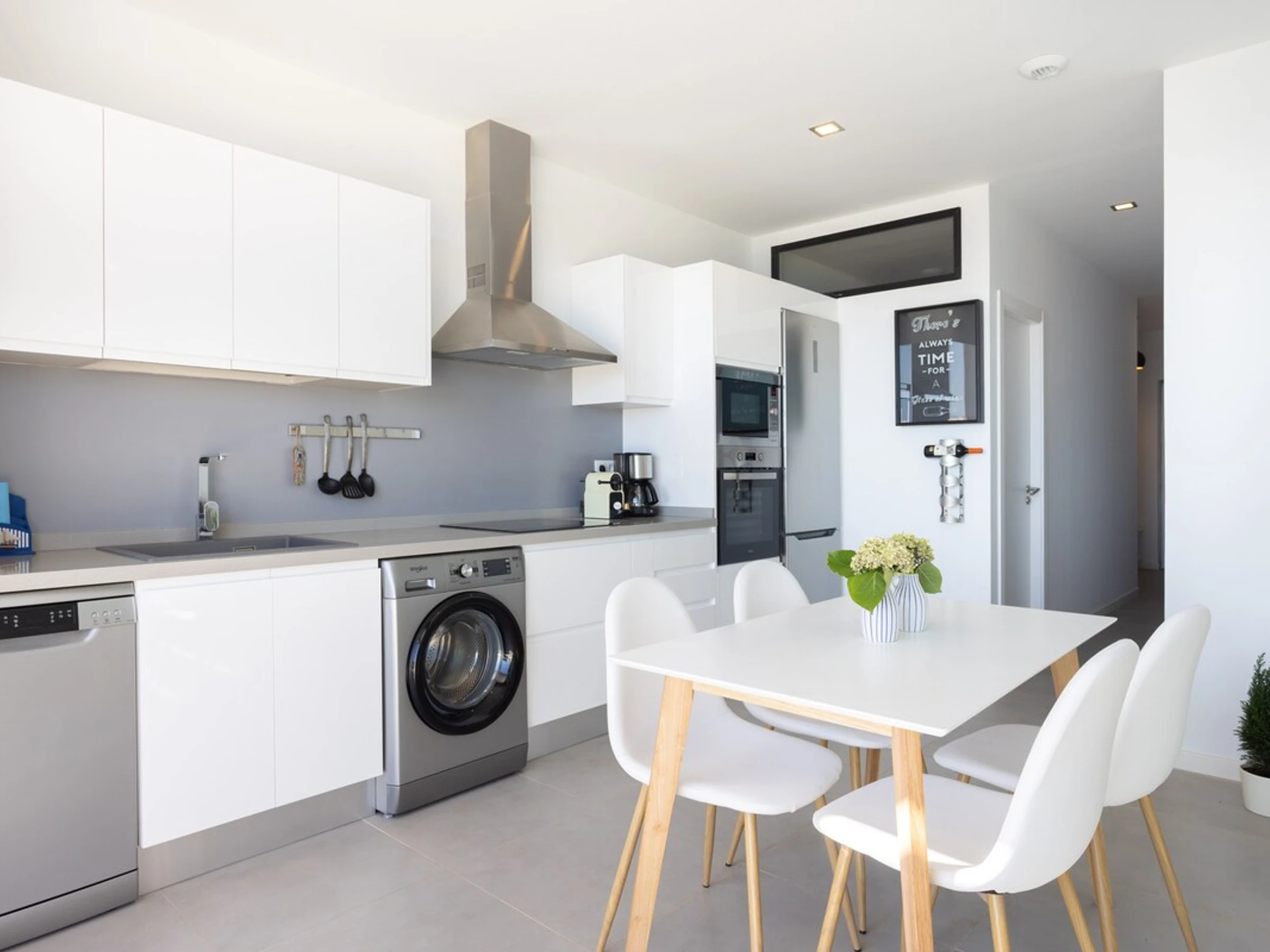 Dieses küche, ist ausgestattet in mikrowelle, backofen, spülmaschine, kochutensilien und kaffeemaschine.