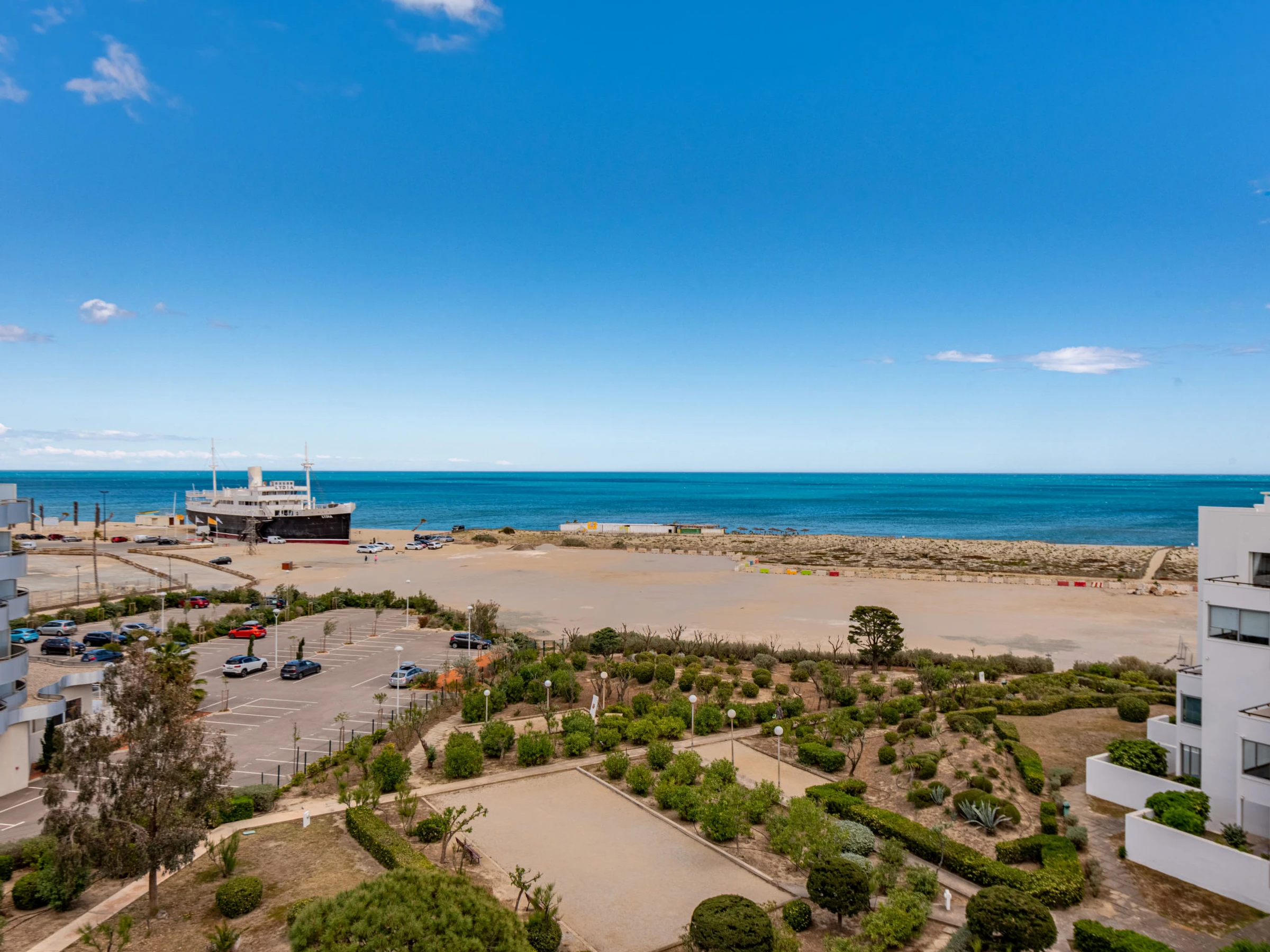 Residenz "Le Grand Pavois", auf 6 Stockwerken. Im Ortsteil la Grande Plage, 250 m vom Meer, 100 m vom Strand. In der Anlage: Fahrstuhl. Parkplatz Nr. 123. Einkaufsgeschäft 1 km, Supermarkt 5 km, Restaurant 1 km, Bäckerei 1 km, Café 500 m, Fahrradverleih 3 km, Bushaltestelle "Roussillon" 550 m, Bahnstation "Perpignan" 22 km, Sandstrand "le barcares" 100 m, Tauchzentrum 5 km, Freibad 7 km, FKK - Strand 10 km. Segelschule 3 km, Tennis 3 km, Minigolf 3 km, Reitstall 12 km, Radweg 6 km. Nahe gelegene Sehenswürdigkeiten: Aqualand Port Leucate 7 km, Réserve Africaine de Sigean 41 km, Forteresse de Salses 20 km, téléski nautique 3 km, Spot de windsurf 3 km, Cinéma 5 km. Bekannte Seen in der Umgebung sind gut erreichbar: Etang de Leucate ou de Salses 950 m, Lac de Villeneuve de la Raho 28 km. Wandergebiete: Sentier du guetteur 8 km, La forteresse de salses 15 km, Sentier du littoral Collioure 40 km. Bitte beachten: Fahrzeug empfohlen. Die Schlüsselübergabe findet bei der Agentur in Barcarès statt, 2 km. Autobahn 18 km vom Haus. Flugplatz 20 km vom Haus.