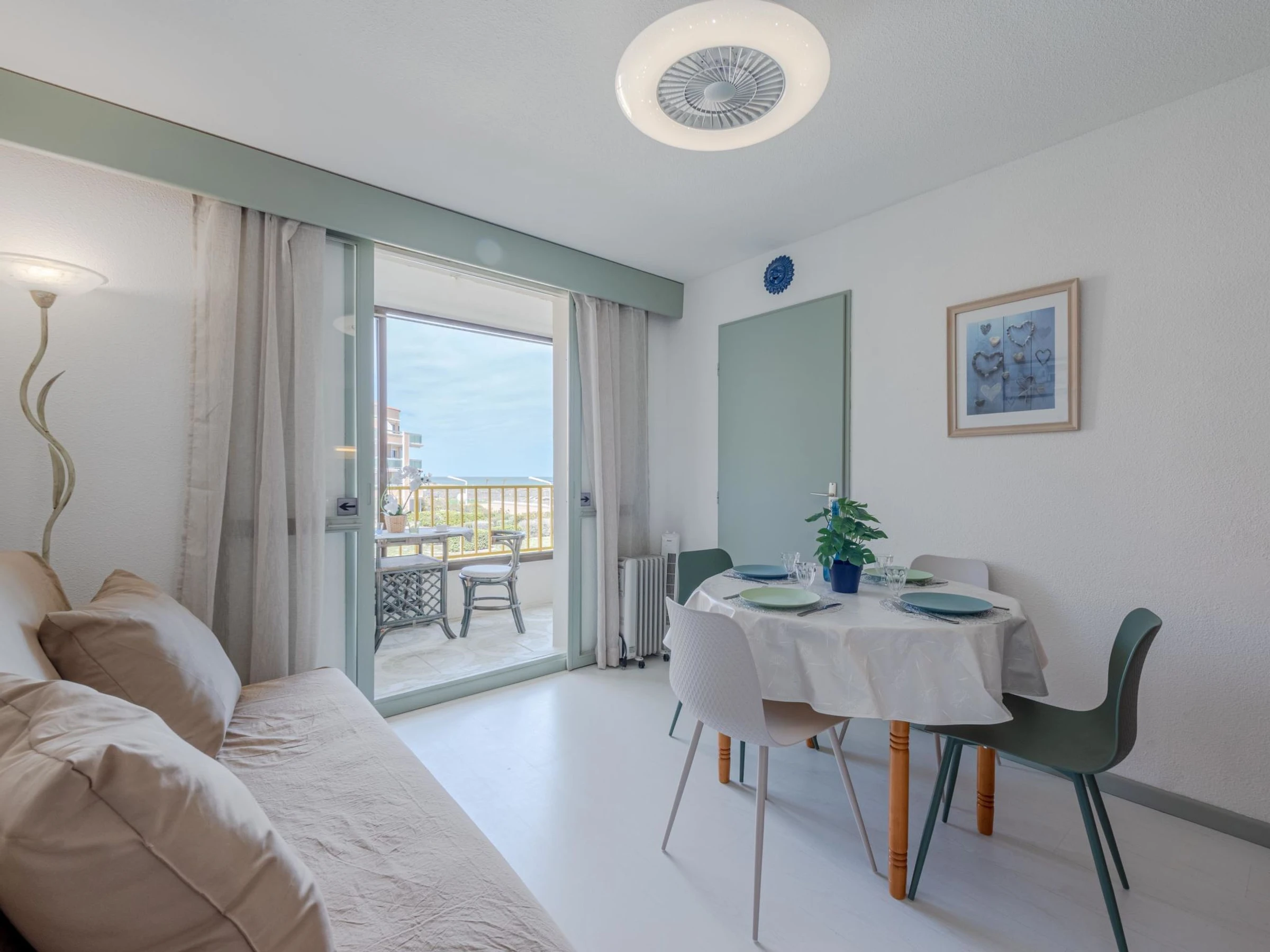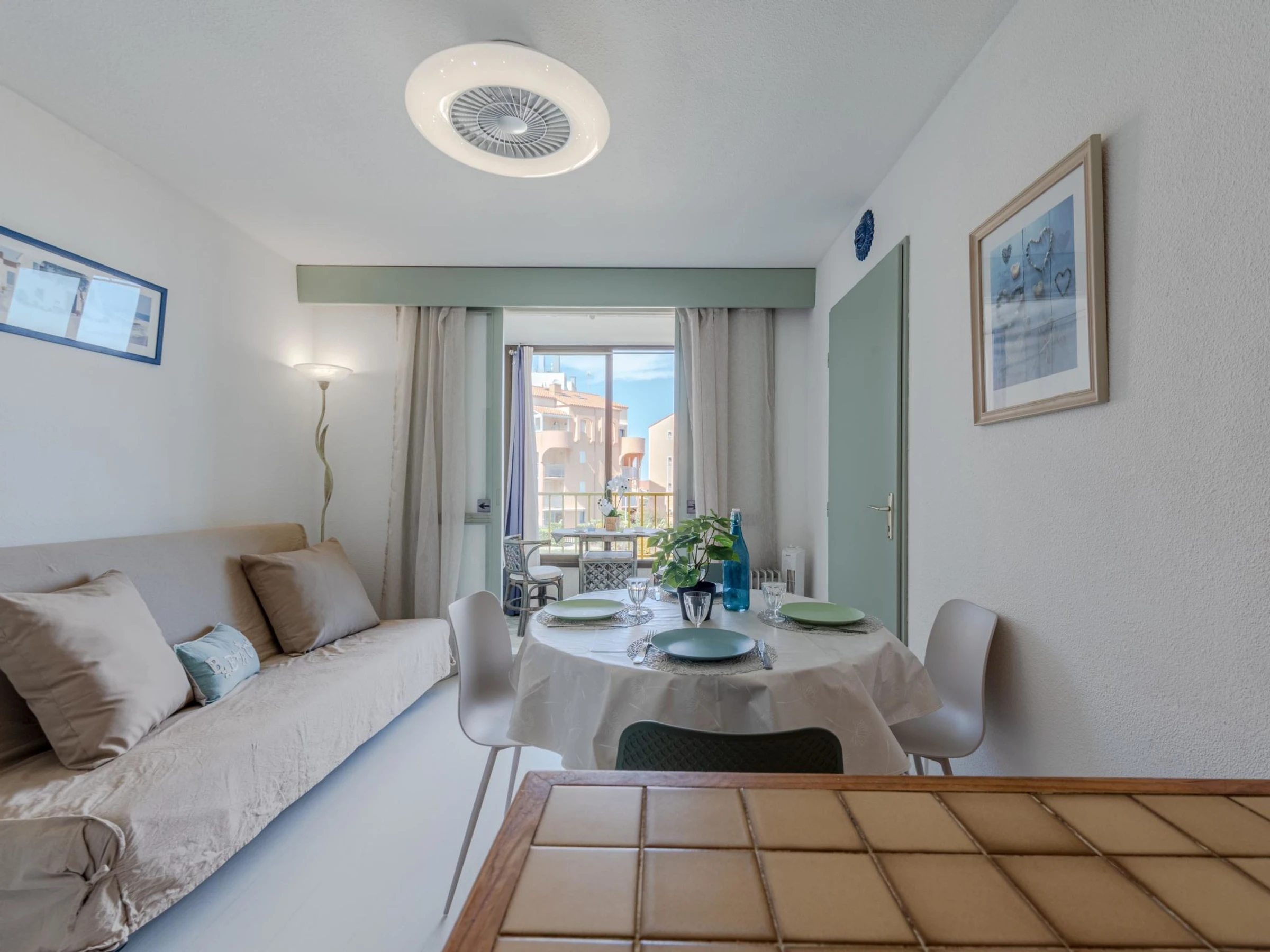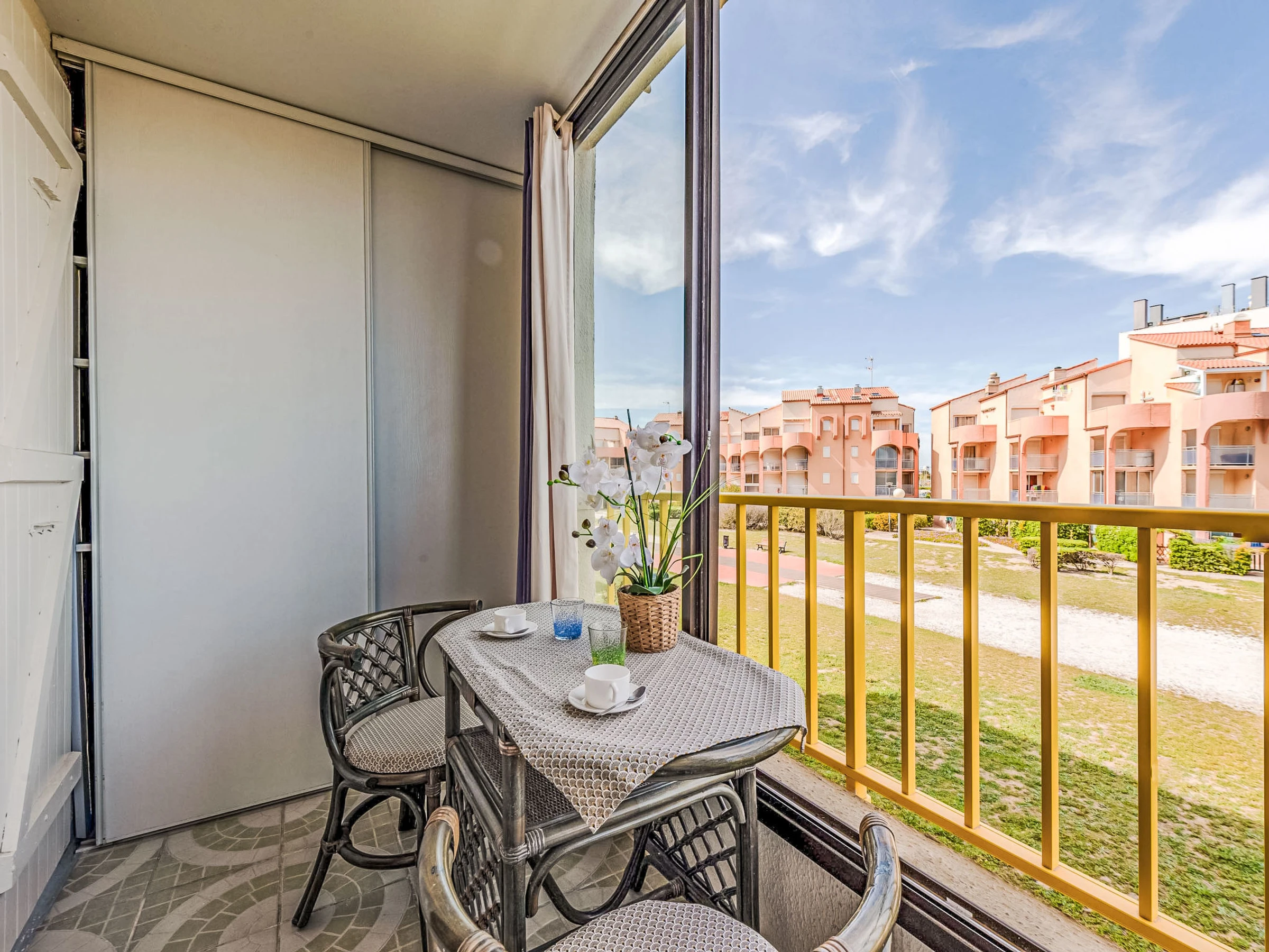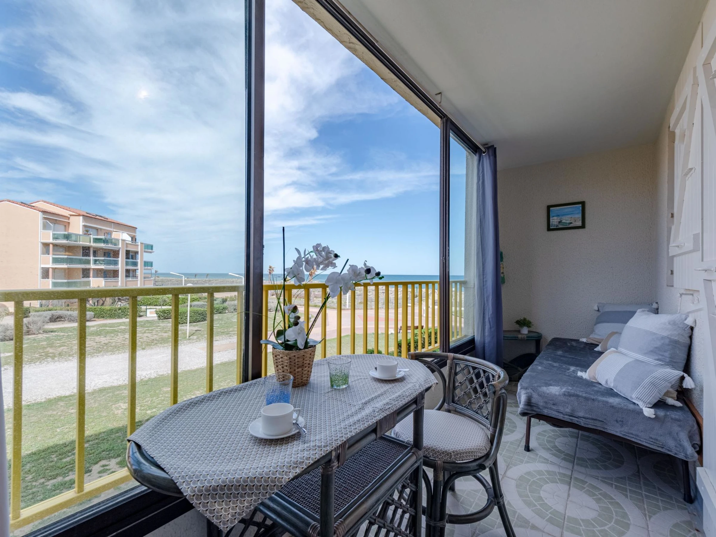 Residenz "Palm Beach", auf 3 Stockwerken. 300 Wohnungen in der Residenz. Im Ortsteil La Grande Plage, 100 m vom Meer, 100 m vom Strand. Öffentliche Parkplätze 150 m. Einkaufsgeschäft, Lebensmittelgeschäft, Einkaufszentrum, Restaurant, Bar, Café, Fahrradverleih 150 m, Bushaltestelle "Les Marines" 650 m, Bahnstation "de la Franqui" 15 km. Sporthafen 4 km. Nahe gelegene Sehenswürdigkeiten: Aqualand Port Leucate 2 km, Réserve Africaine de Sigean 41 km, site des dosses 4 km, téléski nautique 5 km. Bekannte Seen in der Umgebung sind gut erreichbar: Etang de Leucate ou salses 8 km, Lac de Villeneuve de la Raho 28 km. Wandergebiete: Sentier du guetteur 8 km, la forteresse de salses 15 km, Sentier du littoral Collioure 40 km. Bitte beachten: Weitere Unterkünfte sind buchbar.