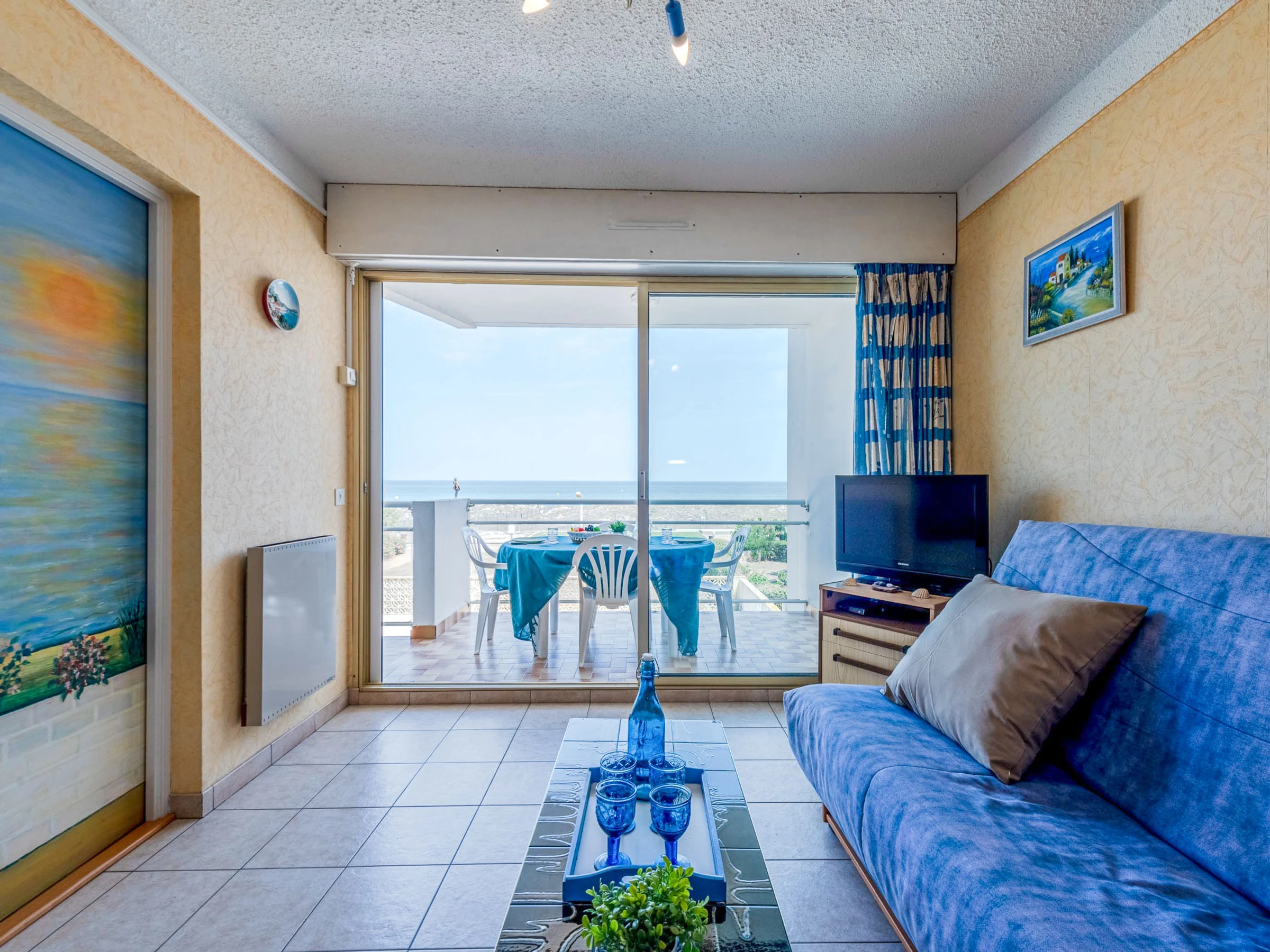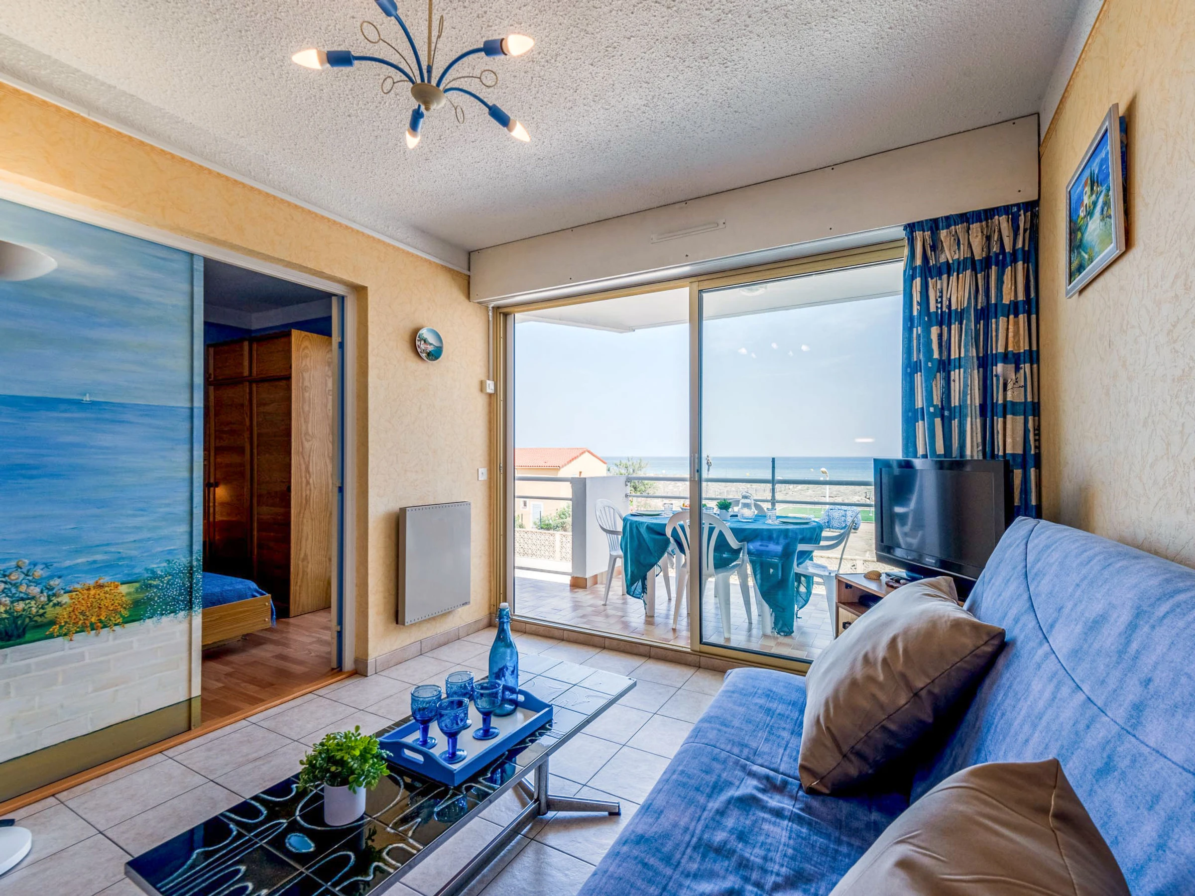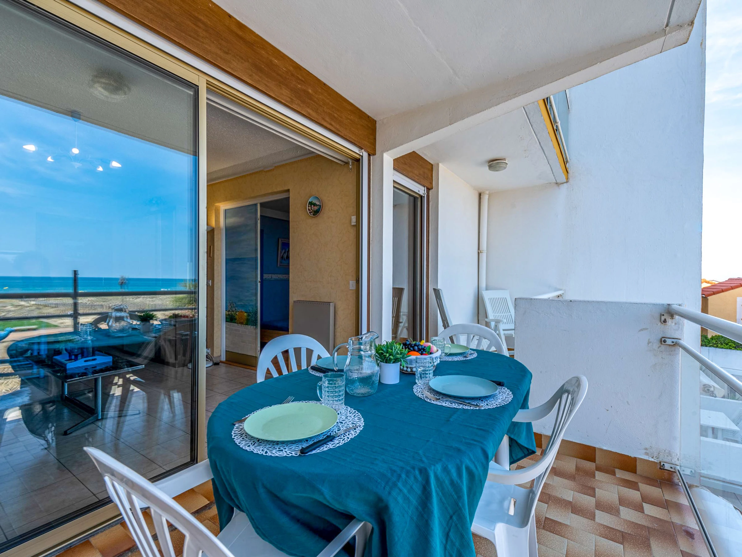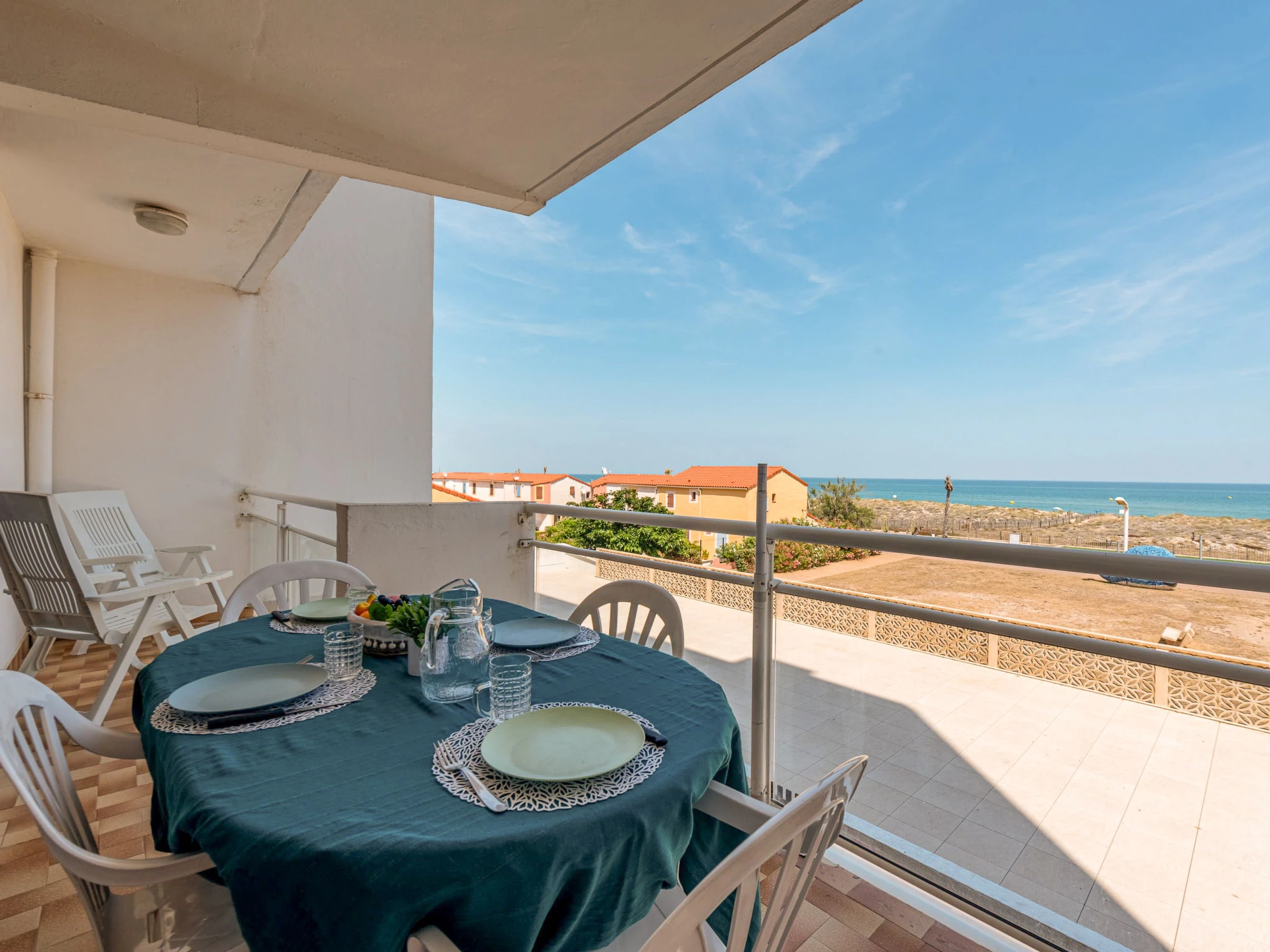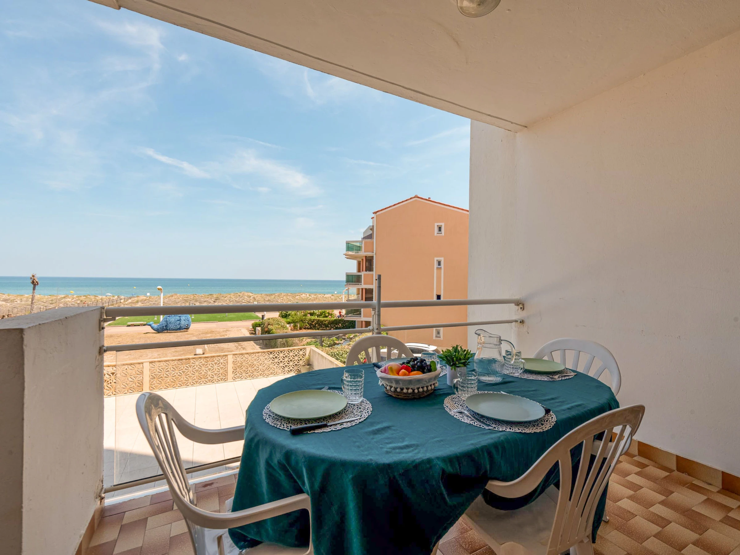 Residenz "Amphitrite". Im Ortsteil la Grande Plage, 50 m vom Meer, 30 m vom Strand, direkter Zugang zum Strand. In der Anlage: Fahrstuhl. Parkplatz. Einkaufsgeschäft, Restaurant [hidden] m, Bushaltestelle "Les Naïades" [hidden] m, Bahnstation "La Franqui" 15 m, Sandstrand 50 m. Nahe gelegene Sehenswürdigkeiten: Réserve africaine de Sigean 41 km, Aqualand Port Leucate [hidden] m, casino [hidden] m, parcours aventure 2 km, cinema [hidden] m, site des dosses 4 km. Bekannte Seen in der Umgebung sind gut erreichbar: Lac de Villeneuve de la Raho 28 km, Etang de Leucate ou salses 11 km. Wandergebiete: Sentier du guetteur 8 km, la forteresse de salses 15 km, Sentier du littoral Collioure 40 km.