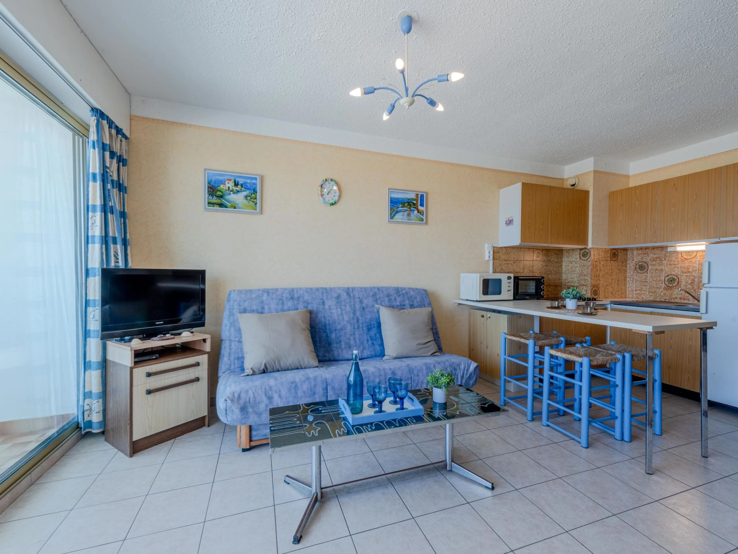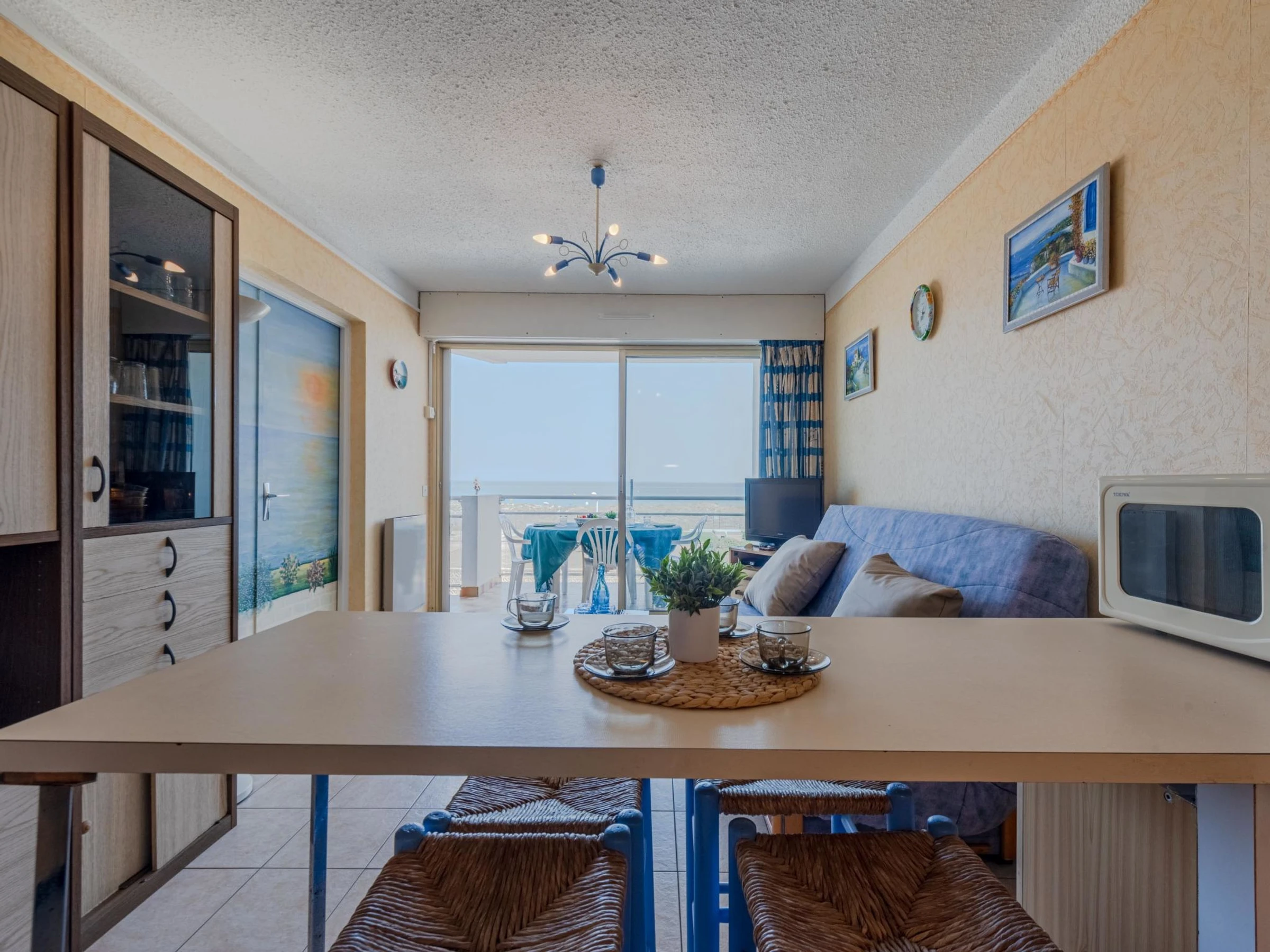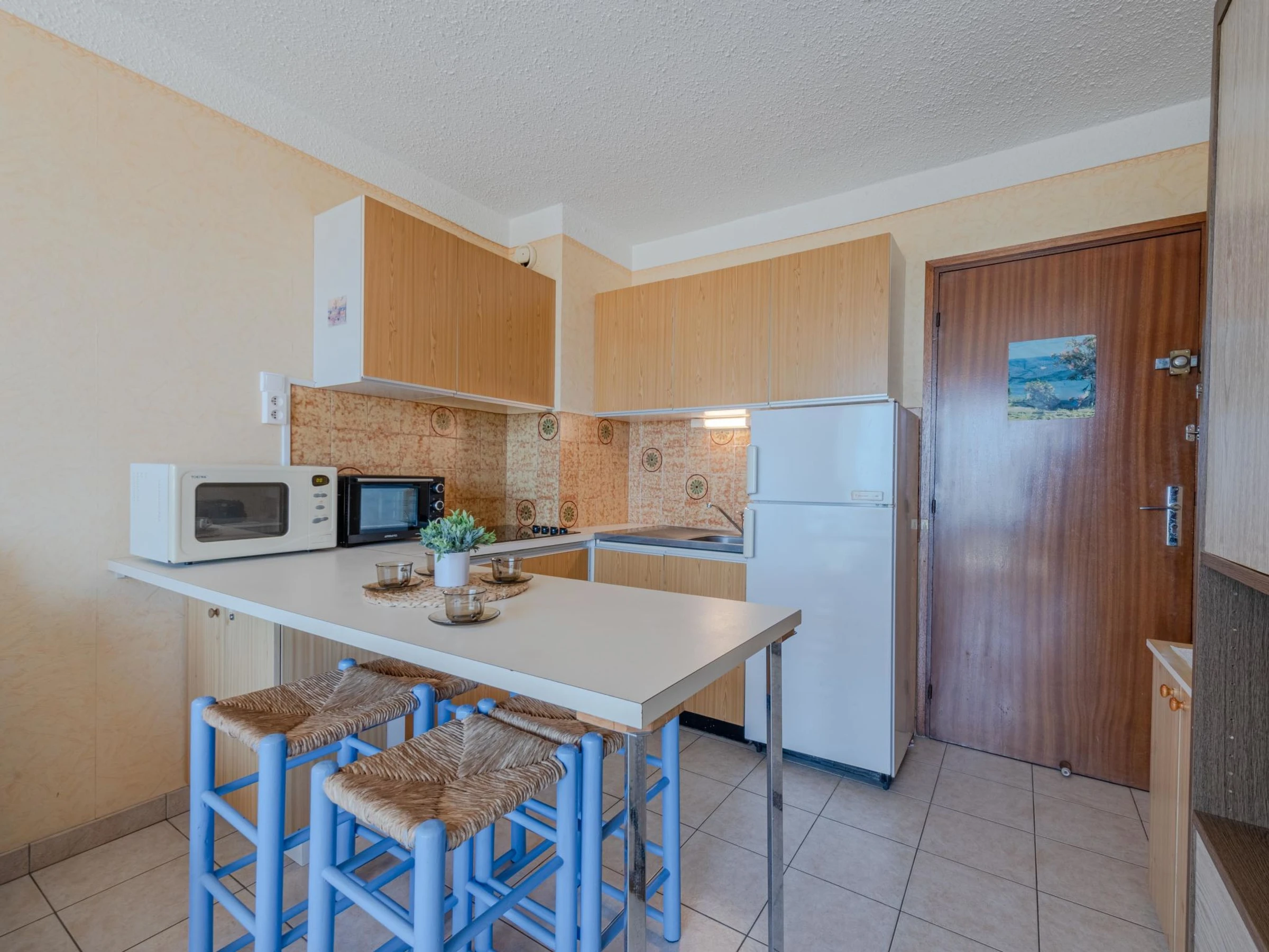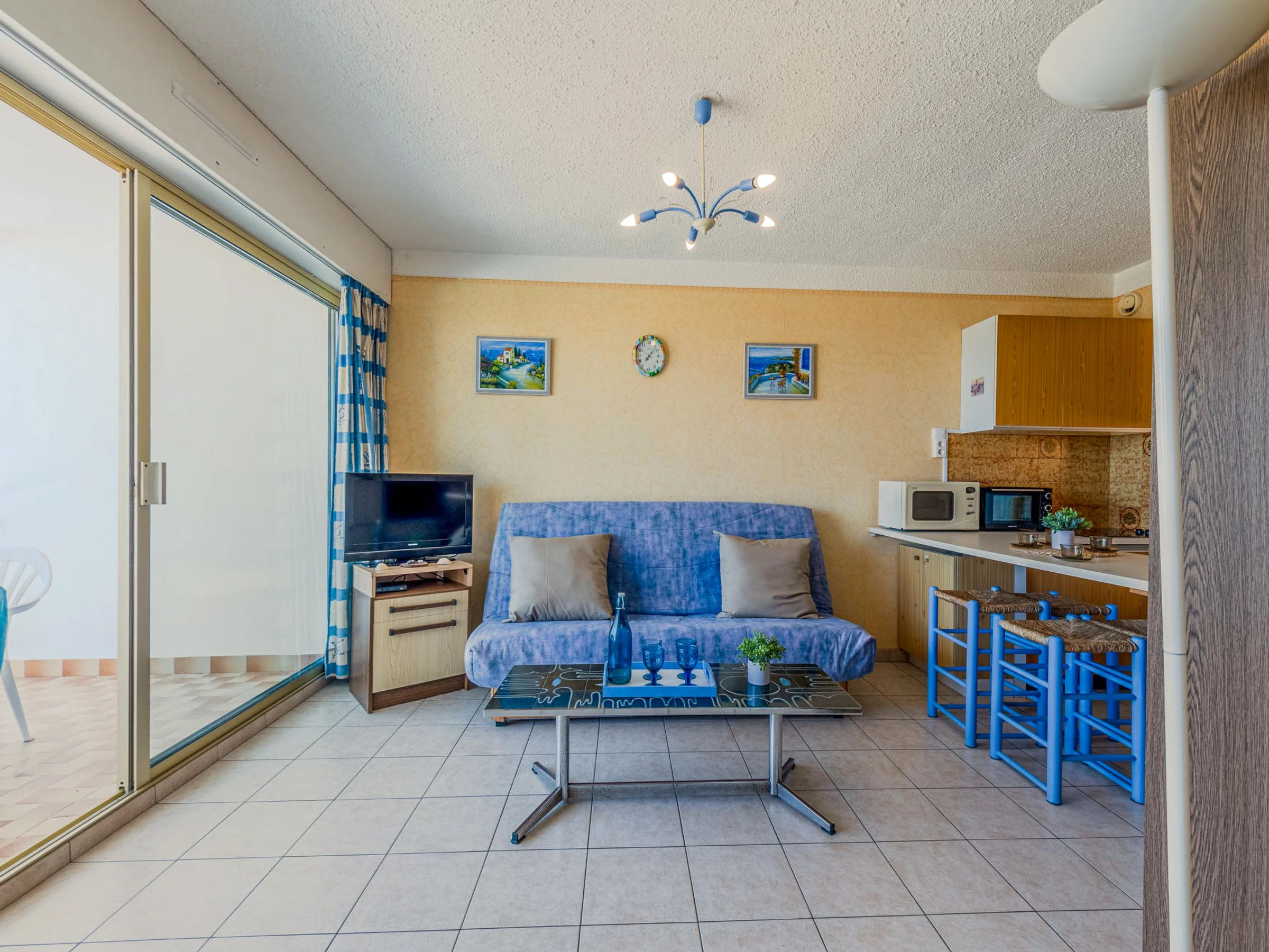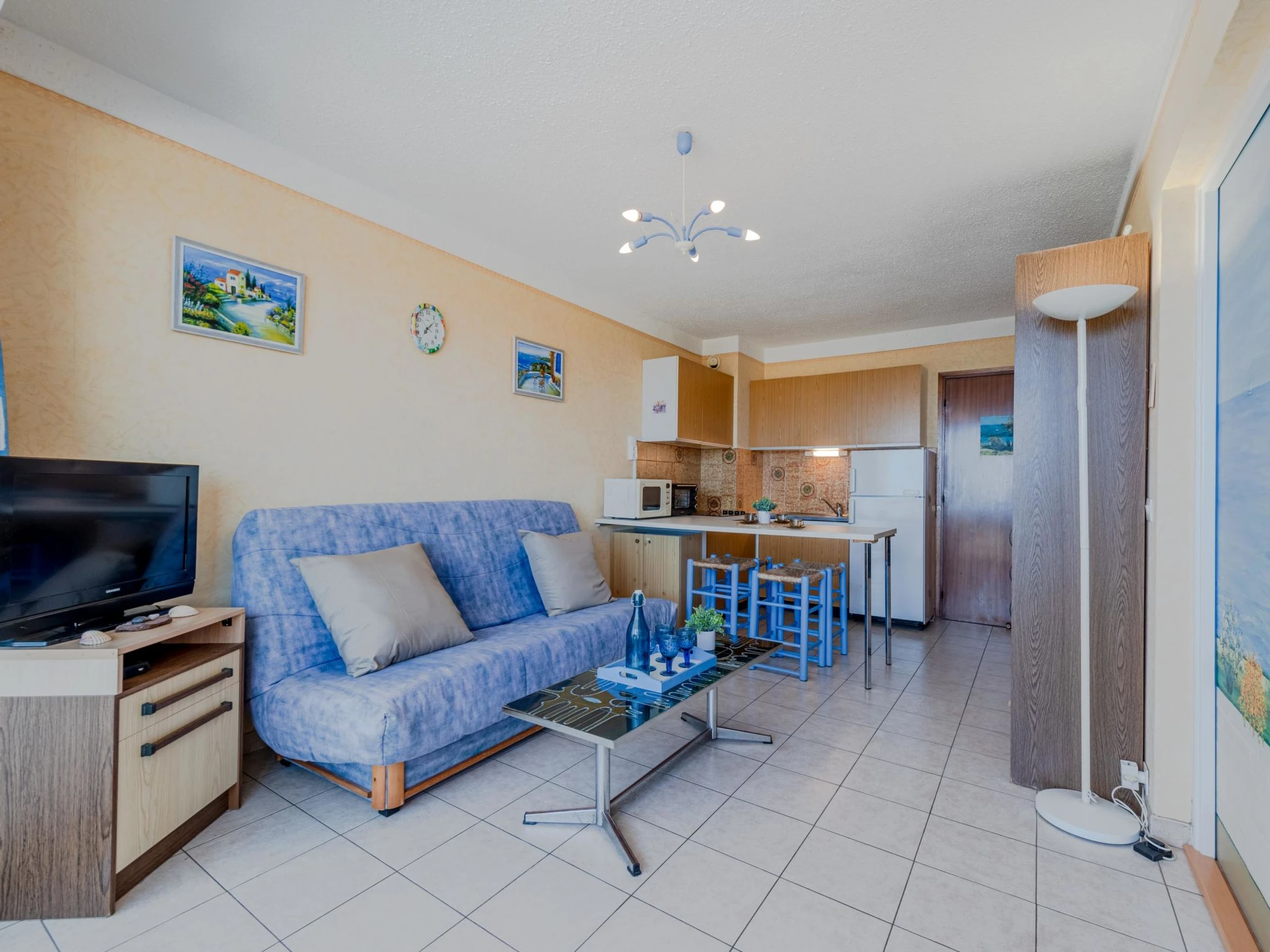 Residenz "Amphitrite". Im Ortsteil la Grande Plage, 50 m vom Meer, 30 m vom Strand, direkter Zugang zum Strand. In der Anlage: Fahrstuhl. Parkplatz. Einkaufsgeschäft, Restaurant [hidden] m, Bushaltestelle "Les Naïades" [hidden] m, Bahnstation "La Franqui" 15 m, Sandstrand 50 m. Nahe gelegene Sehenswürdigkeiten: Réserve africaine de Sigean 41 km, Aqualand Port Leucate [hidden] m, casino [hidden] m, parcours aventure 2 km, cinema [hidden] m, site des dosses 4 km. Bekannte Seen in der Umgebung sind gut erreichbar: Lac de Villeneuve de la Raho 28 km, Etang de Leucate ou salses 11 km. Wandergebiete: Sentier du guetteur 8 km, la forteresse de salses 15 km, Sentier du littoral Collioure 40 km.