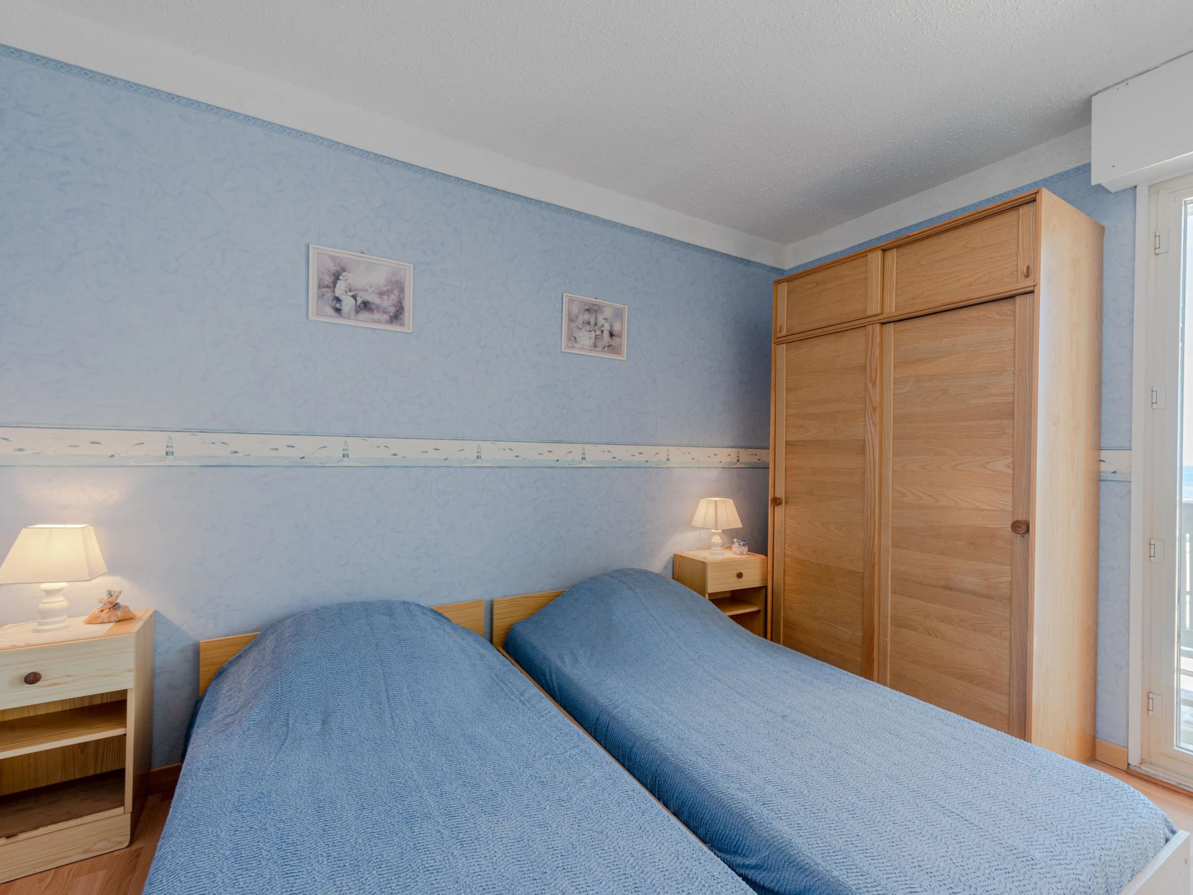 2-Zimmer-Wohnung 35 m2 im 1. Stock, Ostlage. Wohn-/Esszimmer mit 1 Doppeldiwanbett ([hidden] cm), TV. Ausgang zum Balkon. 1 Zimmer mit 2 Betten (90 cm). Ausgang zum Balkon. Kochnische (4 Kochplatten, Mini-Backofen, Mikrowelle, Tiefkühler). Bad, sep. WC. E-Heizung. Terrassenmöbel. Sicht auf das Meer. Zur Verfügung: Haartrockner. Internet (Wireless LAN, extra). Parkplatz. Bitte beachten: Rauchmelder.