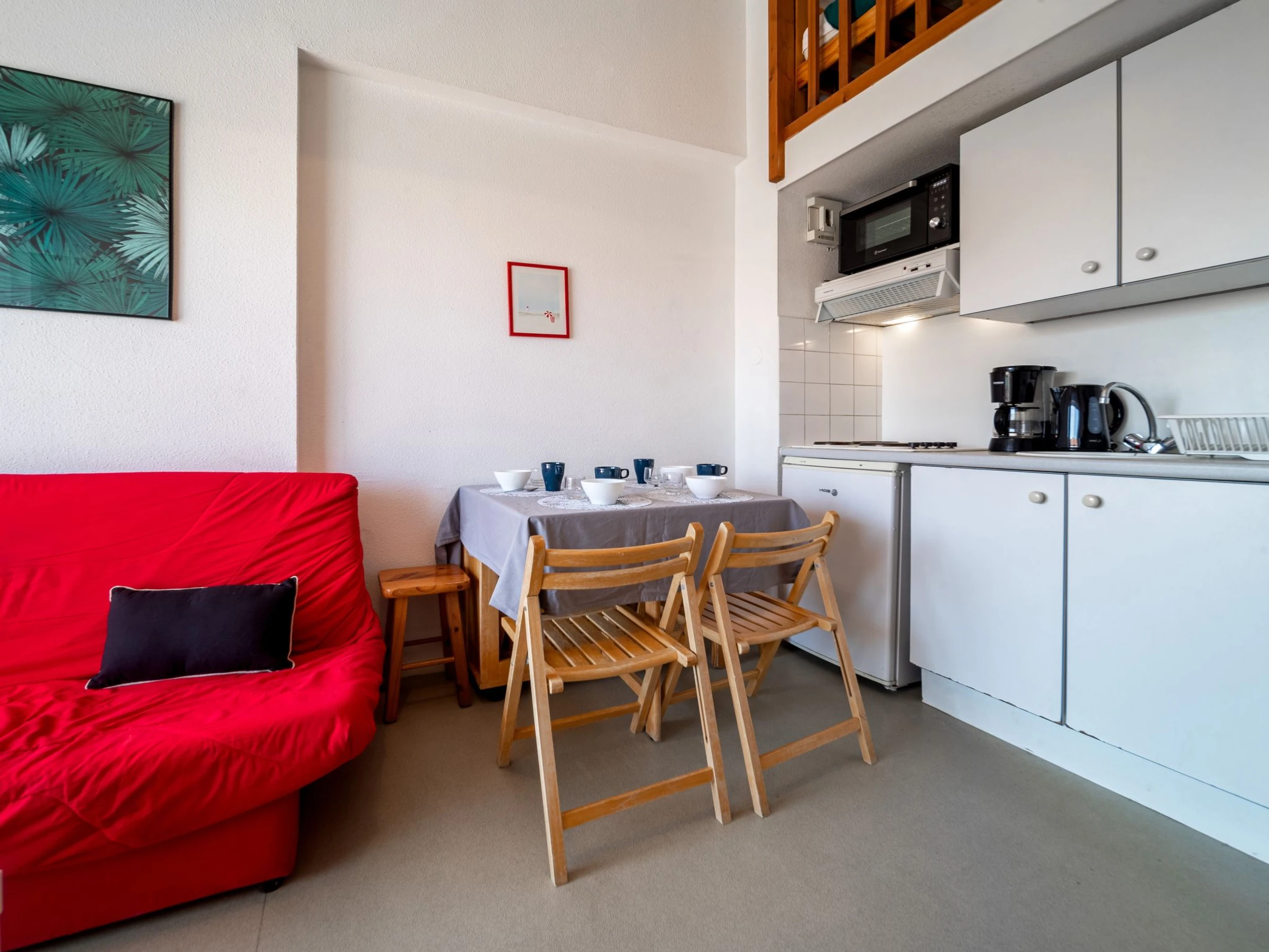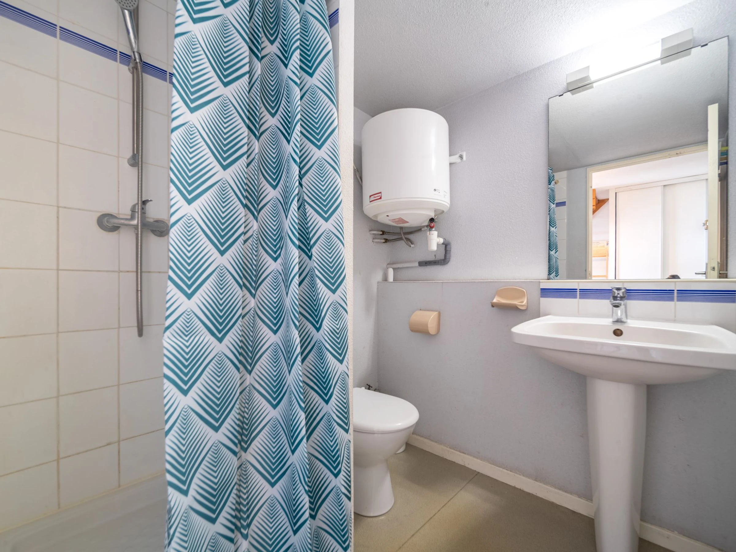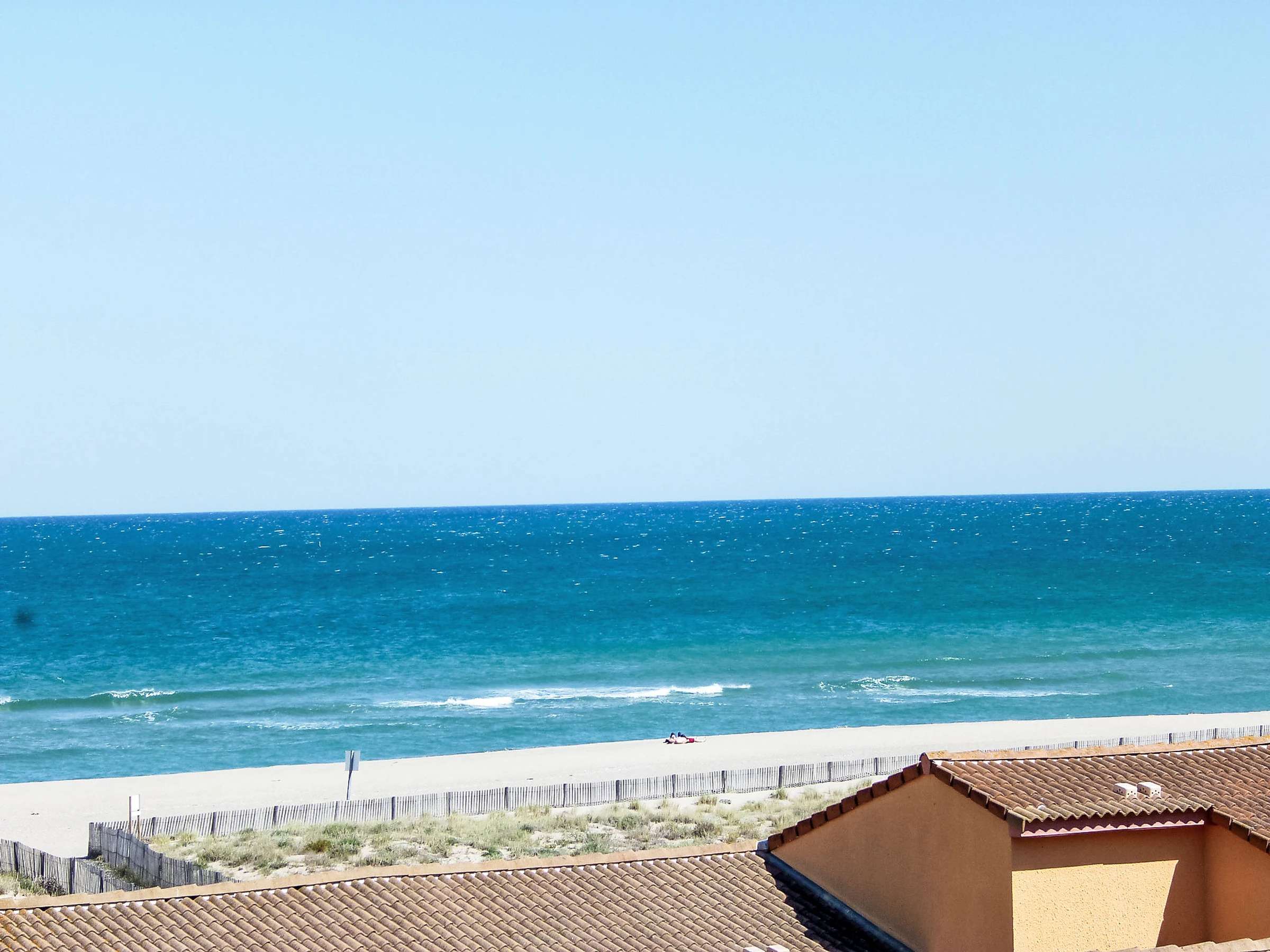 Residenz "Les Flots Bleus". Im Ortsteil de la Grande Plage, 80 m vom Meer, 50 m vom Strand, direkter Zugang zum Strand. Einkaufszentrum, Restaurant 400 m, Bushaltestelle "Les Naïades" 200 m, Bahnstation "La Franqui" 15 m. Nahe gelegene Sehenswürdigkeiten: Aqualand Port Leucate 7 km, Réserve Africaine de Sigean 41 km, Casino 500 m, site des dosses, téléski nautique. Bekannte Seen in der Umgebung sind gut erreichbar: Etang de Leucate ou salses 11 km, Lac de Villeneuve de la Raho 28 km. Wandergebiete: Sentier du guetteur 8 km, la forteresse de salses 15 km, Sentier du littoral Collioure 40 km.