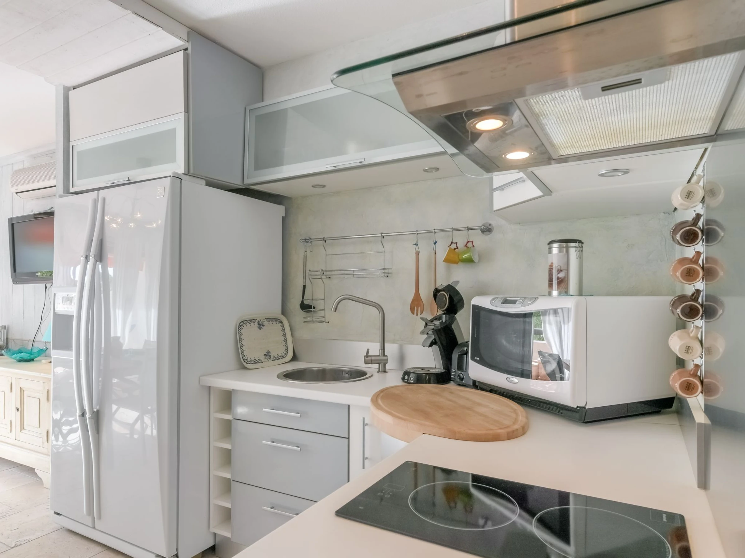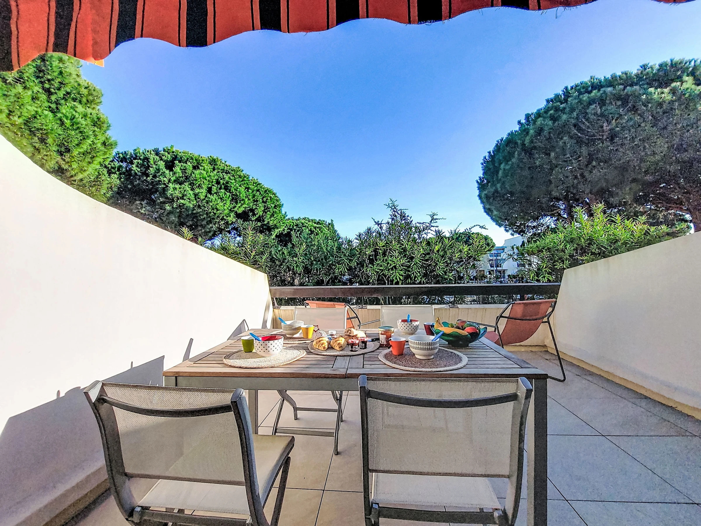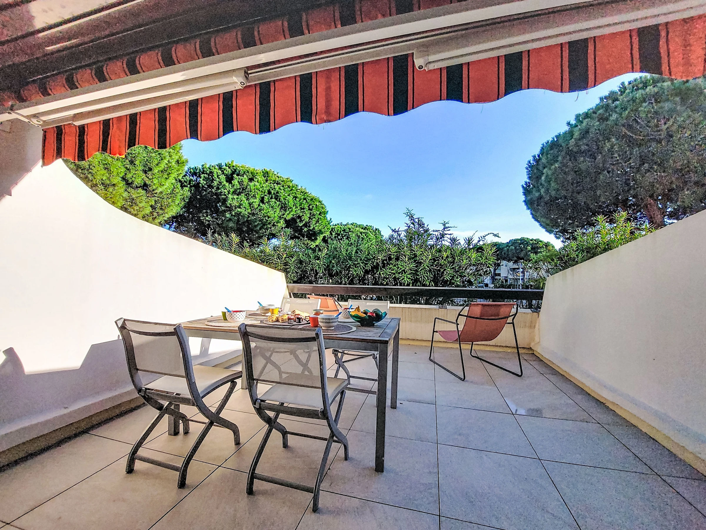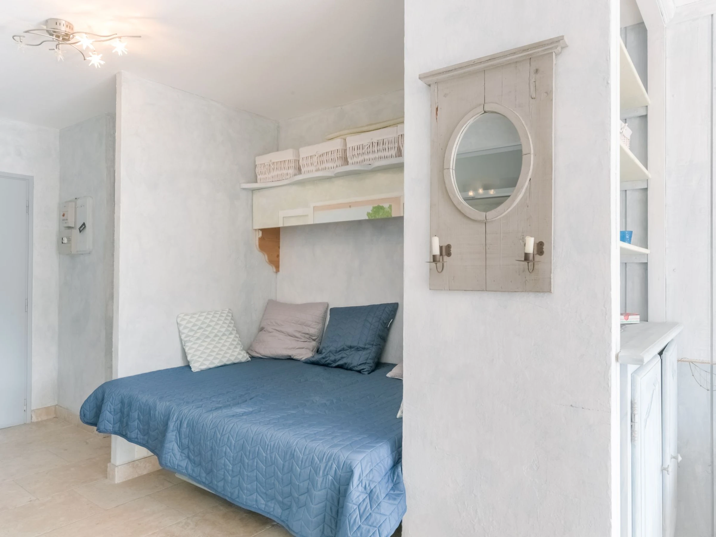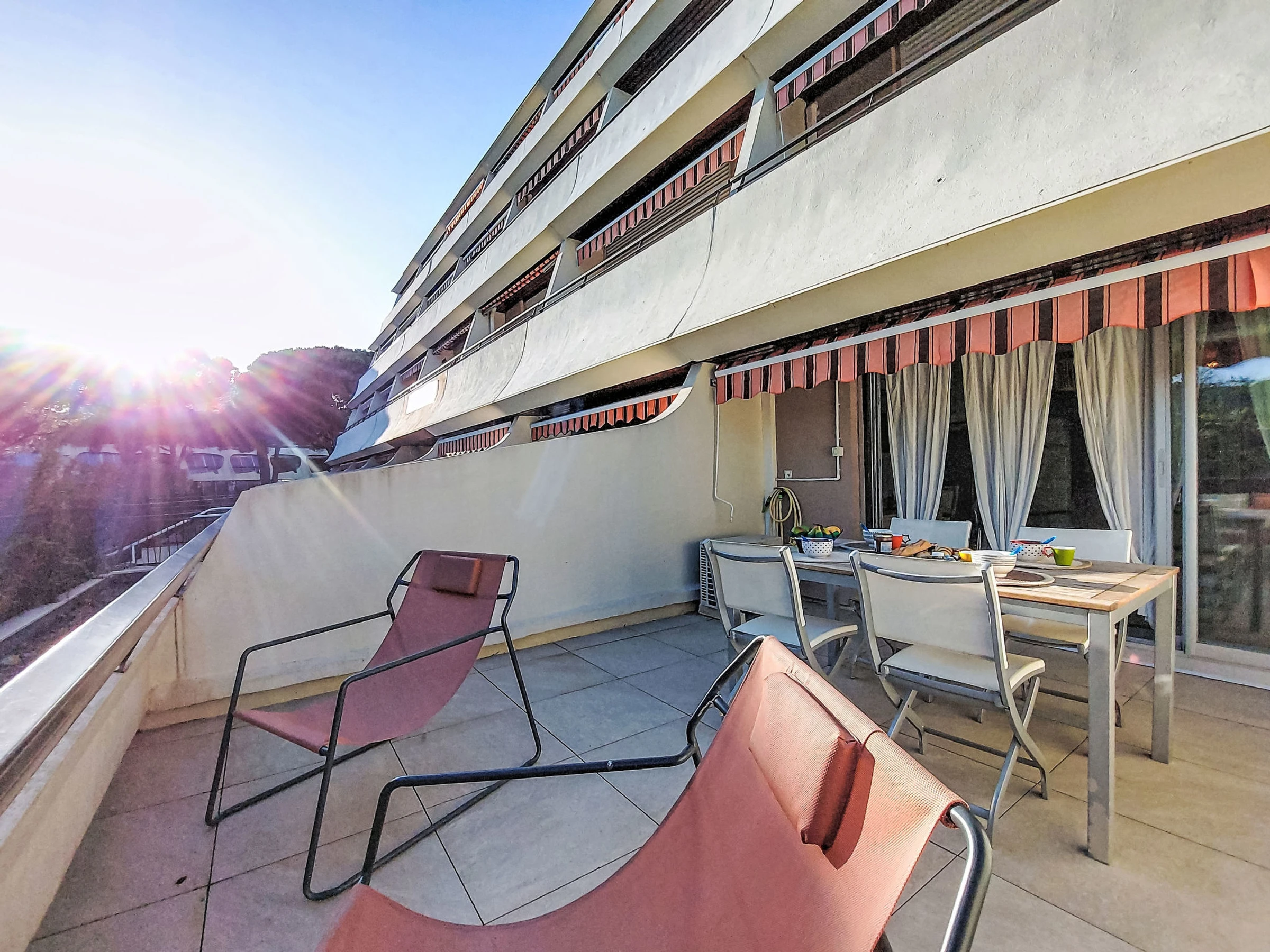 1-Zimmer-Studio 30 m2, im Erdgeschoss. Schön eingerichtet: Wohn-/Esszimmer mit 1 Doppeldiwanbett (1 x 140 cm, Länge 190 cm), TV (Flachbildschirm). Kabine mit 1 franz. Bett (140 cm, Länge 190 cm). Kochnische (Geschirrspüler, 2 Glaskeramikplatten, elektrische Kaffeemaschine, Kombinationsmikrowelle). Bad, sep. WC. Klimaanlage. Terrasse 10 m2, Südlage. Zur Verfügung: Internet (Wireless LAN, extra). Parkplatz Nr. PUBLIC GRATUIT. Bitte beachten: Rauchmelder. Anstelle eines abgeschlossenen Schlafzimmers befinden sich manche Schlafplätze in einem offenen Bereich (Galerie, Nische etc.).