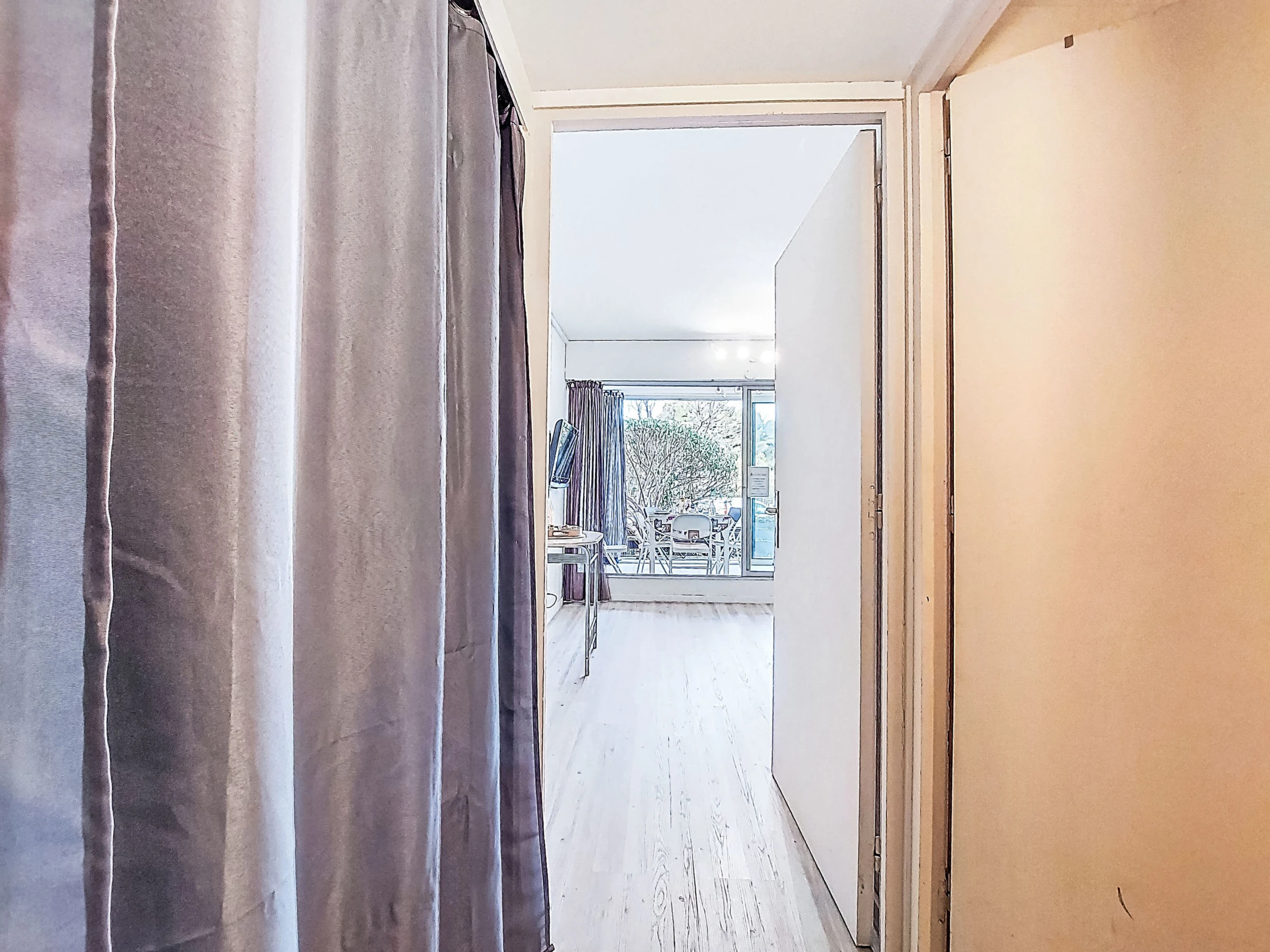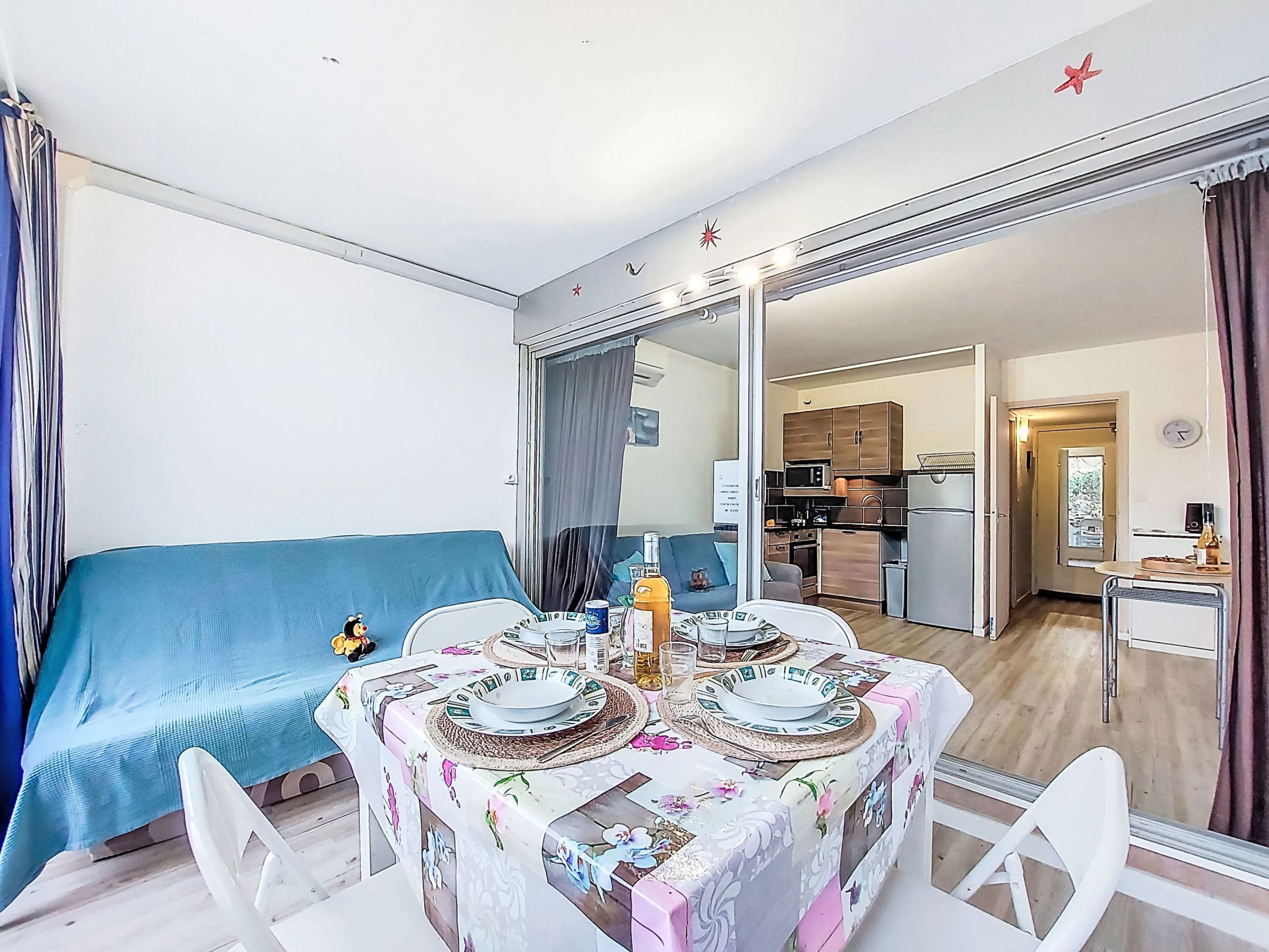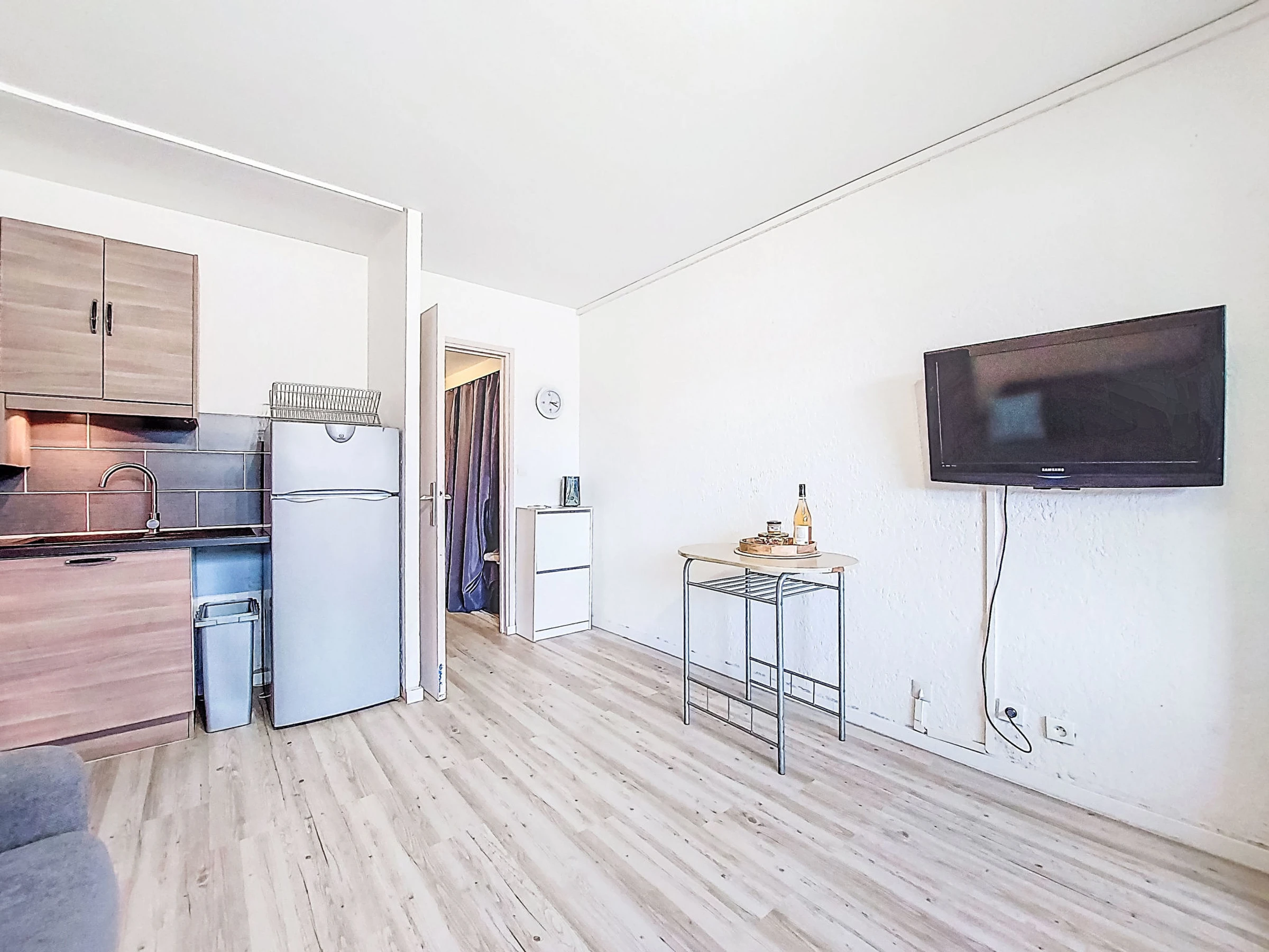 1-Zimmer-Studio 28 m2, im Erdgeschoss. Wohn-/Esszimmer mit 2 Doppeldiwanbetten (140 cm, Länge 190 cm), Klimaanlage. Kochnische (Backofen, 3 Glaskeramikplatten, Toaster, Wasserkocher, Mikrowelle, elektrische Kaffeemaschine). Bad, Dusche/WC. Loggia. Zur Verfügung: Waschmaschine. Internet (WLAN, gratis). Parkplatz Nr. EN COMMUN. Bitte beachten: Wohnung auf Parkplatzseite. Maximal 1 Haustier/Hund erlaubt. Rauchmelder.