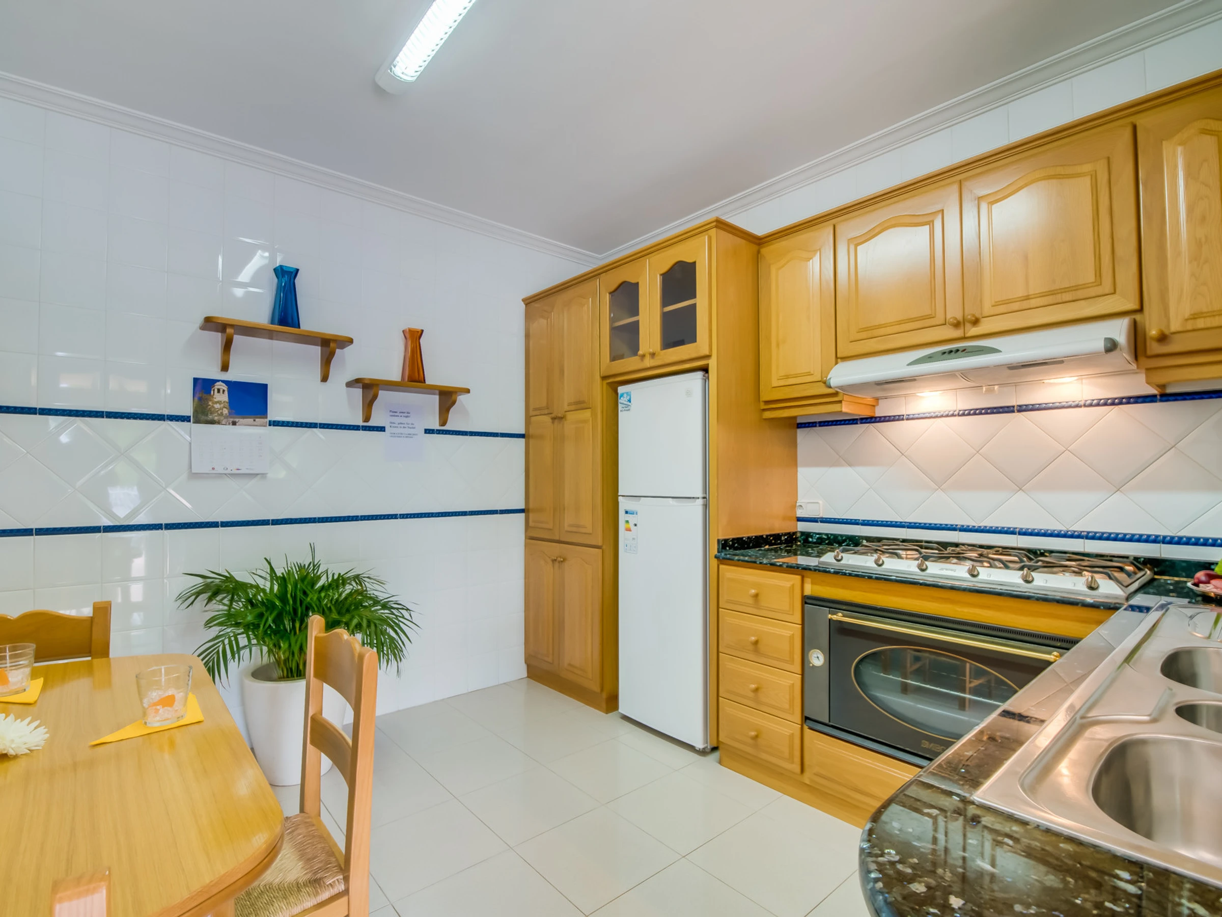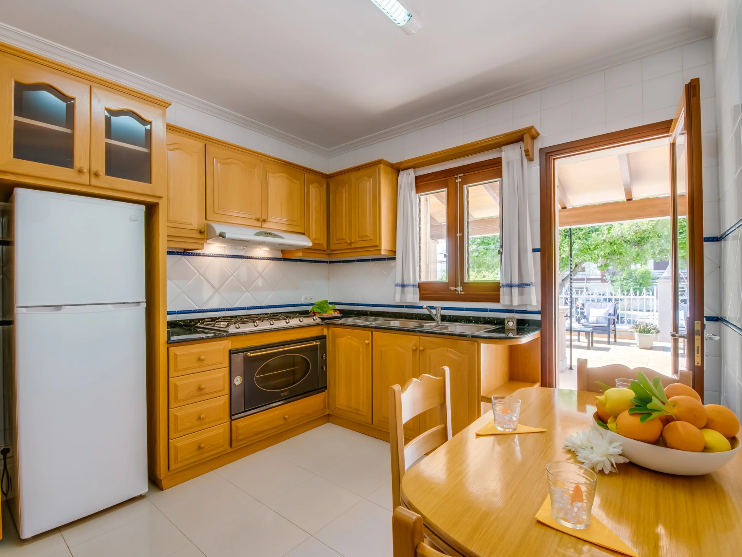 Die Küche ist mit allem ausgestattet, was maximal 8 Personen im Urlaub brauchen, um leckere Mahlzeiten zu zaubern. Sowohl von der Küche als auch vom Wohnzimmer mit Esstisch haben Sie direkten Zugang zur teilweise überdachten Terrasse.