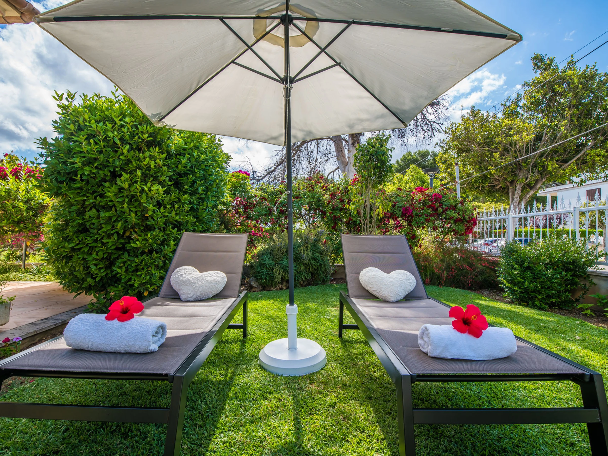 Im Garten steht eine Dusche mit kaltem und warmem Wasser, ein großer gemauerter Grill und eine kleine Rasenfläche mit zwei Stühlen zur Verfügung. Der Garten ist mit vielen Blumen und blühenden Sträuchern bepflanzt. Man merkt die Liebe zum Detail und dass das Haus einst das Sommerhaus der Eigentümerfamilie war.