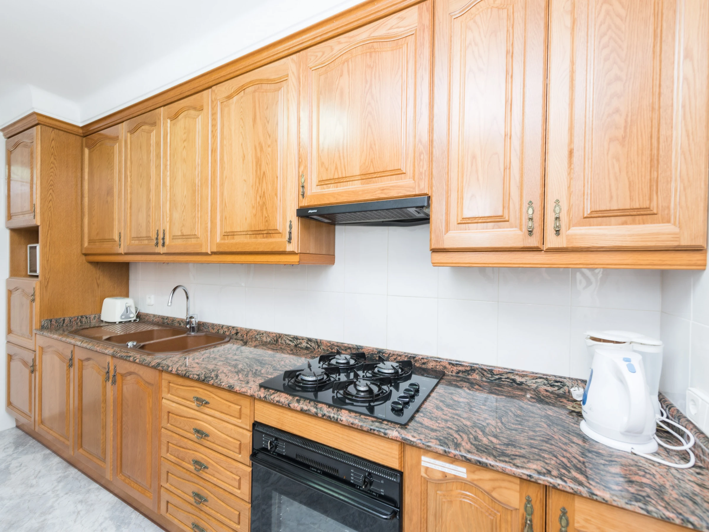 Dieses küche, ist ausgestattet in mikrowelle, gefrierschrank, spülmaschine, kaffeemaschine und toaster.