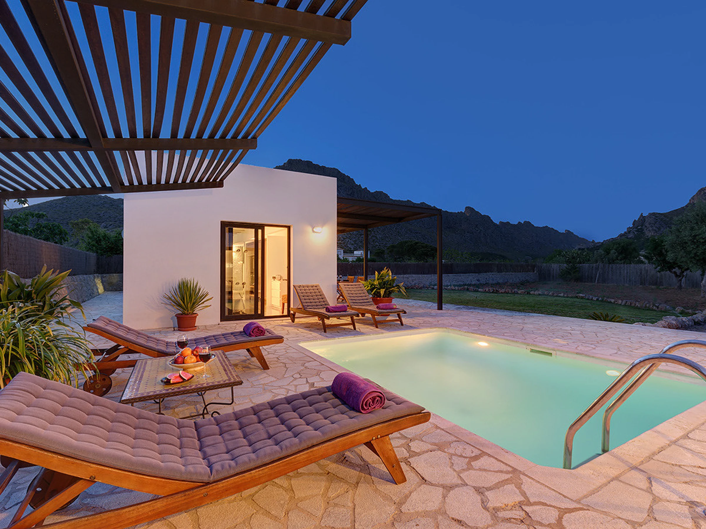 Die Unterkunft verfügt über garten, gartenmöbel, umzäuntes grundstück, terrasse, waschmaschine, grill, bügeleisen/-brett, internet (WLAN), haartrockner, heizung, klimaanlage, swimming-pool privater pool, parkplatz im freien in auf dem grundstück, 1 Fernseher, sat-tv (Sprachen: Spanisch, Englisch, Deutsch), DVD.
