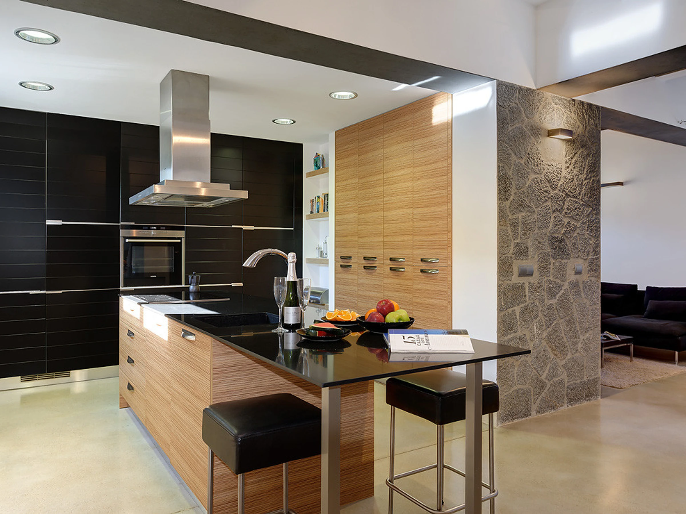 Dieses offene küche, mit ceranfeld, ist ausgestattet in kühlschrank, mikrowelle, backofen, gefrierschrank, spülmaschine, geschirr/besteck, kochutensilien, kaffeemaschine, toaster, wasserkocher und saftpresse.