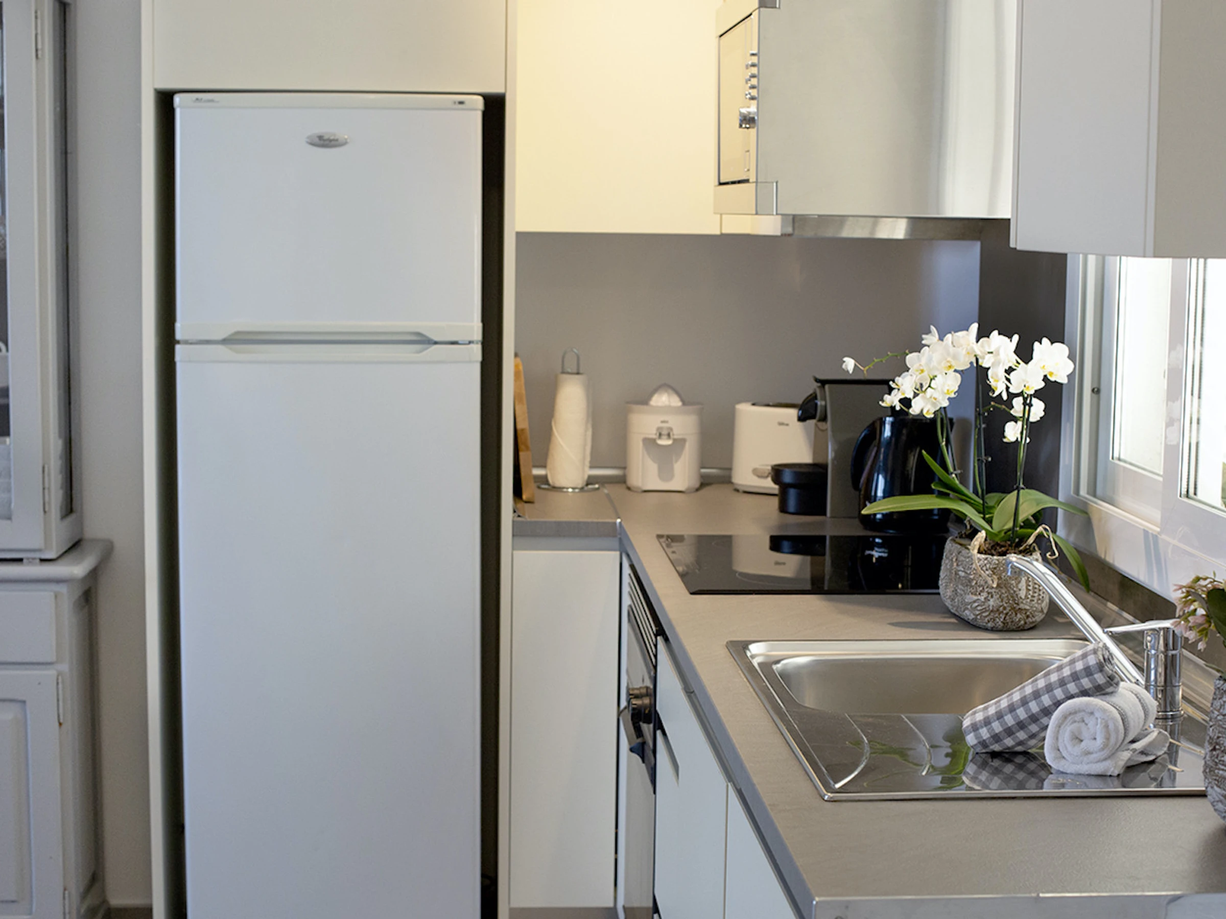 Dieses separate küche, mit ceranfeld, ist ausgestattet in kühlschrank, mikrowelle, backofen, gefrierschrank, spülmaschine, geschirr/besteck, kochutensilien, kaffeemaschine, toaster, wasserkocher und saftpresse.