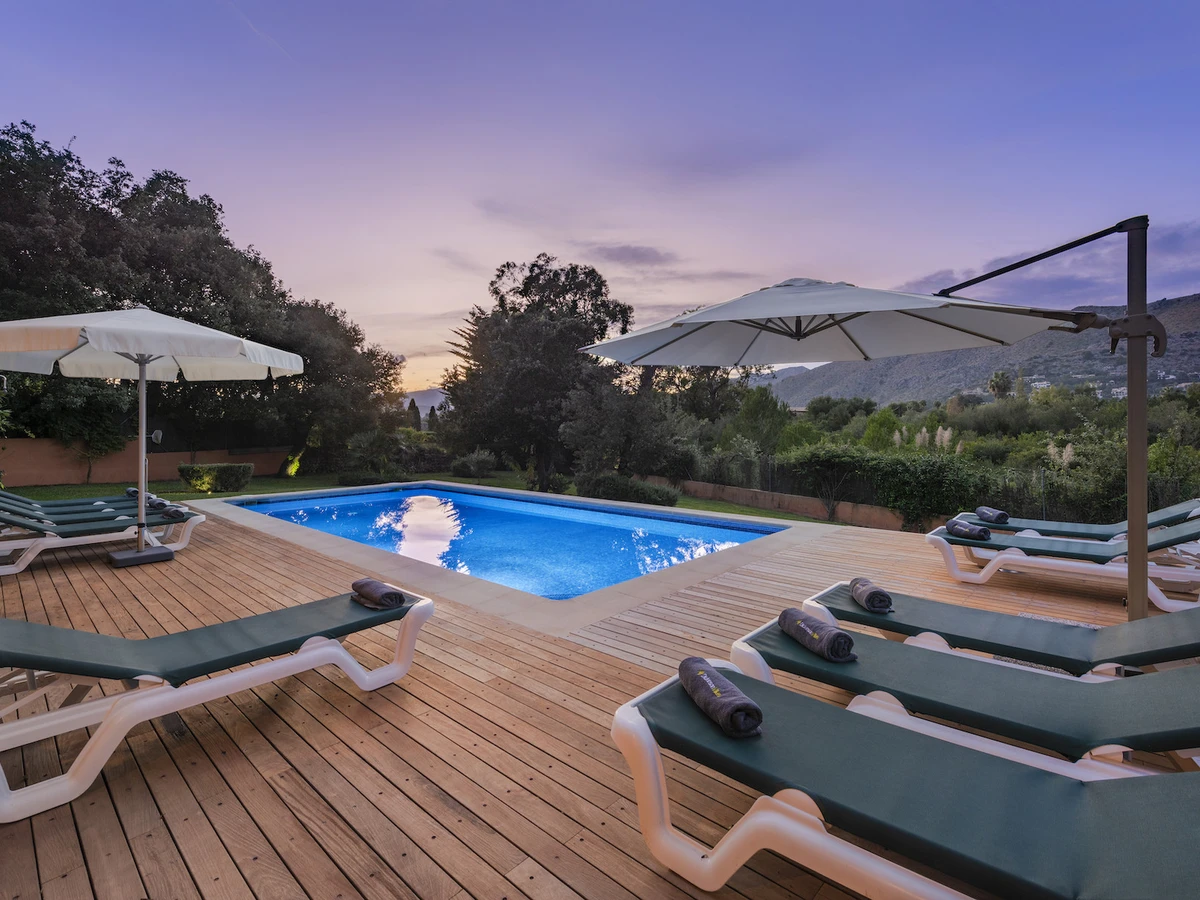 Die Unterkunft verfügt über garten, gartenmöbel, umzäuntes grundstück, terrasse, waschmaschine, trockner, grill, bügeleisen/-brett, safe, internet (WLAN), haartrockner, kinderbereich, alarm, zentralheizung, klimaanlage, swimming-pool privater pool, klimatisierter pool privater pool, parkplatz im freien in auf dem grundstück, 1 Fernseher, sat-tv (Sprachen: Spanisch, Englisch, Deutsch).