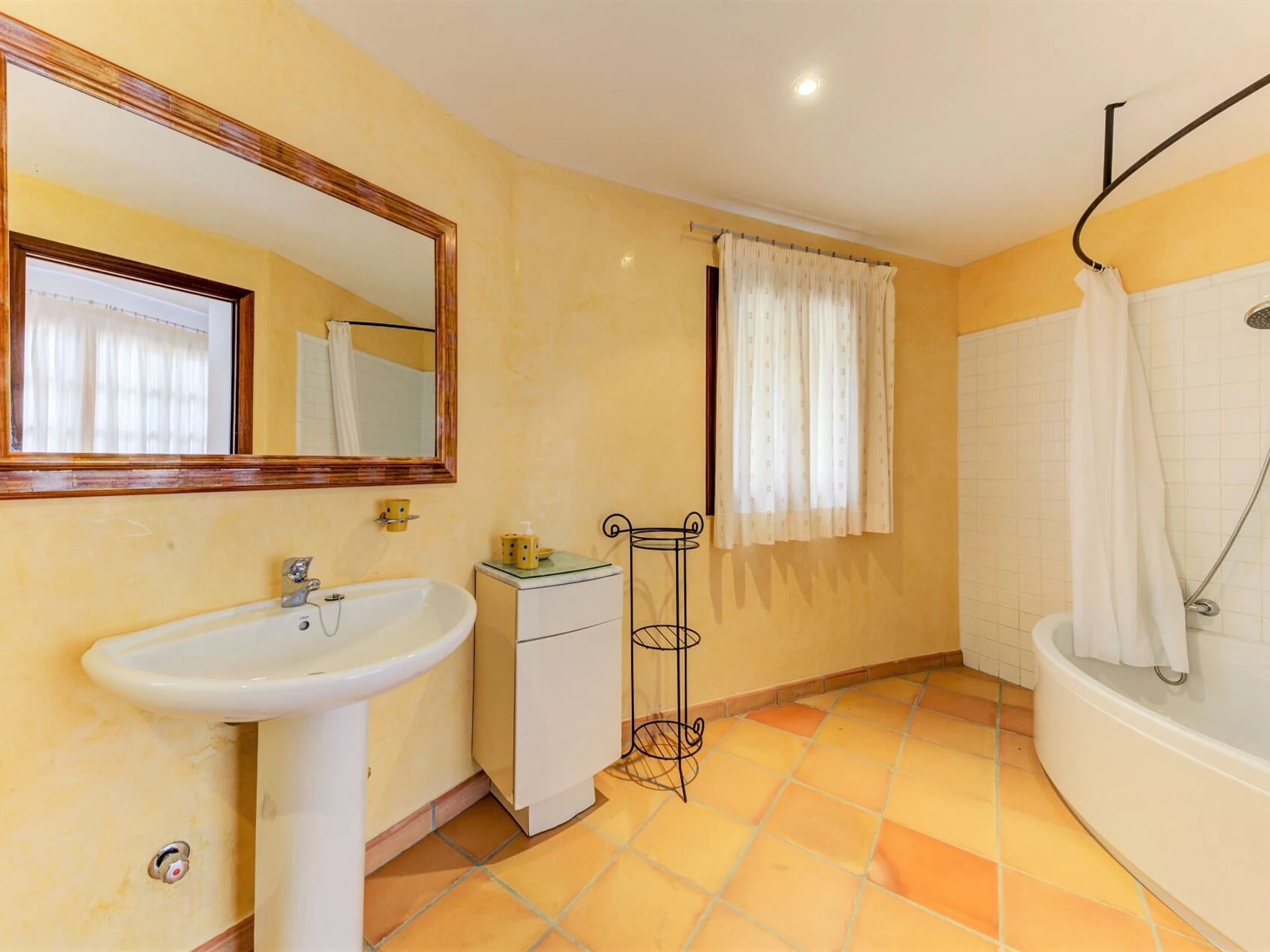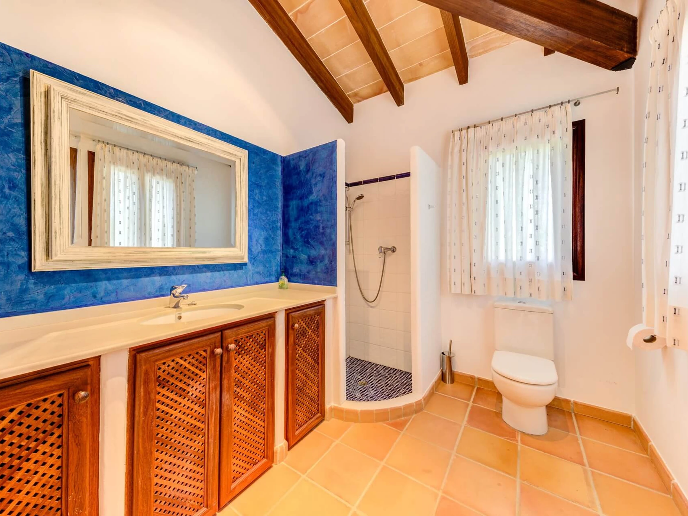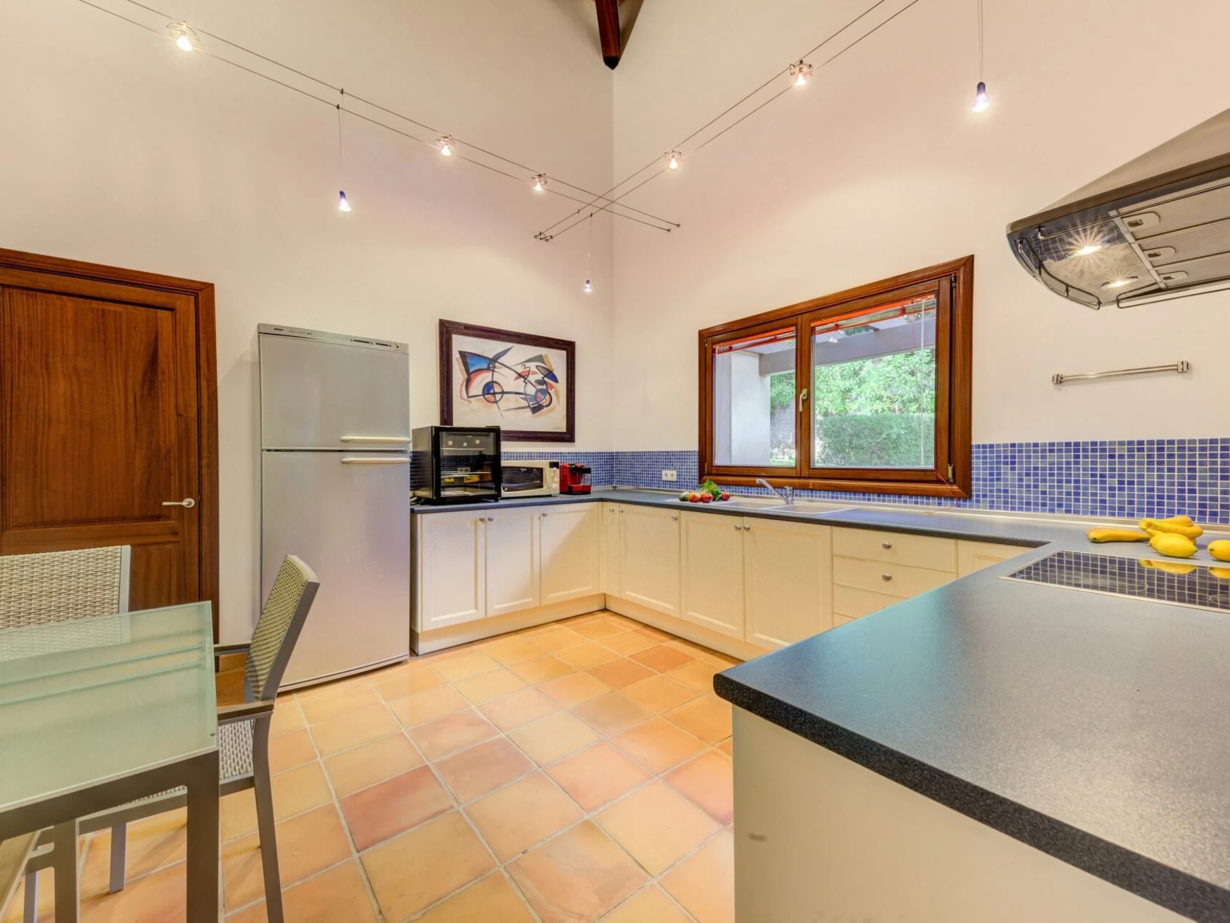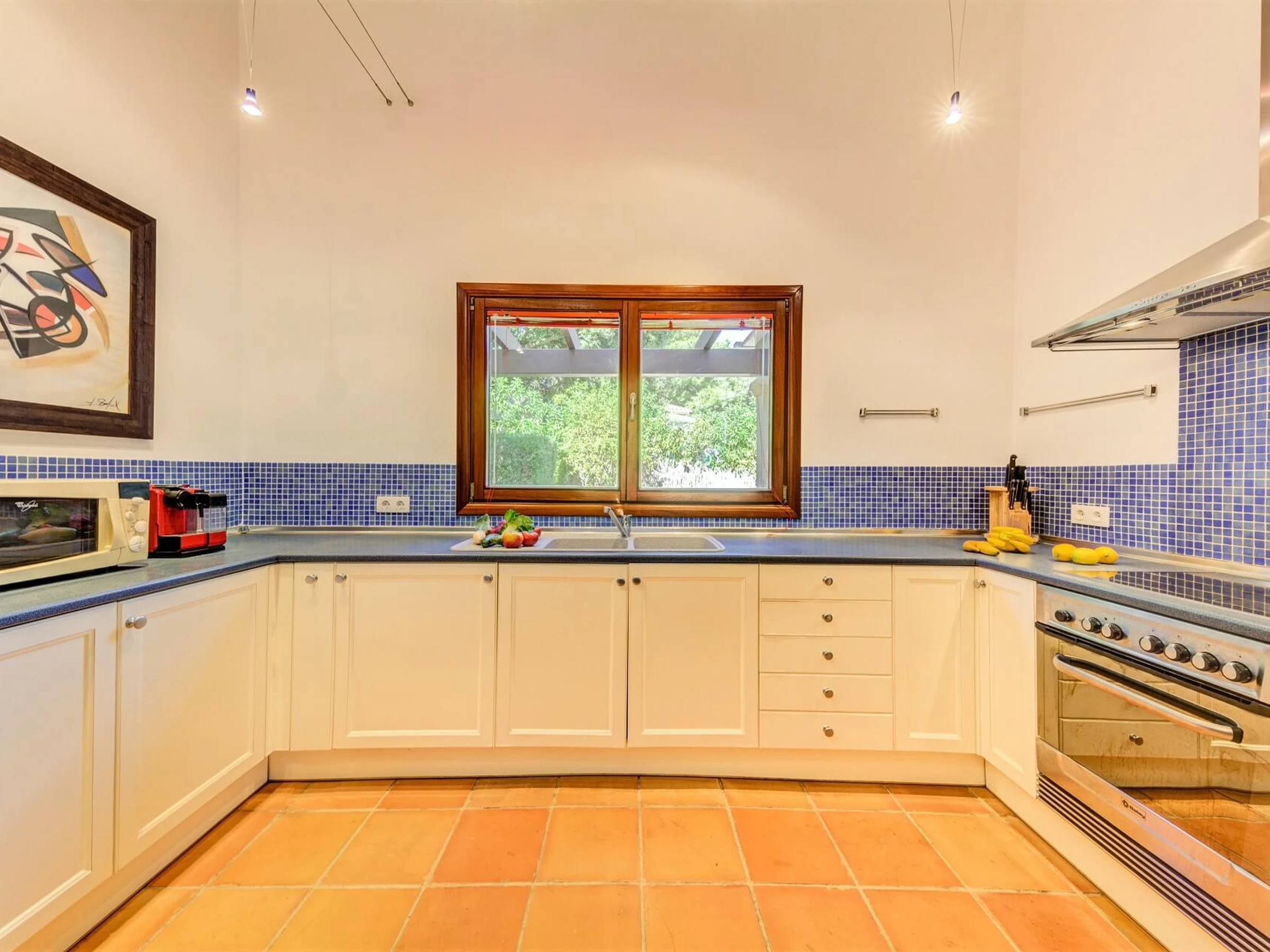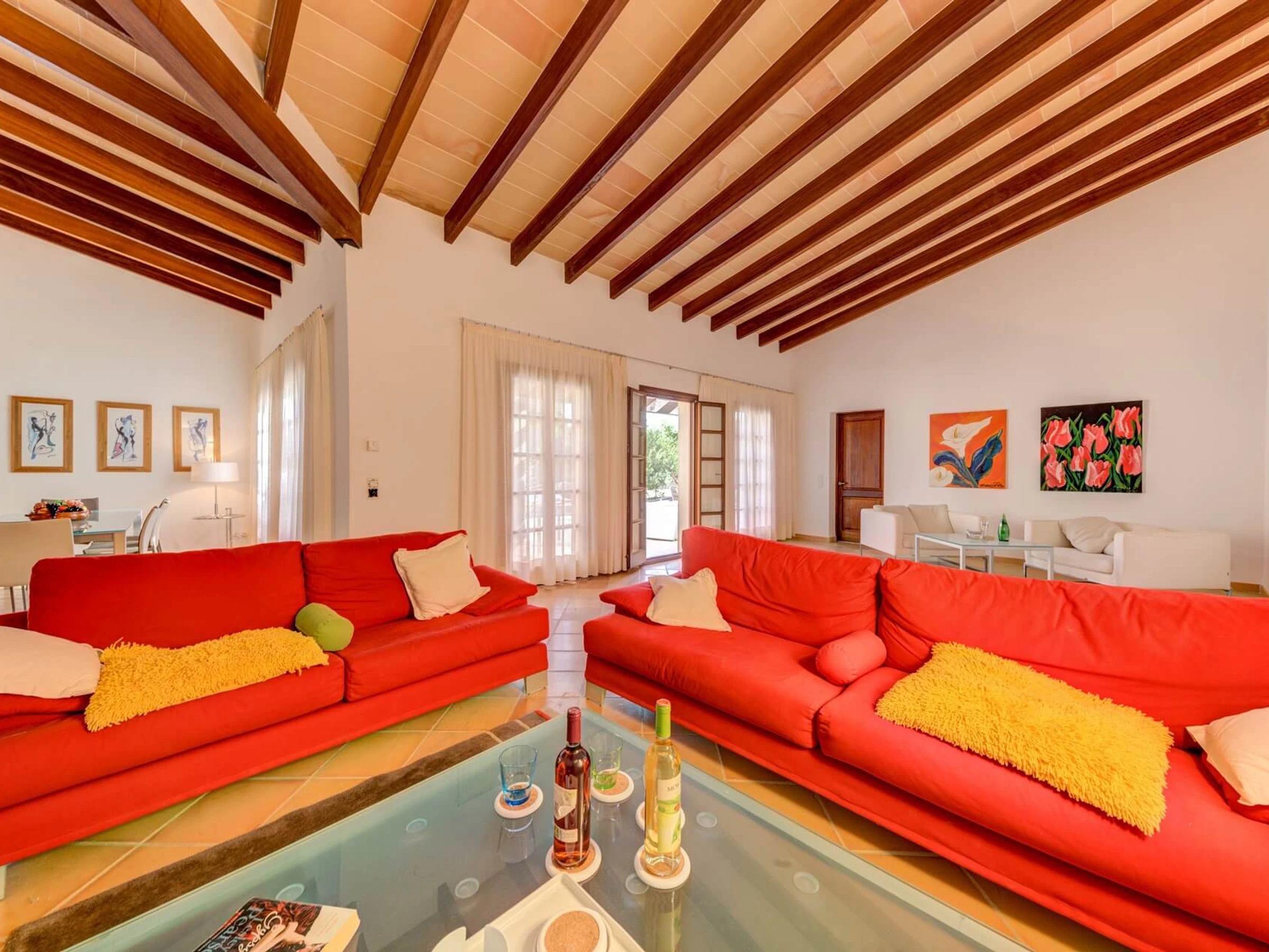 Im Inneren verteilt sich die Villa auf einer einzigen Etage und wurde kürzlich renoviert, um ein noch besseres Ferienerlebnis zu bieten. Es gibt ein wirklich riesiges Wohnzimmer mit großen Türen zum Poolhof und sichtbaren Balken (ausgestattet mit Sofas, Sesseln, Esstisch, Satelliten-TV (kostenlose Kanäle), WLAN-Internet), eine moderne, separate Küche (vollständig ausgestattet mit Kühl-/Gefrierschrank, Mikrowelle, Ofen, Geschirrspüler und Waschmaschine) sowie 3 geräumige Schlafzimmer, alle mit Doppelbetten und Klimaanlage. 2 der Schlafzimmer verfügen über ein eigenes Badezimmer (jeweils mit Badewanne und Dusche). Das dritte Schlafzimmer kann ein Familienbadezimmer mit Dusche nutzen.