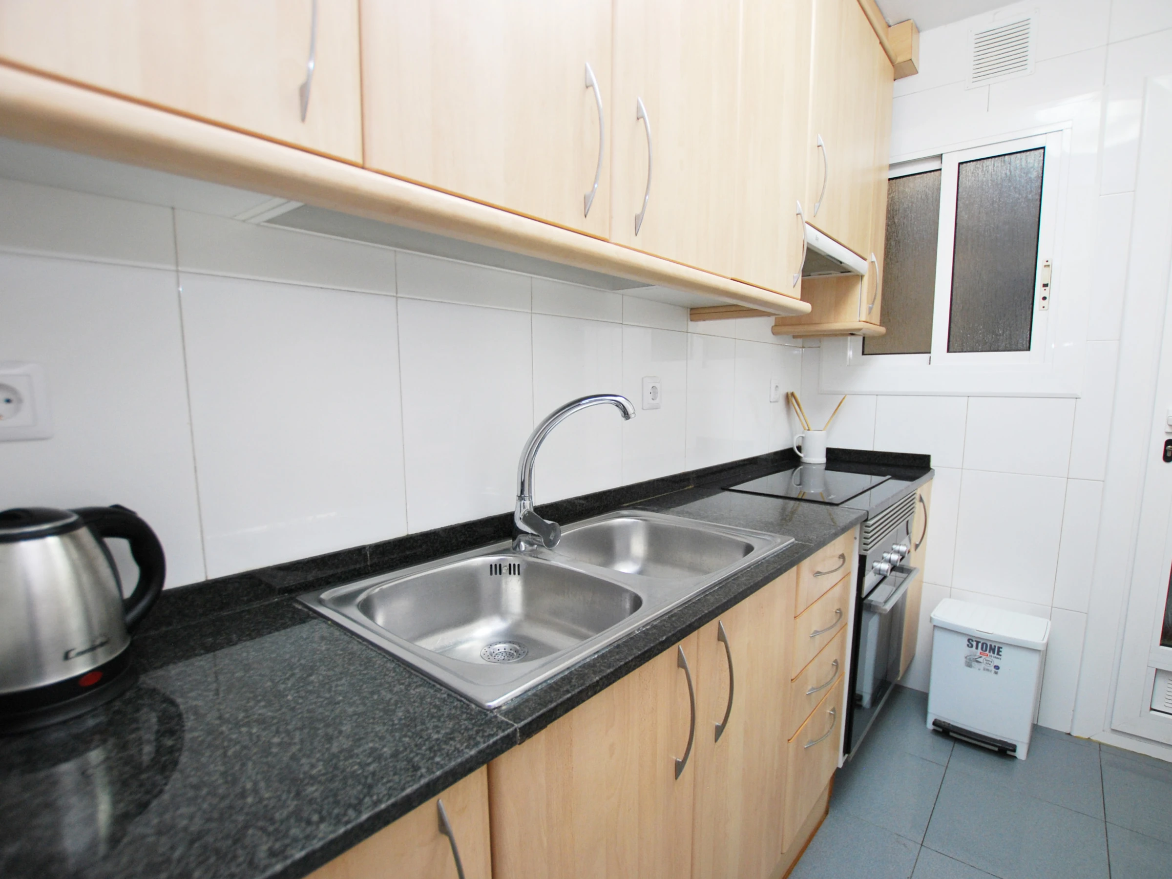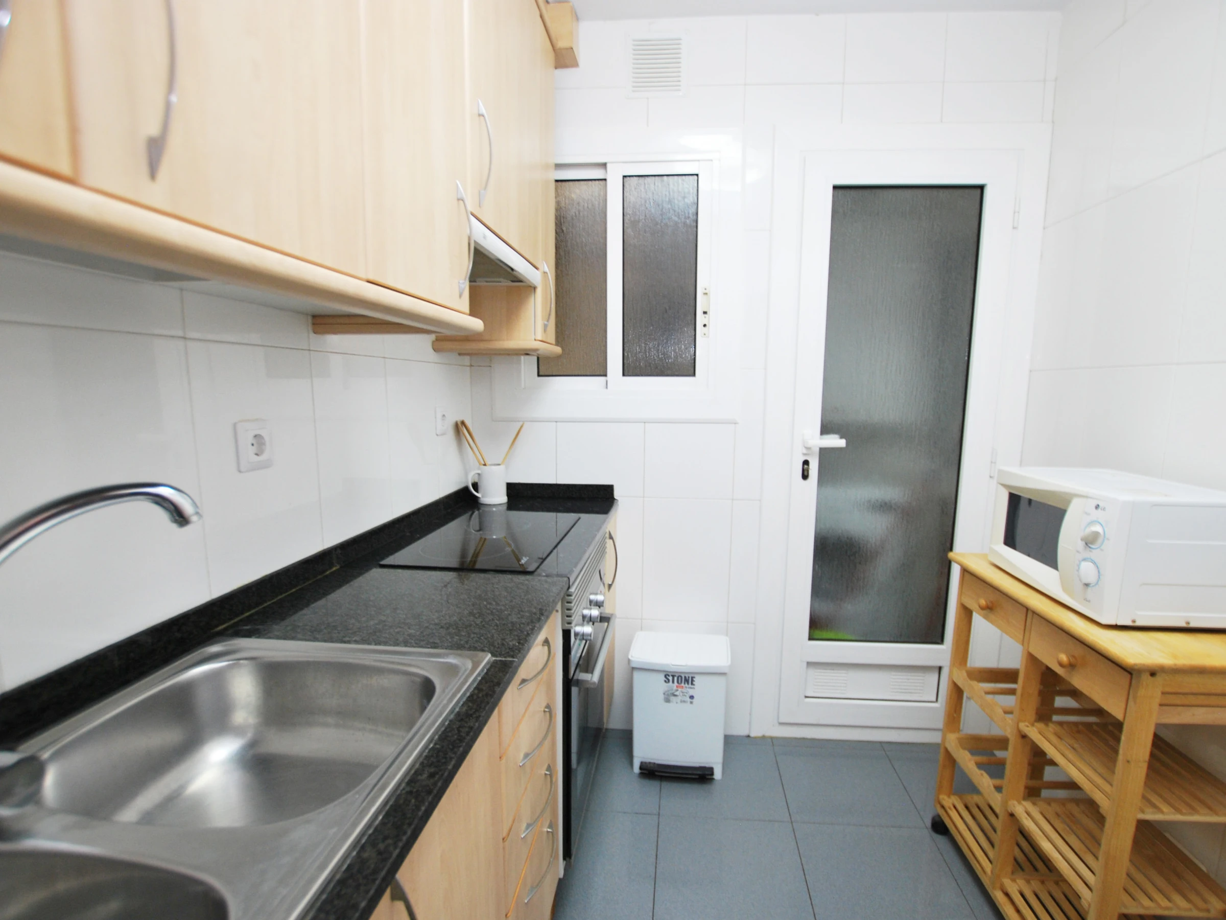 Dieses separate küche, elektrisches kochfeld, ist ausgestattet in kühlschrank, mikrowelle, backofen, gefrierschrank, geschirr/besteck, kochutensilien, kaffeemaschine und toaster.