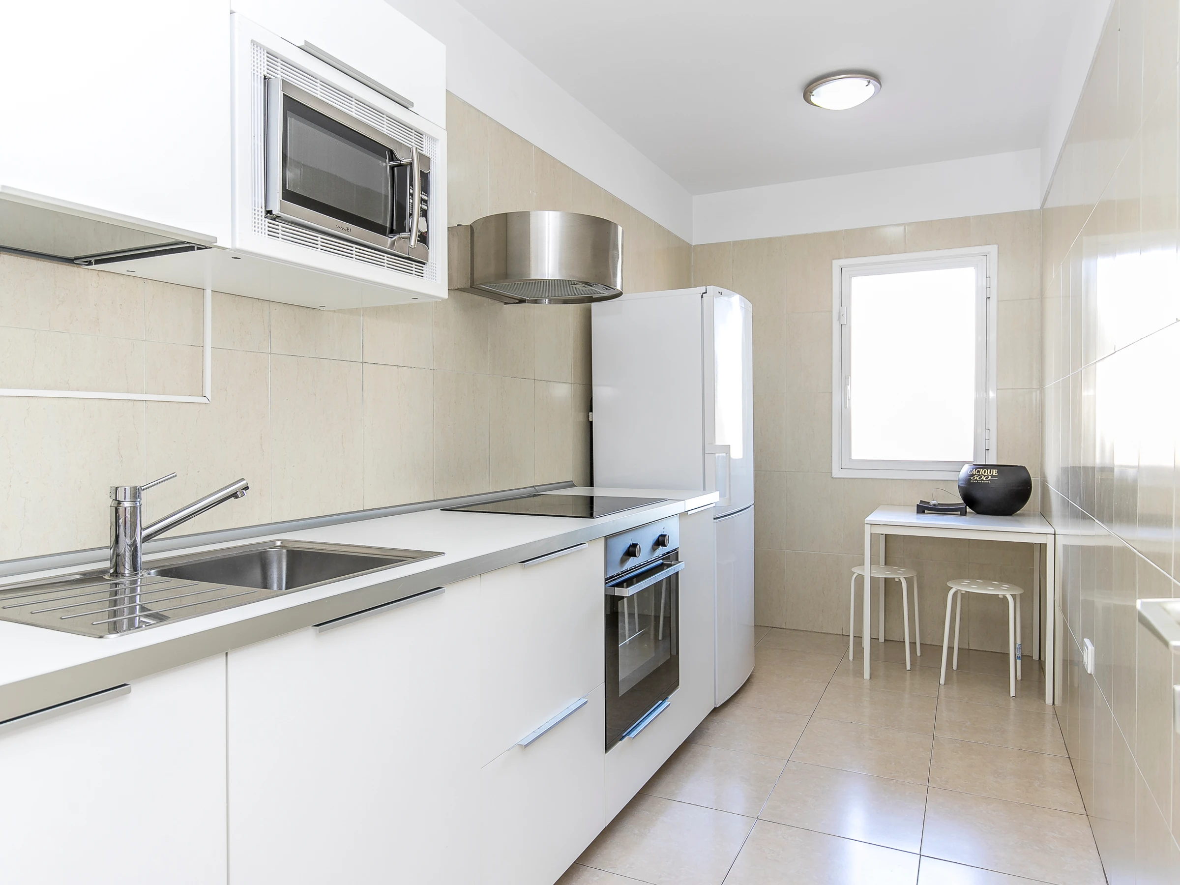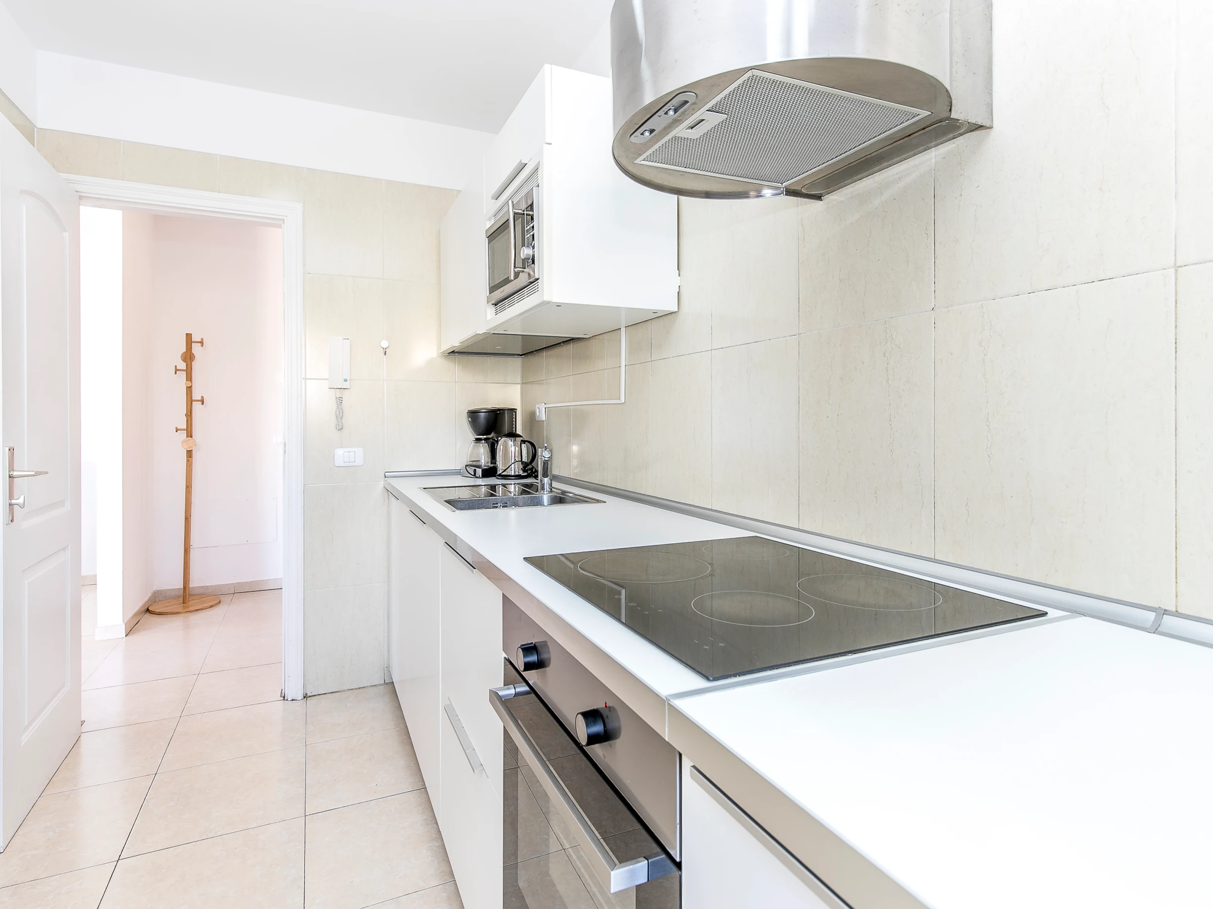 Dieses küche, ist ausgestattet in mikrowelle, backofen, kochutensilien und kaffeemaschine.
