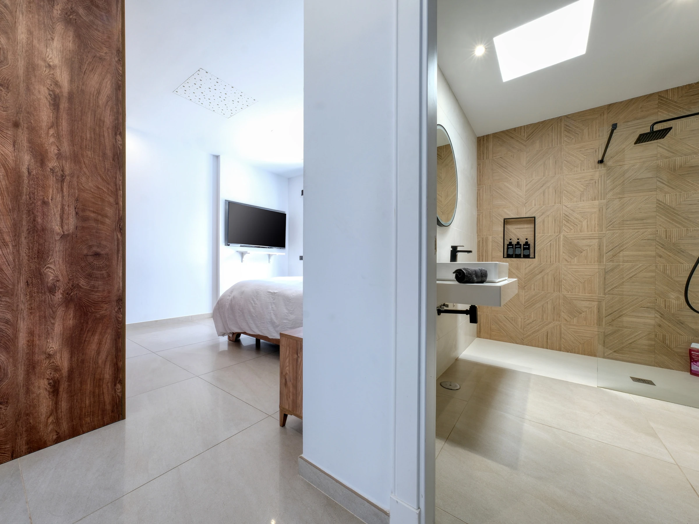 Die Villa verfügt über vier elegante Doppelzimmer mit Doppelbetten und drei vollständigen Badezimmern mit Dusche. Eines von ihnen verfügt zusätzlich über eine Badewanne mit Blick nach draußen, wobei jedes Detail sorgfältig ausgewählt wurde.