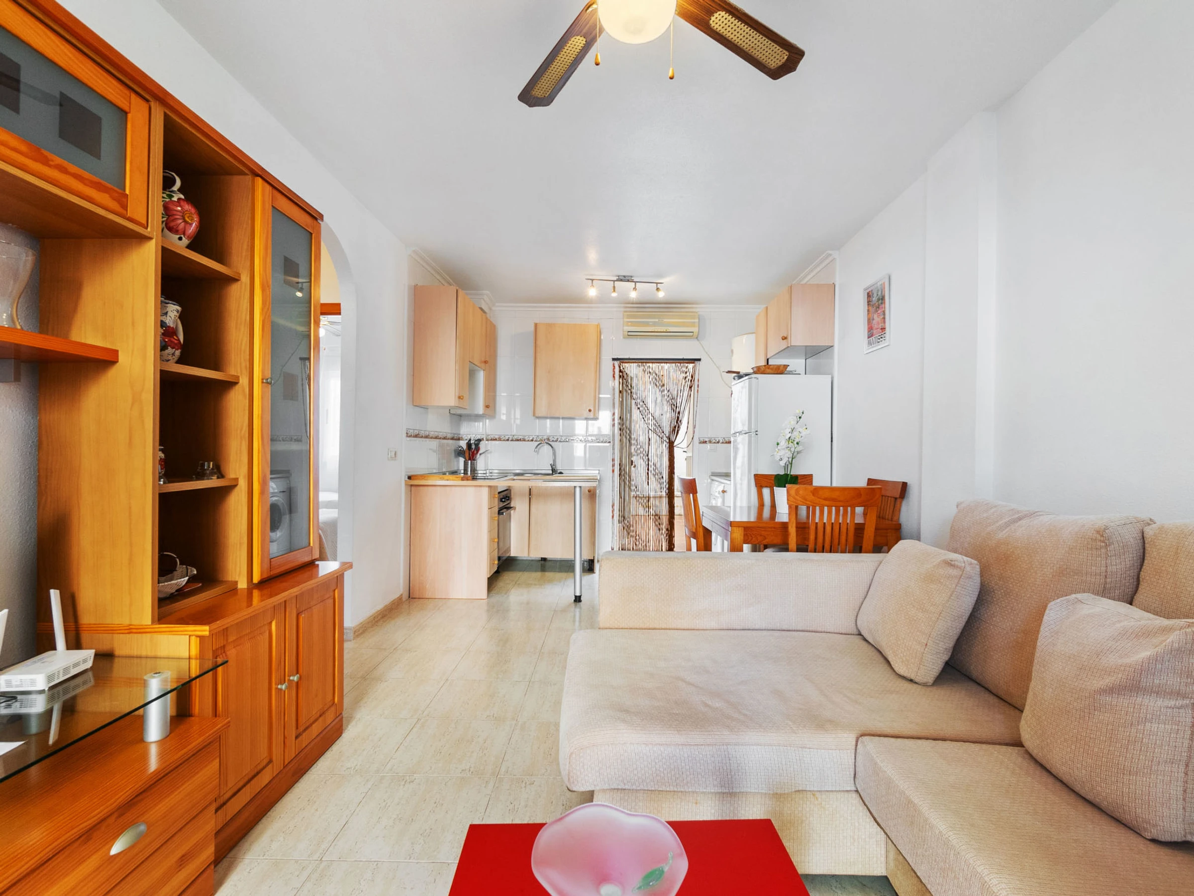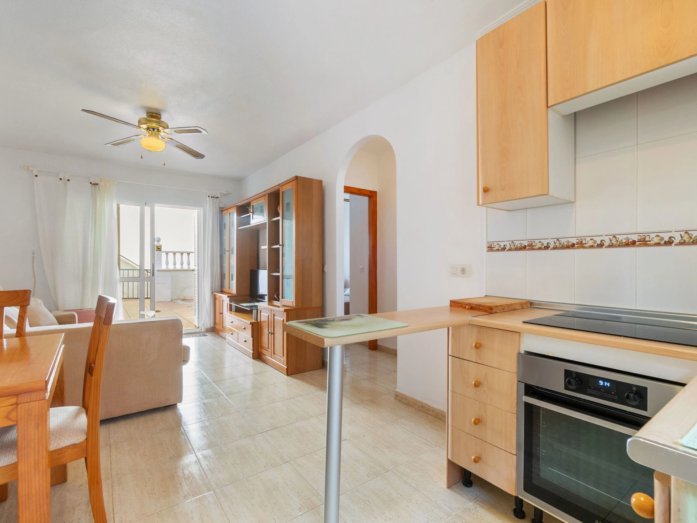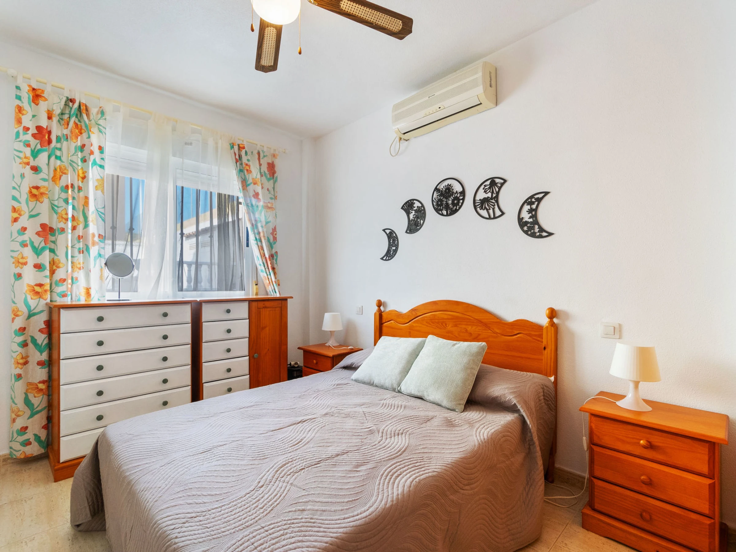 "Residencia del Mar II", 3-Zimmer-Wohnung 50 m2. Zweckmässig und komfortabel eingerichtet: Wohn-/Esszimmer mit Esstisch, Digital-TV, Flachbildschirm und Klimaanlage. 1 Zimmer mit 1 franz. Bett (150 cm, Länge 190 cm), Klimaanlage und Ventilator. 1 Zimmer mit 2 Betten (90 cm, Länge 190 cm), Ventilator. Offene Küche (Geschirrspüler, 3 Glaskeramikplatten, Toaster, Mikrowelle, elektrische Kaffeemaschine). Bad/WC. E-Heizung. Heizung nicht in allen Räumen. 2 Terrassen. Terrassenmöbel. Fernsicht auf das Meer. Zur Verfügung: Waschmaschine, Bügeleisen, Haartrockner. Internet (WLAN, gratis). Bitte beachten: Nichtraucher-Unterkunft. Maximal 1 Haustier/Hund erlaubt. [hidden] // Reg. Nr.: ESFCTU0000300280004188620000000000000000[hidden]8