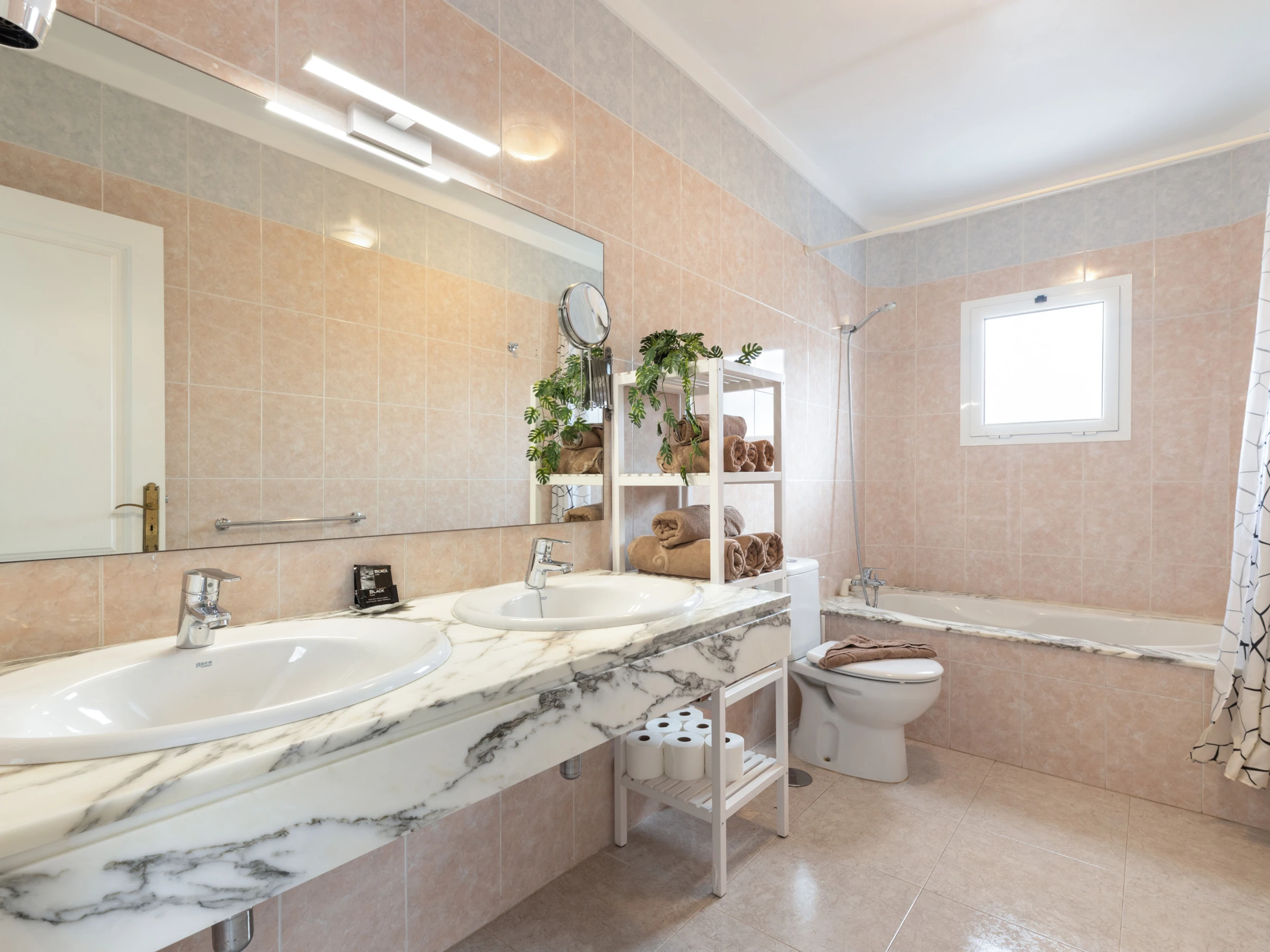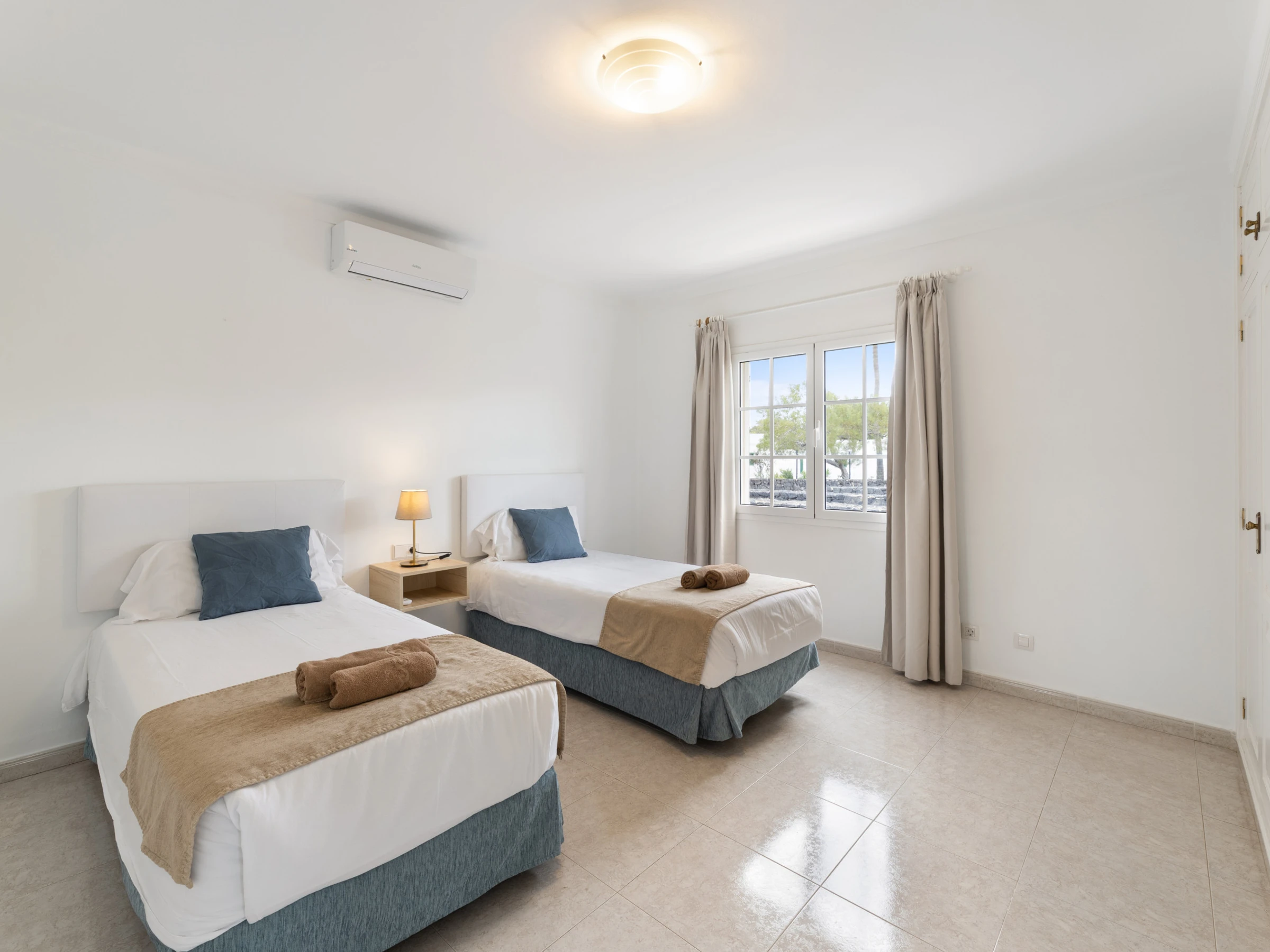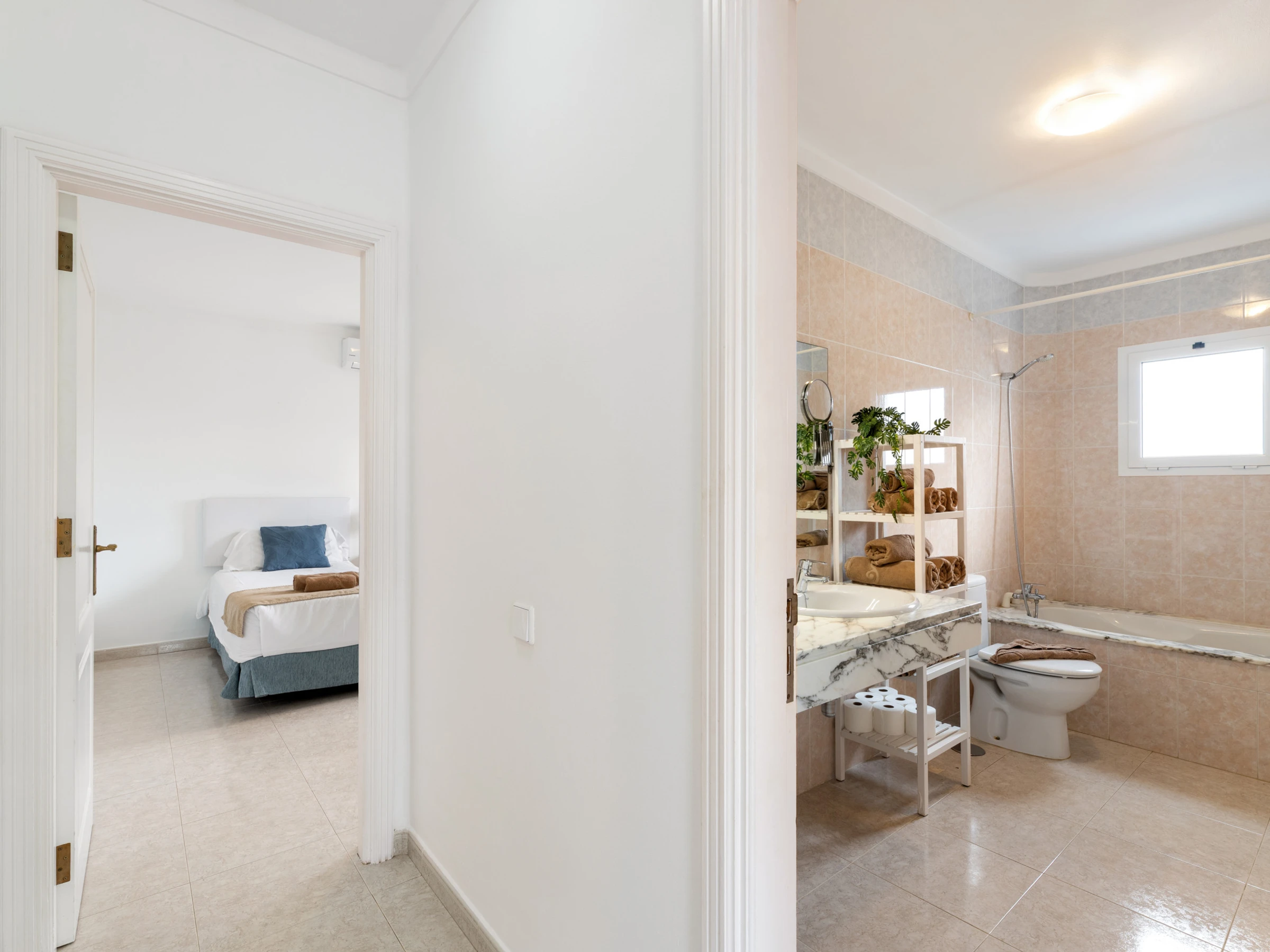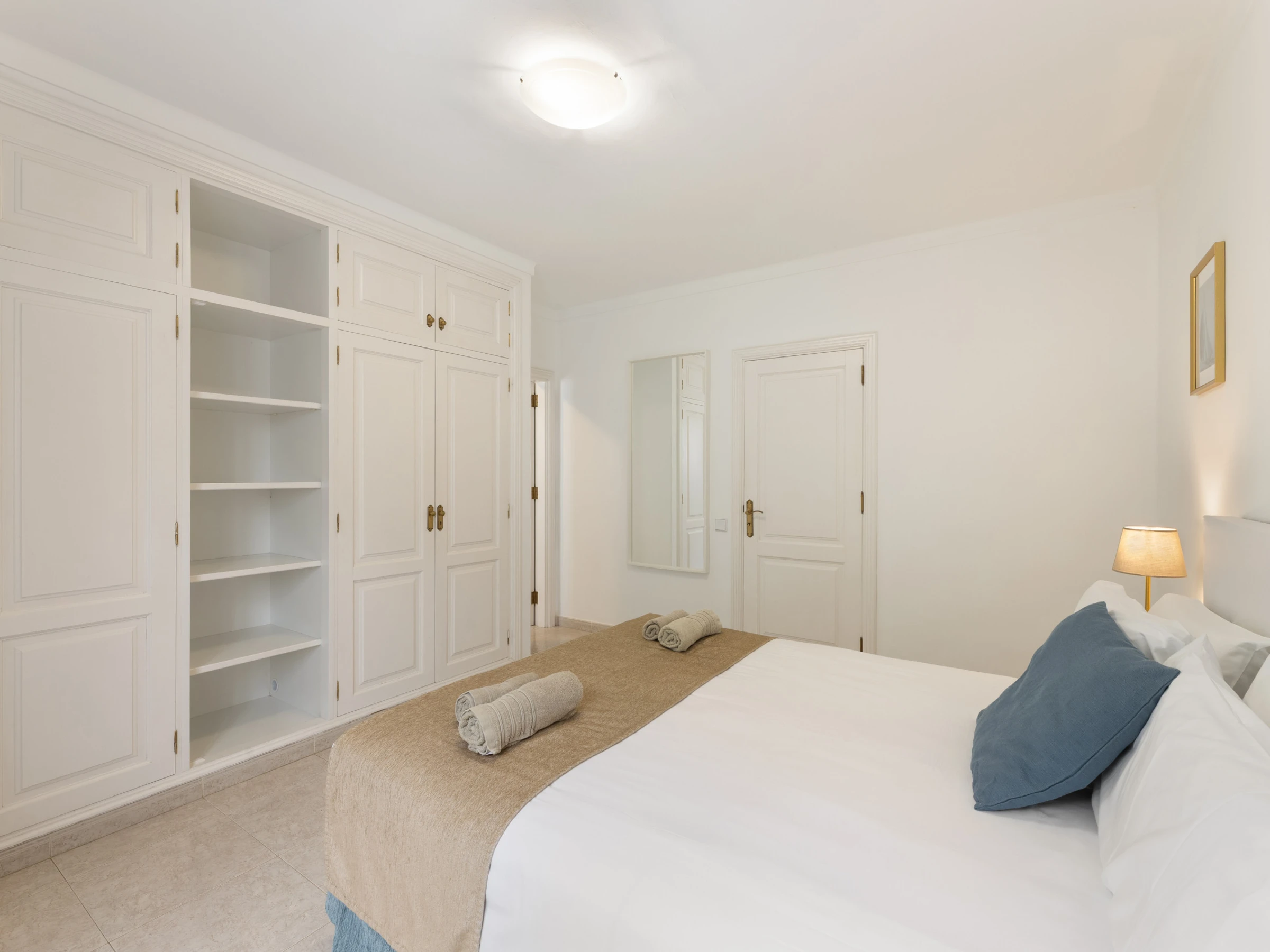 Er besteht aus zwei geräumigen Schlafzimmern, eines mit Doppelbett und das andere mit zwei Einzelbetten, zwei Badezimmern (eines davon en suite), großen eingebauten Schränken, ruhiger und eleganter Einrichtung.