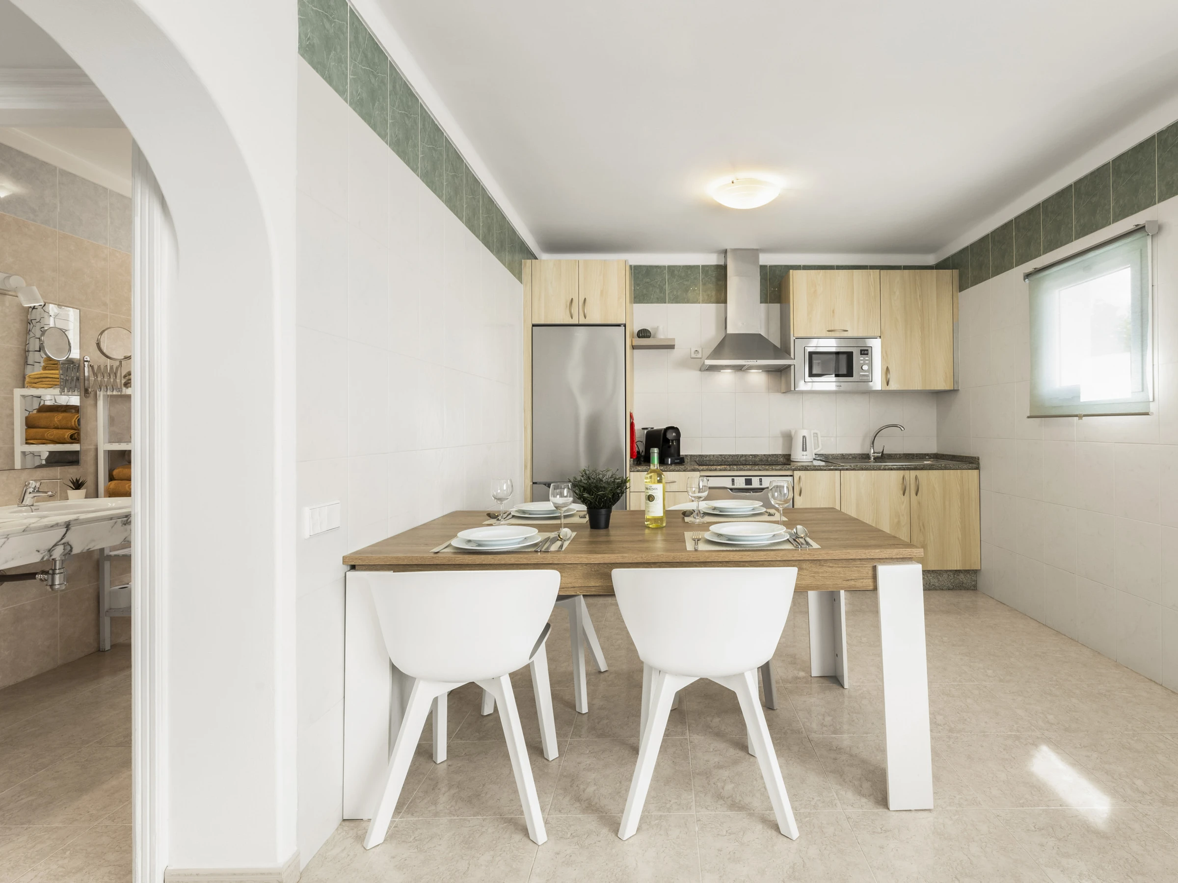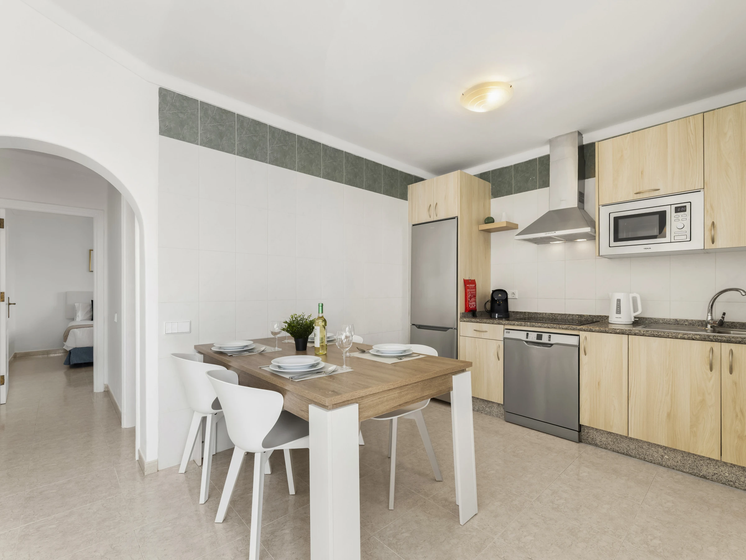 In der Küche-Esszimmer finden Sie Kühlschrank-Gefrierschrank, Geschirrspüler, Mikrowelle, Glaskeramikkochfeld sowie weitere Annehmlichkeiten.