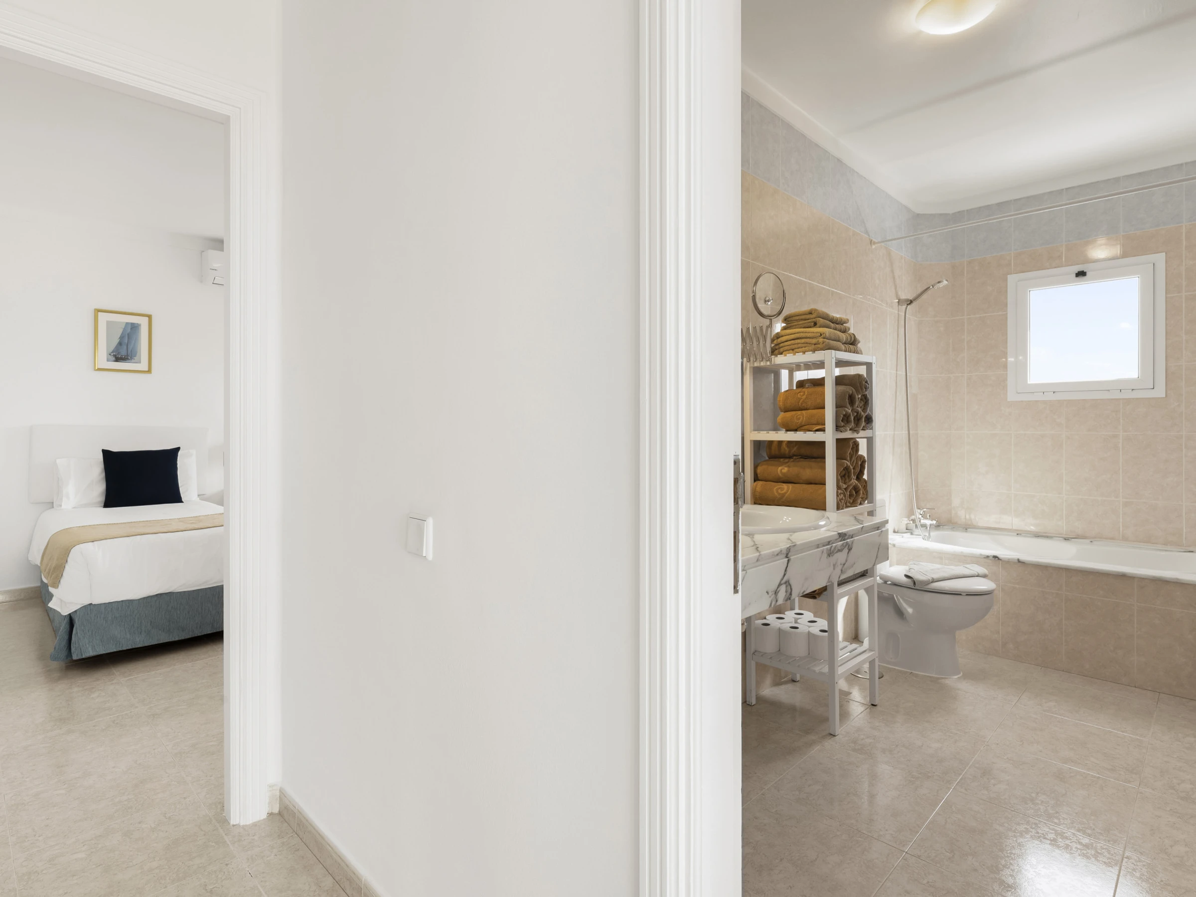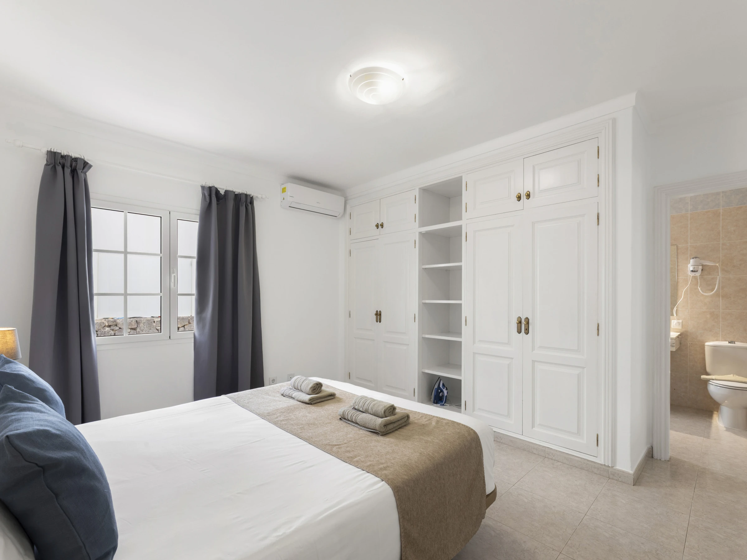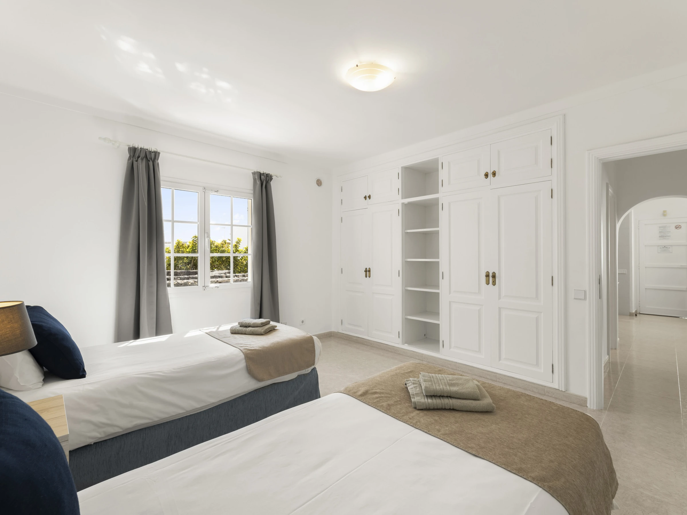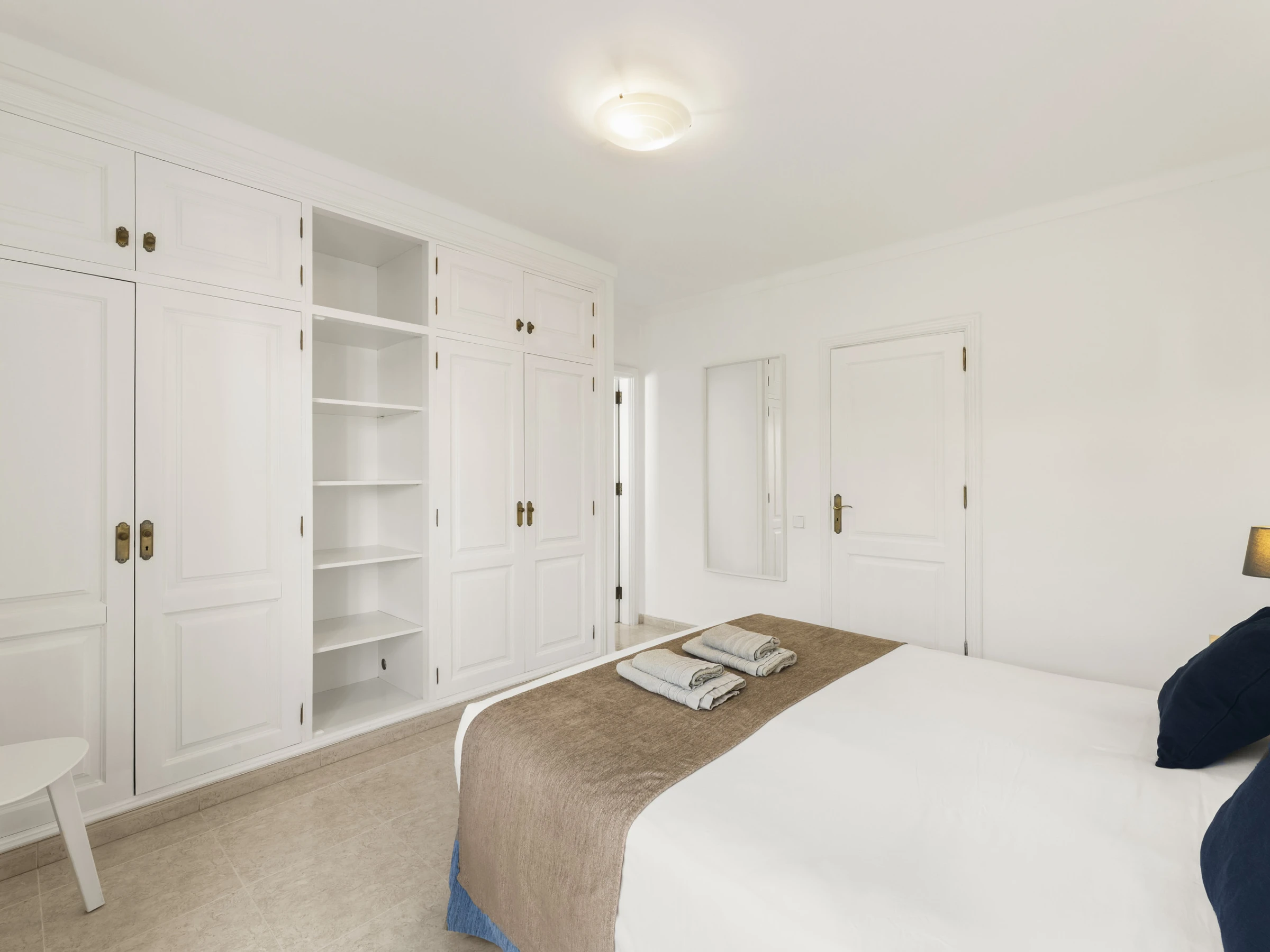 Er besteht aus zwei geräumigen Schlafzimmern, eines mit Doppelbett und das andere mit zwei Einzelbetten, zwei Badezimmern (eines davon en suite), großen eingebauten Schränken, ruhiger und eleganter Einrichtung.