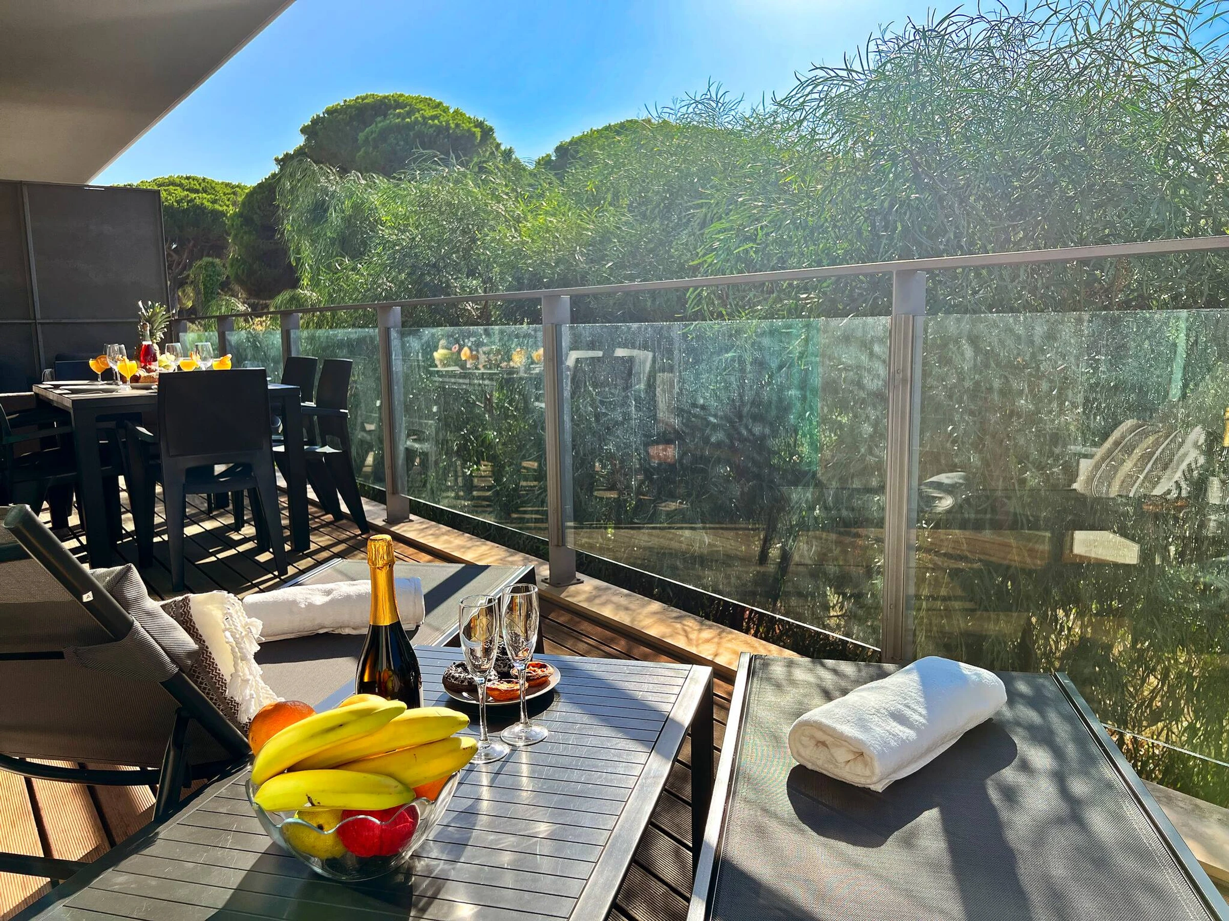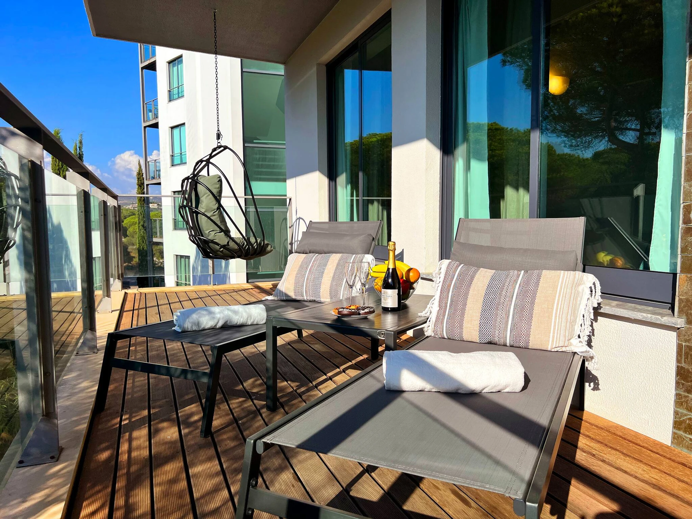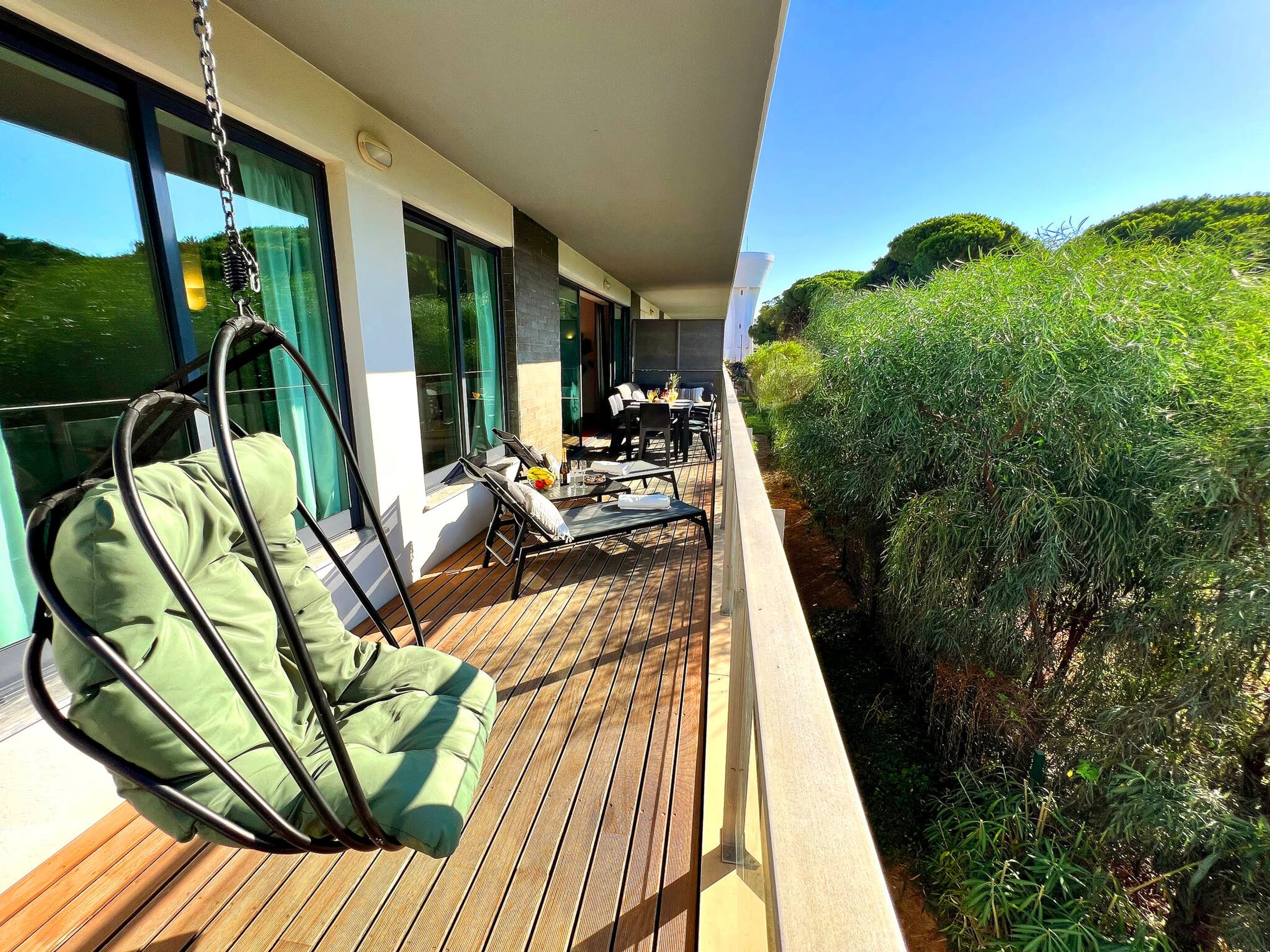 Die Immobilie verfügt über eine nach Norden ausgerichtete Terrasse, Klimaanlage, Kabel-TV, tragbares Internet und grundlegende Versorgungseinrichtungen. Der Hafen von Vilamoura und die nächstgelegenen Strände sind nur 7-10 Minuten Autofahrt entfernt. Genießen Sie die ruhige Umgebung mit Blick auf den Wald und atemberaubende Sonnenuntergänge - eine ideale Umgebung für einen erholsamen Aufenthalt.