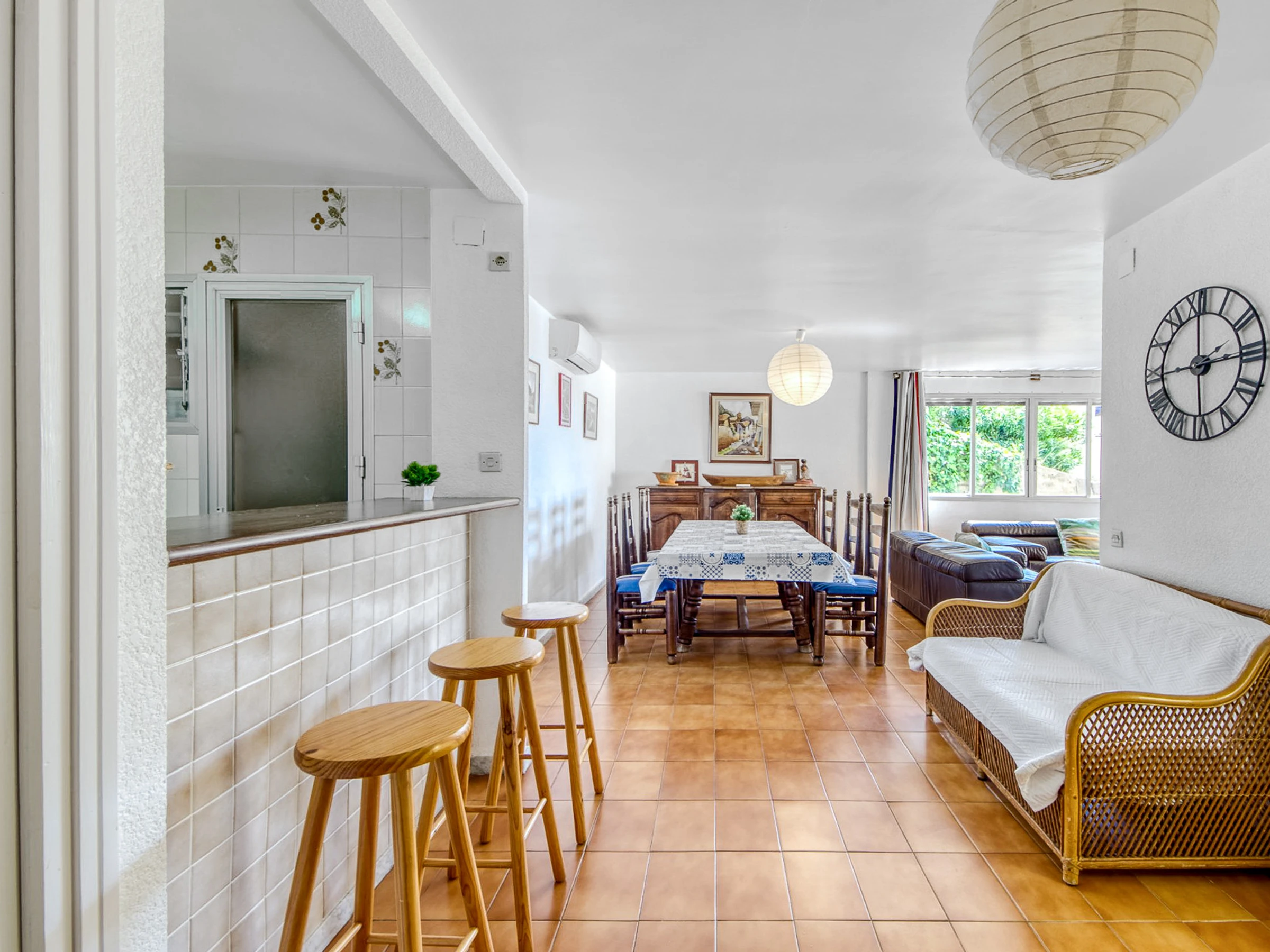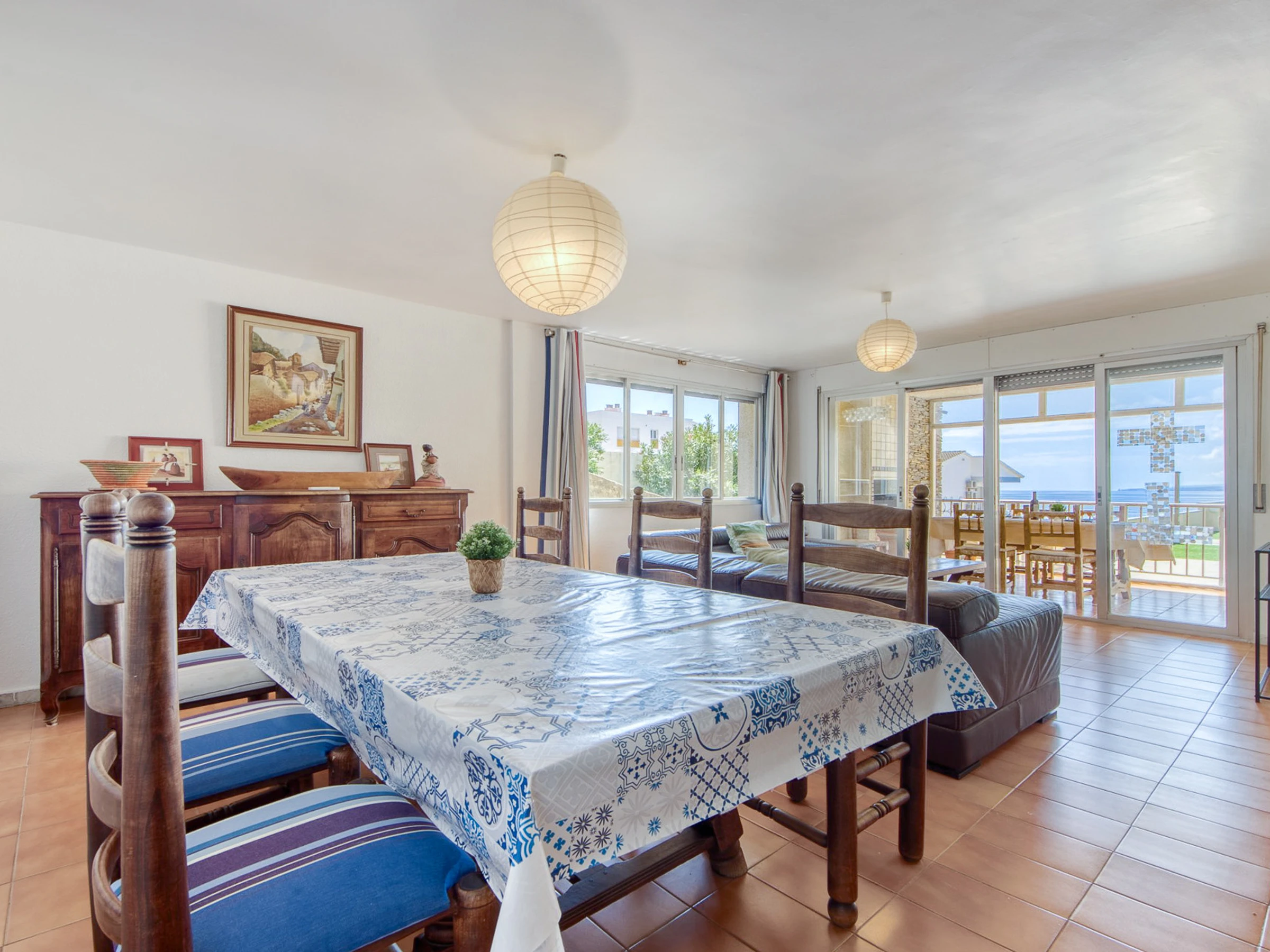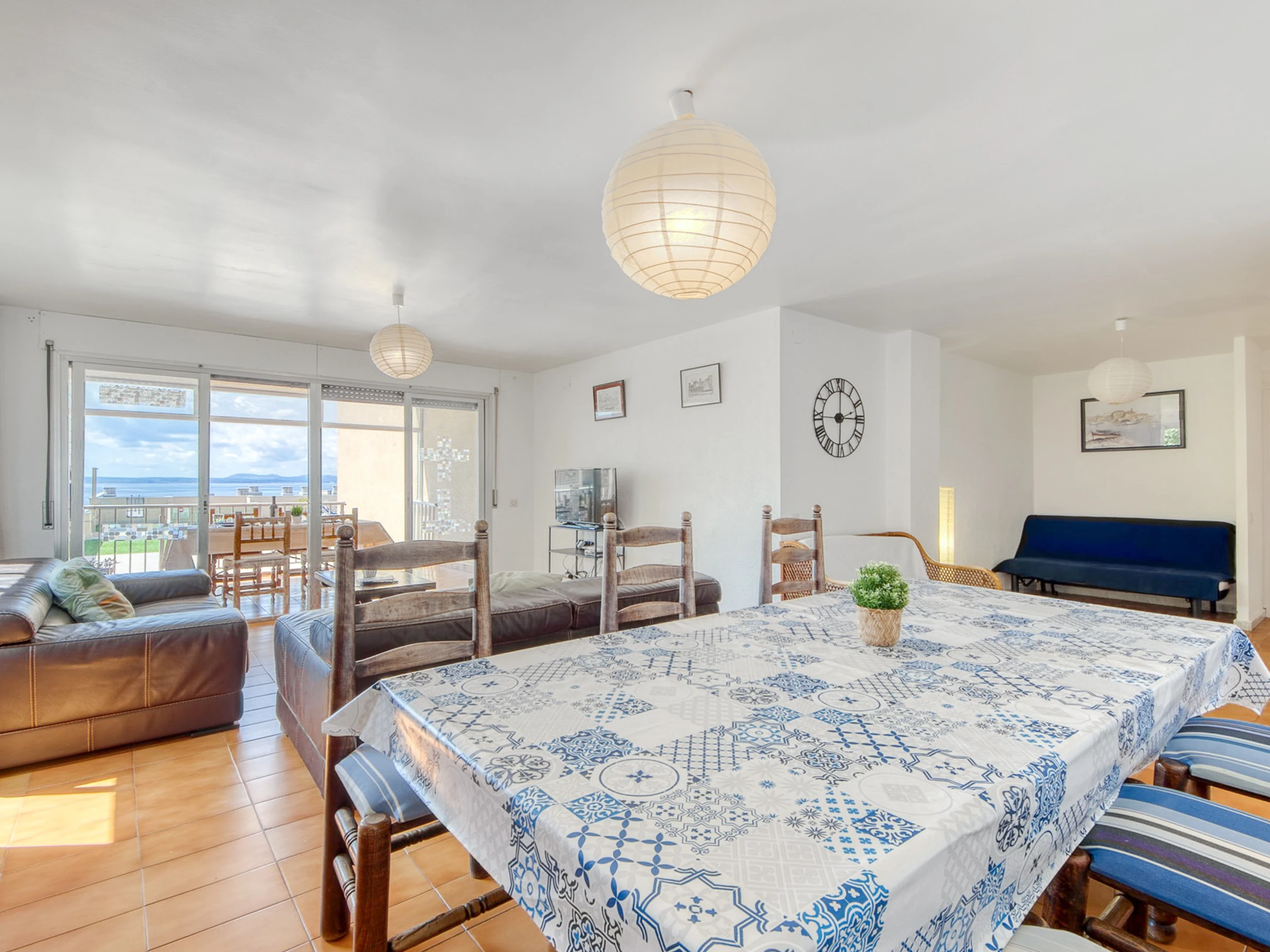 Die Wohnung befindet sich in einer privilegierten Gegend von Roses, mit herrlichem Blick auf das Meer. Es befindet sich in einem geräumigen Wohnzimmer mit großem Tisch und Klimaanlage sowie einem Sofabereich mit einem Fernseher, der Zugang zur großen Terrasse bietet. Auf der Terrasse gibt es Gartenmöbel, um den Grill und die schöne Aussicht auf die Bucht zu genießen.